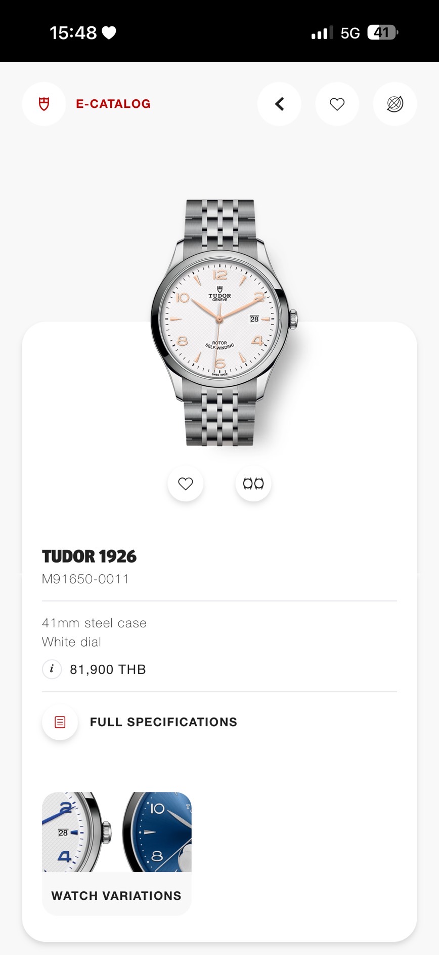 100% Brand New! Tudor 1926 White Dial 41mm