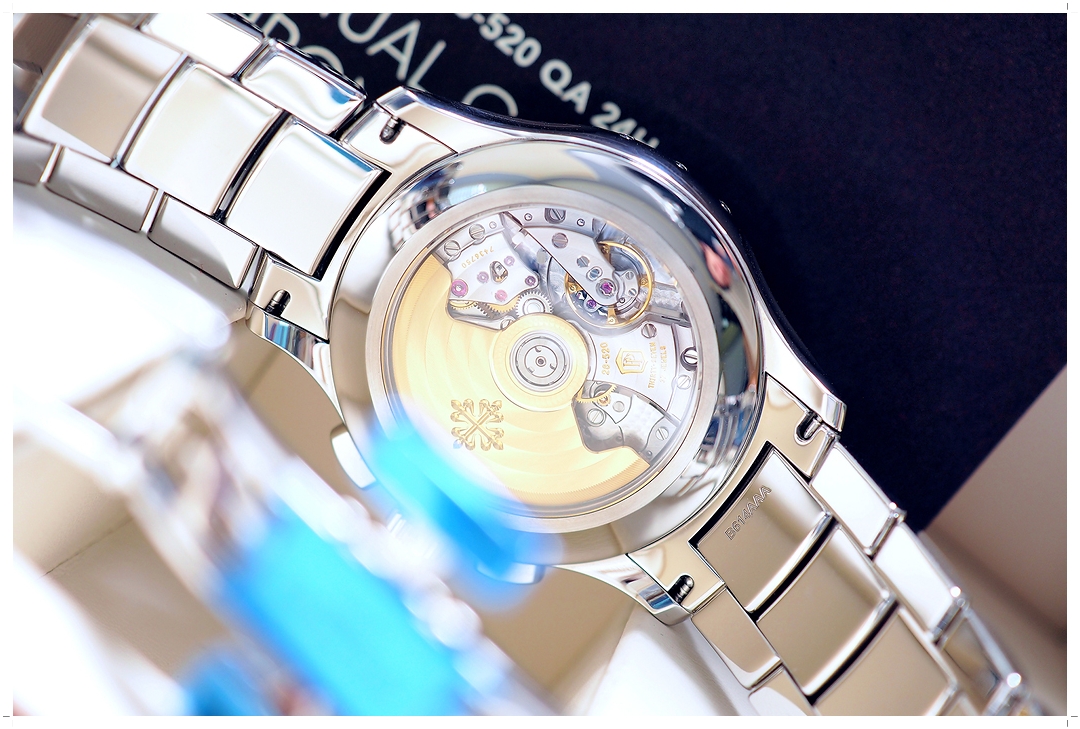 นาฬิกาเป็นของใหม่ ไม่เคยผ่านการใช้งาน ไม่เคยทาบข้อ ไร้ตำหนิใดๆทั้งสิ้น สายยังไม่ตัด สมบูรณ์ 100% เครื่อง Patek Philippe Caliber CH 28-520 QA 24H ระบบ Automatic Annual Calendar Chronograph Flyback Day/Night Indicator โชว์หลังเปลือย ทำงานได้อย่างสมบูรณ์แบบ