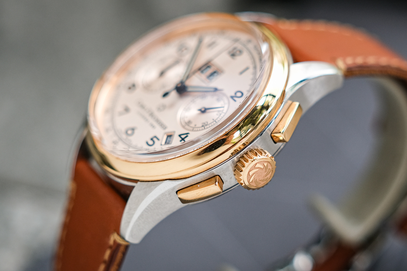✨ ขนาด 41mm หน้าปัด Rose Champagne Dial สีเงินอมชมพูขัดลายเล่นแสงสวยงาม มาพร้อมฟังก์ชันล้นๆอย่าง Chronograph, Big Date และ Annual Calendar ตัวเรือนขัดเงาสลับด้าน โอบรัดข้อมืออย่างลงตัว ขอบ ปุ่มจับเวลา และเม็ดมะยมทำจากทองคำ 18K Rose Gold หลังเปลือยเห็นเครื่อง CFB 1972 เป็น Limited Edition 888 เรือนครับ