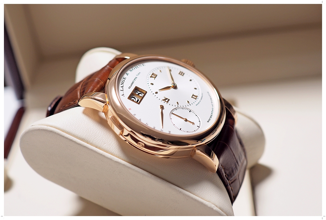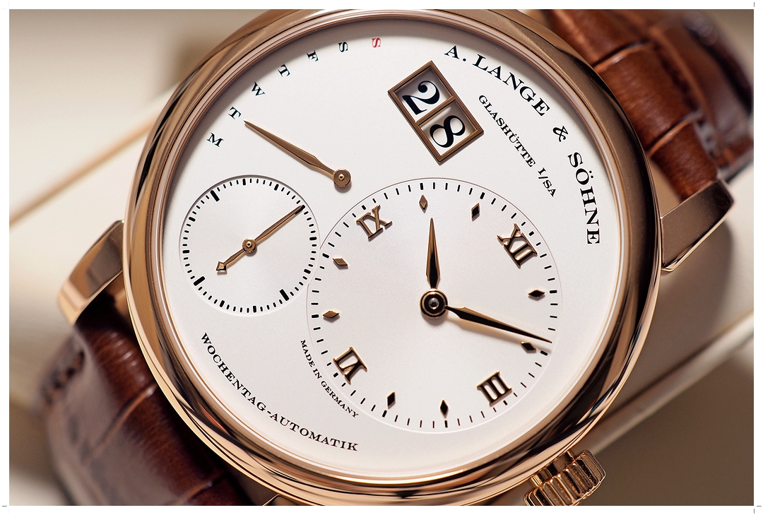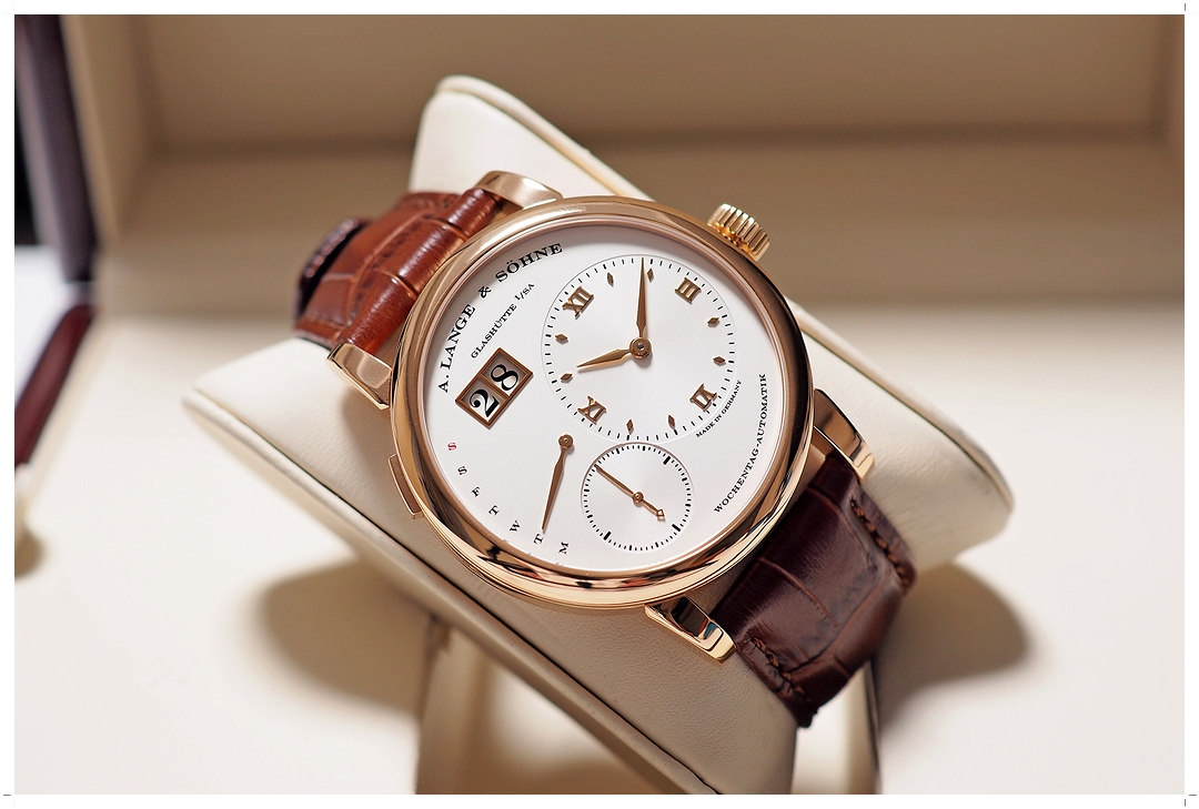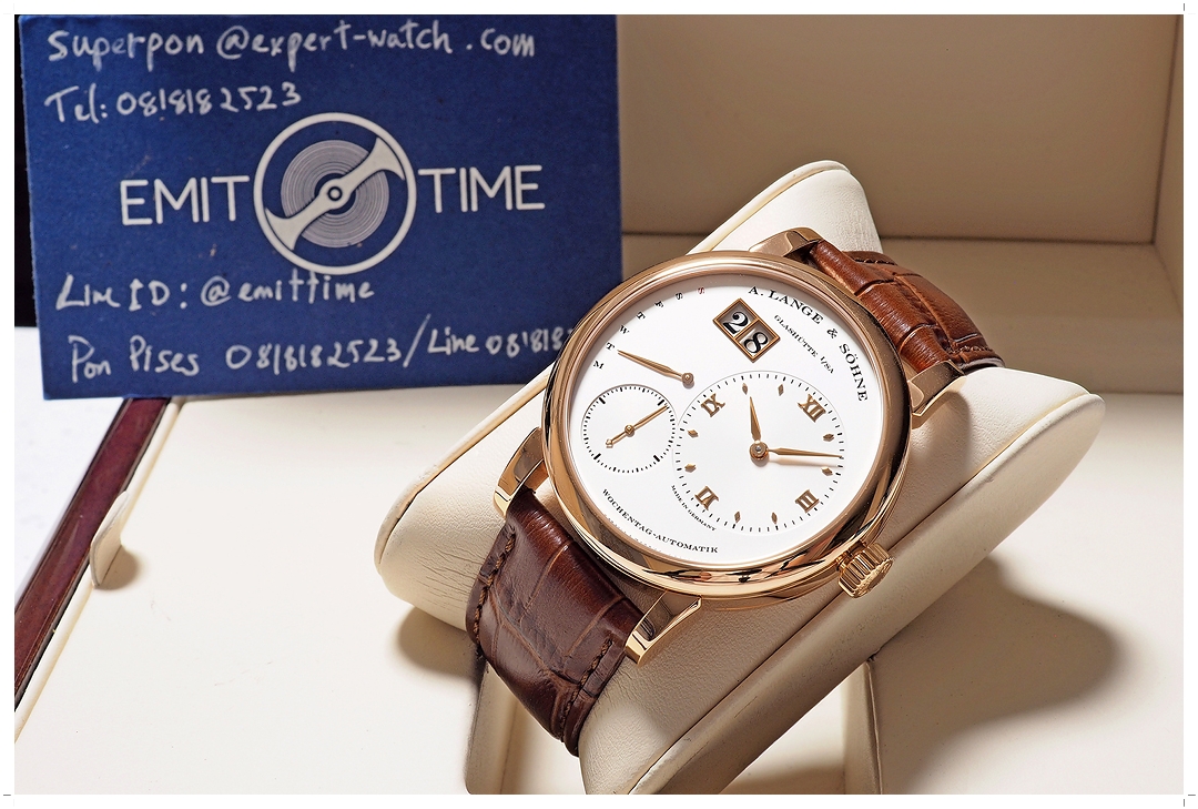 A. Lange & Söhne Lange 1 “Daymatic” Pink Gold 18k 39.5mm ref.320.032 หน้าปัดขาว Off-White กลไก Automatic พร้อมฟังค์ชั่น Day-Date (ราคา Price List สุดท้าย 1.75 ล้านบาท) สภาพสวยมาก ขนแมวจากการใช้งานเล็กน้อย ไร้รอยหนัก กระจก Sapphire หน้าหลังไร้รอยขูดขีด สายหนัง Alligator สีน้ำตาล A. Lange Original เดิมๆสภาพสมบูรณ์ 9.5/10 ไม่มีกล่องใบ (No Box / No Paper) -844,000 บาท-