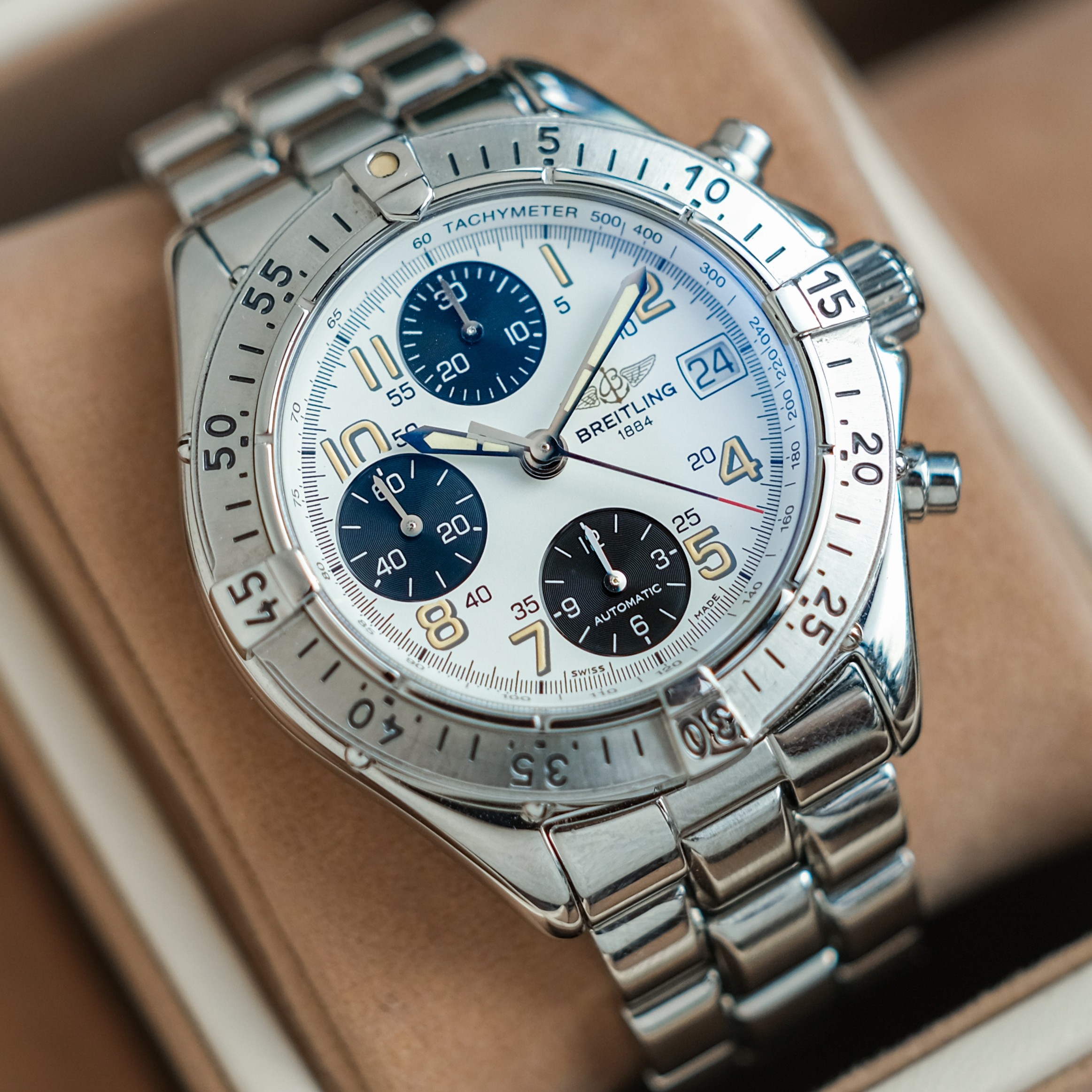 ✨ นาฬิกาสปอร์ตสายการบินหน้าขาวสไตล์ Panda Colour จาก Breitling ที่ให้กลิ่นอายคลาสสิกยุค 90s แบบเท่เหนือกาลเวลา เป็นเรือนสปอร์ตหรูจากแบรนด์ระดับโลกที่ได้ทั้งภาพลักษณ์และความทนทาน ใครมองหานาฬิกา Chronograph คลาสสิกในราคาคุ้มๆ รุ่นนี้ตอบโจทย์มากครับ
