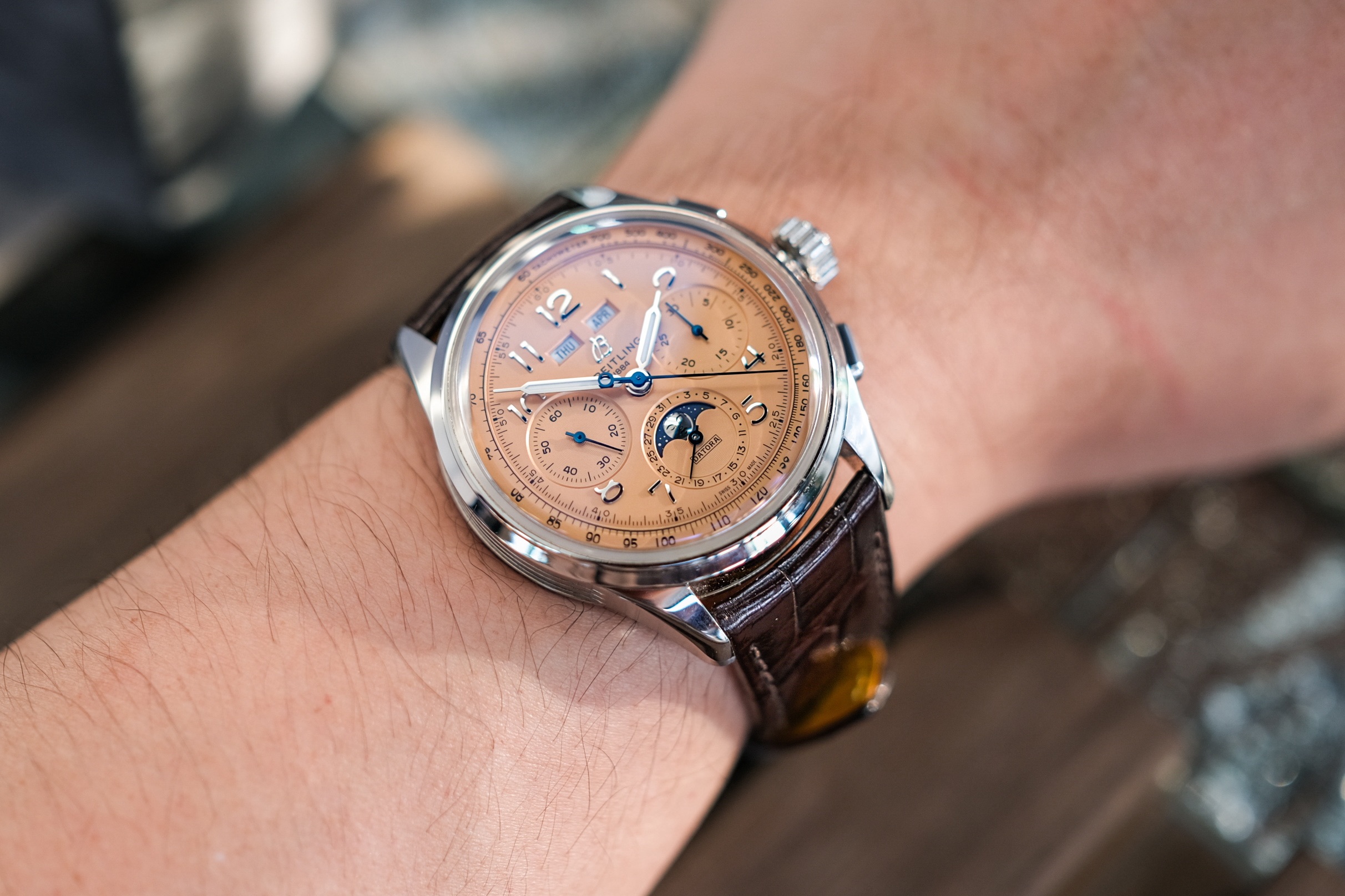 ✨ เรือนนี้ระดับ Top Tier ของ Breitling แล้วครับ นอกจากฟังก์ชันที่ซับซ้อนแล้ว สีของหน้าปัดยังโดดเด่น คู่กับหน้าต่าง Moonphase ที่งานดีมากๆ มองยังไงก็ไม่เบื่อ ถือเป็นตัวคุ้มตัวท๊อปที่ต้องมีไว้ ถ้าหน้าปัดและฟังก์ชันนี้ไปอยู่กับแบรนด์ระดับ Holy Trinity ราคาไปไกลหลายเท่าตัวครับ