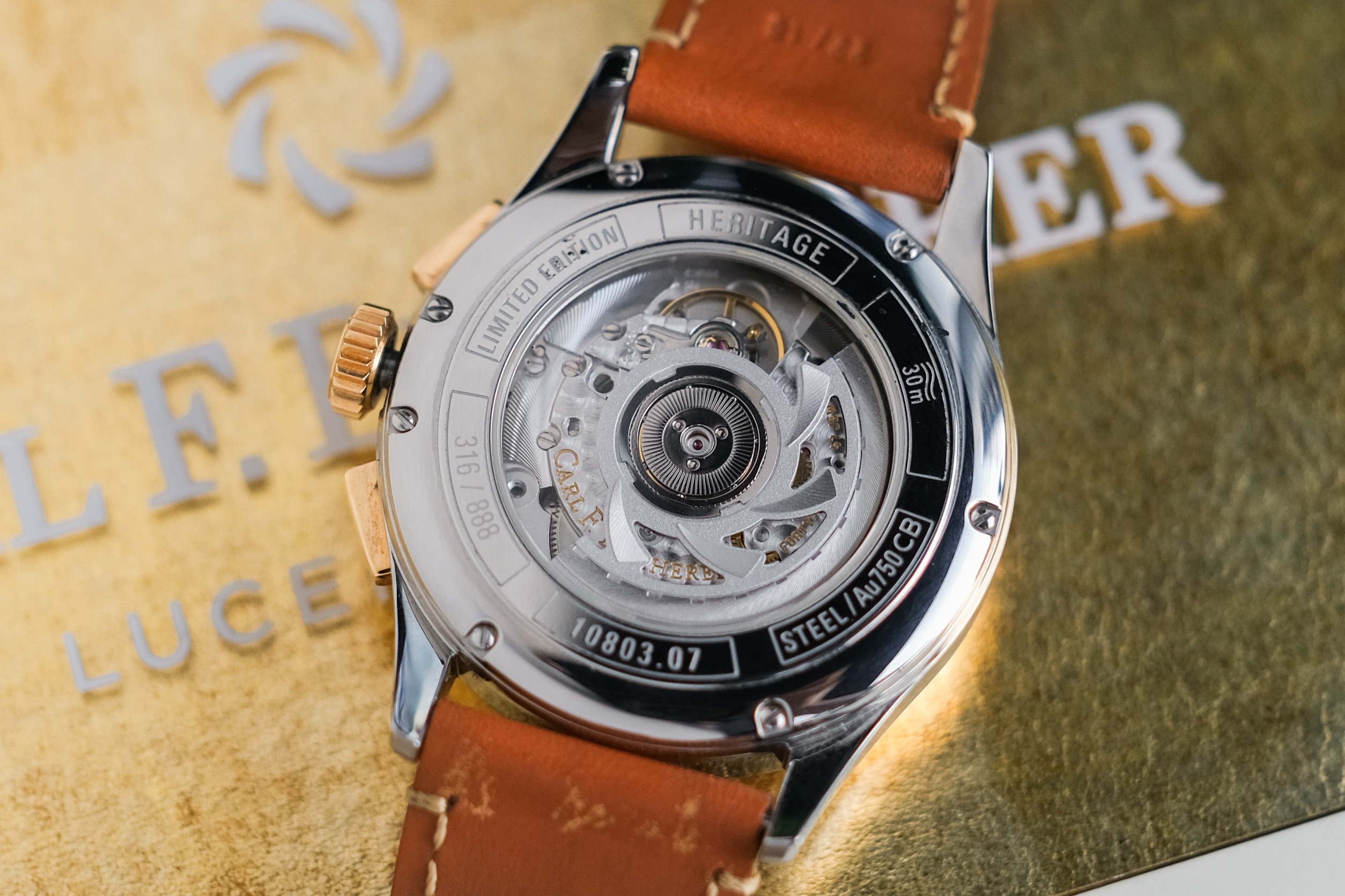 ✨ ขนาด 41mm หน้าปัด Rose Champagne Dial สีเงินอมชมพูขัดลายเล่นแสงสวยงาม มาพร้อมฟังก์ชันล้นๆอย่าง Chronograph, Big Date และ Annual Calendar ตัวเรือนขัดเงาสลับด้าน โอบรัดข้อมืออย่างลงตัว ขอบ ปุ่มจับเวลา และเม็ดมะยมทำจากทองคำ 18K Rose Gold หลังเปลือยเห็นเครื่อง CFB 1972 เป็น Limited Edition 888 เรือน เรือนนี้เลข 316/888