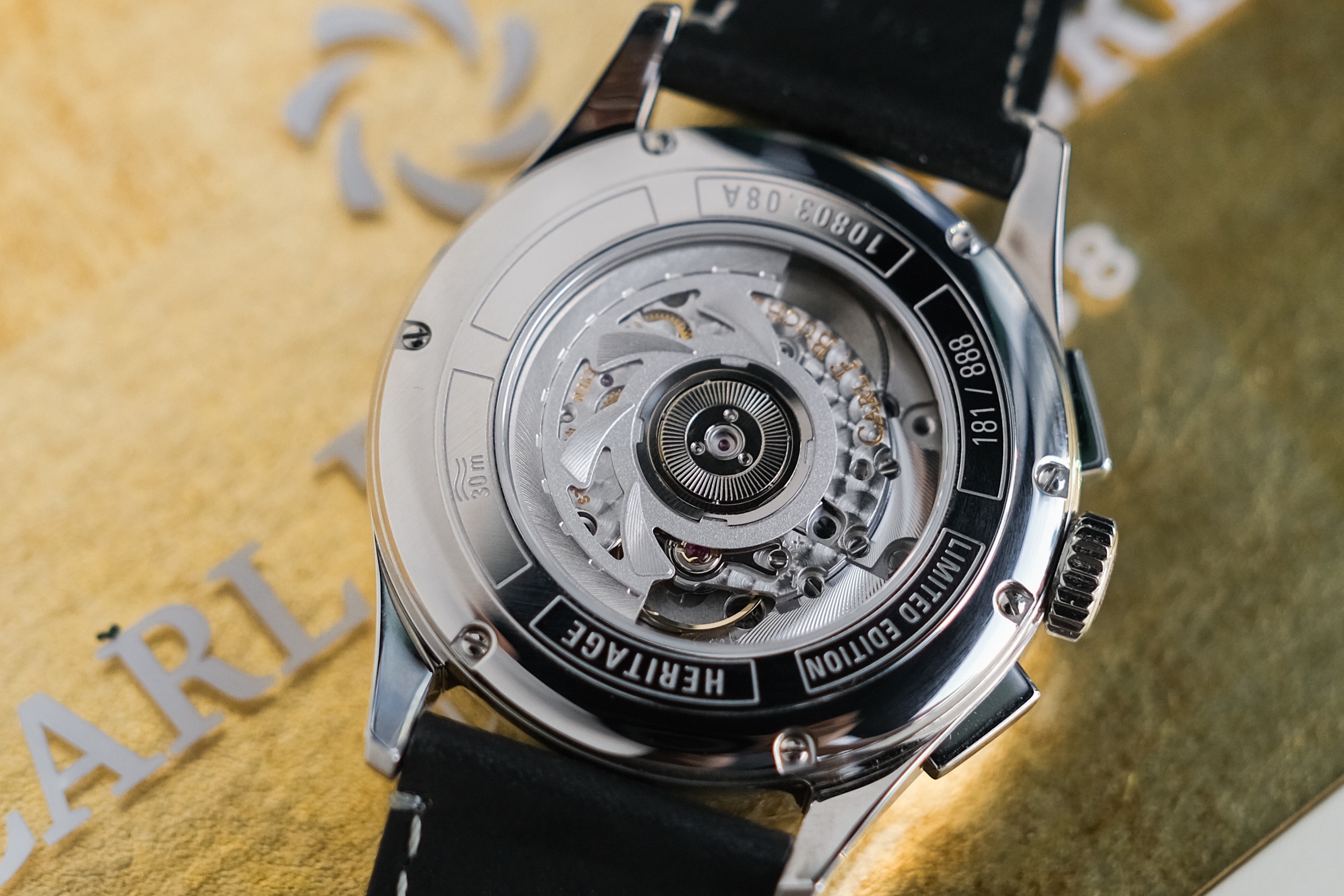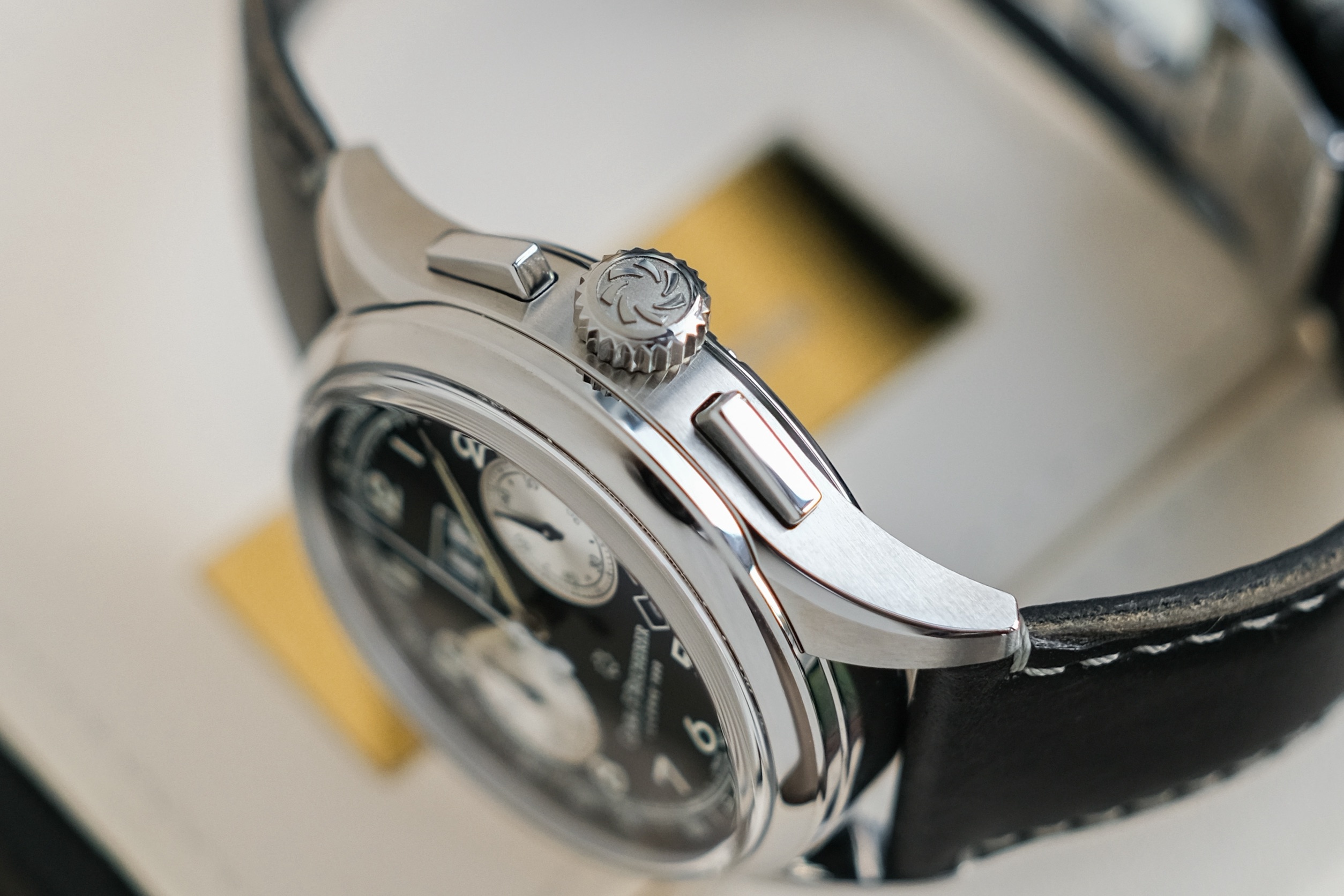 ✨ ขนาด 41mm หน้าปัด Black Dial สีดำสนิท มาพร้อมฟังก์ชันล้นๆ Chronograph, Big Date และ Annual Calendar ตัวเรือนขัดเงาสลับด้าน โอบรัดข้อมืออย่างลงตัว หลังเปลือยเห็นเครื่อง CFB 1972 เป็น Limited Edition 888 เรือน เรือนนี้เลขสวย 181/888