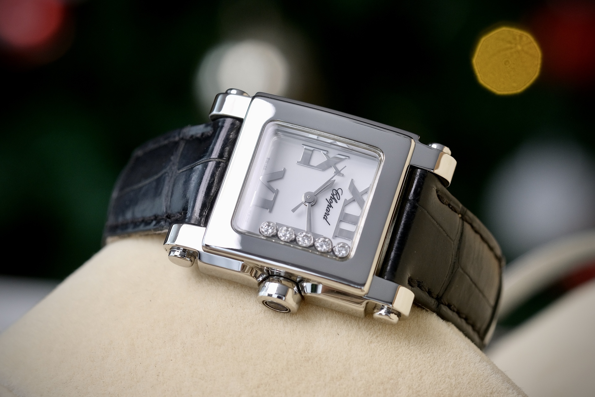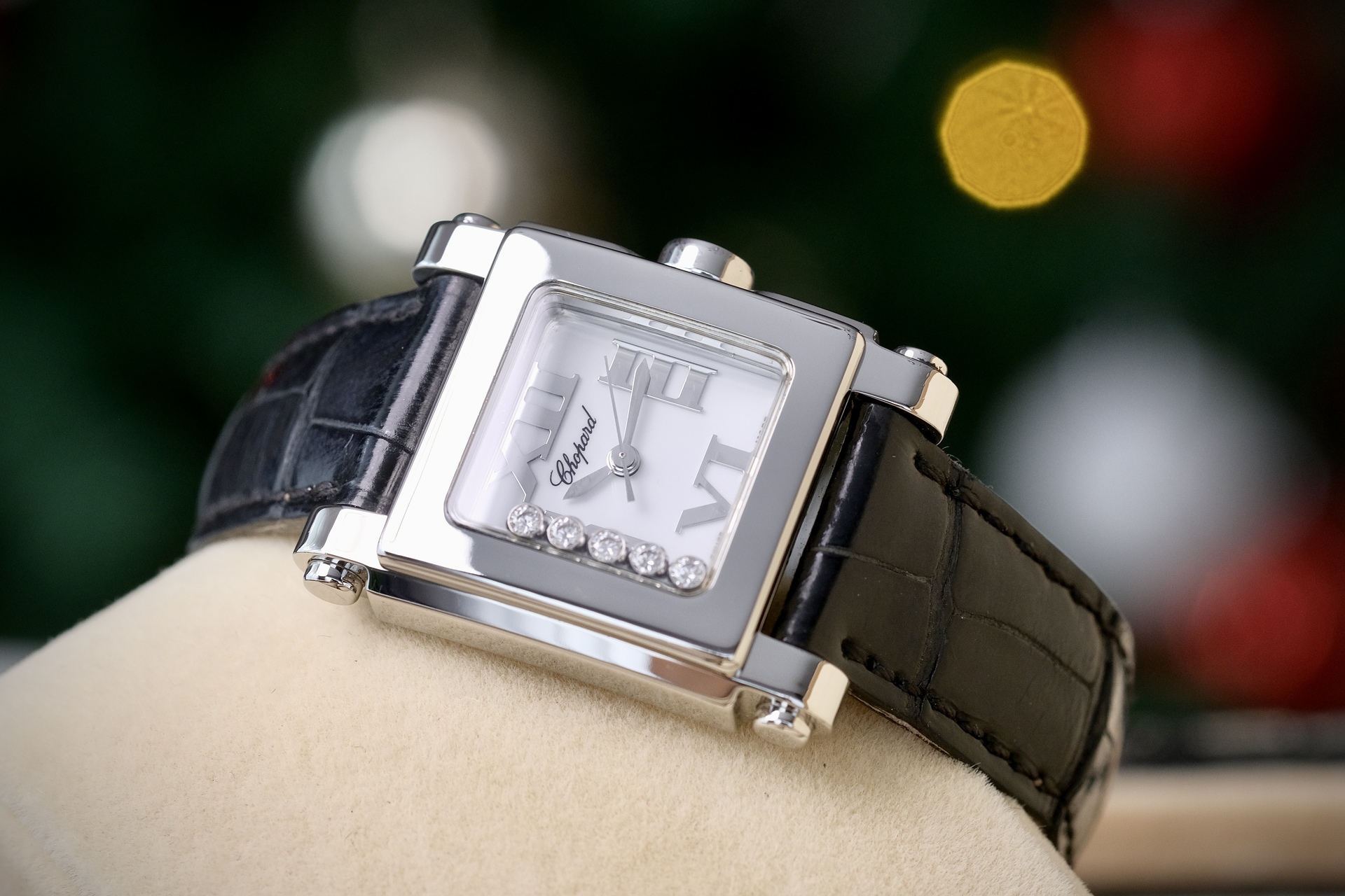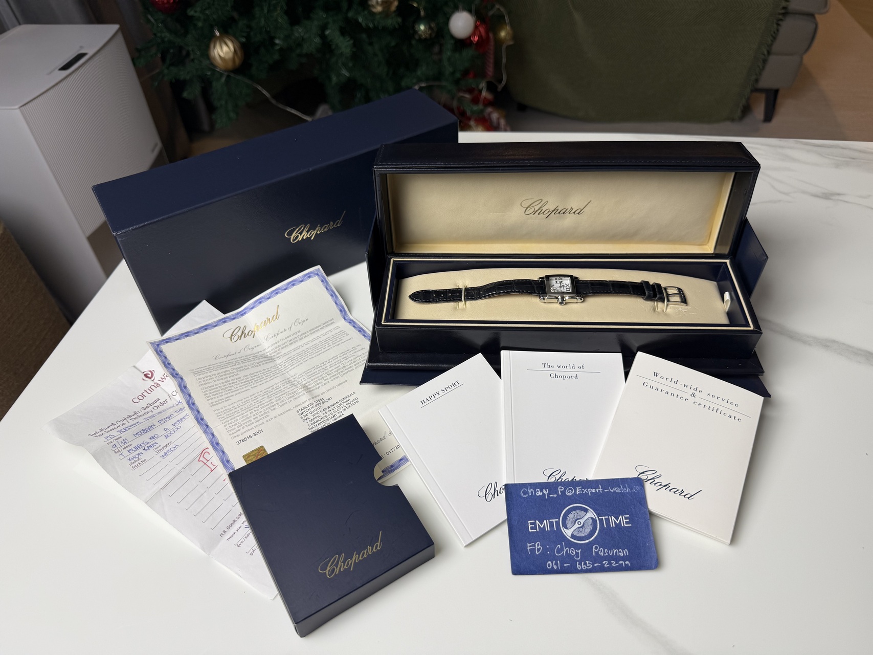 Used Like New สภาพนางฟ้า สวยเดิมทั้งตัว เจ้าของมือเดียว ไม่เคยปัดขัด กระจกสวยใสไร้รอย สายหนัง Chopard Original สภาพพร้อมใช้งานอุปกรณ์ Full set ครบยันใบเสร็จ ใบไทย Y-2012 ประดับเพชรแท้ 5 เม็ด พร้อมใบ certificate