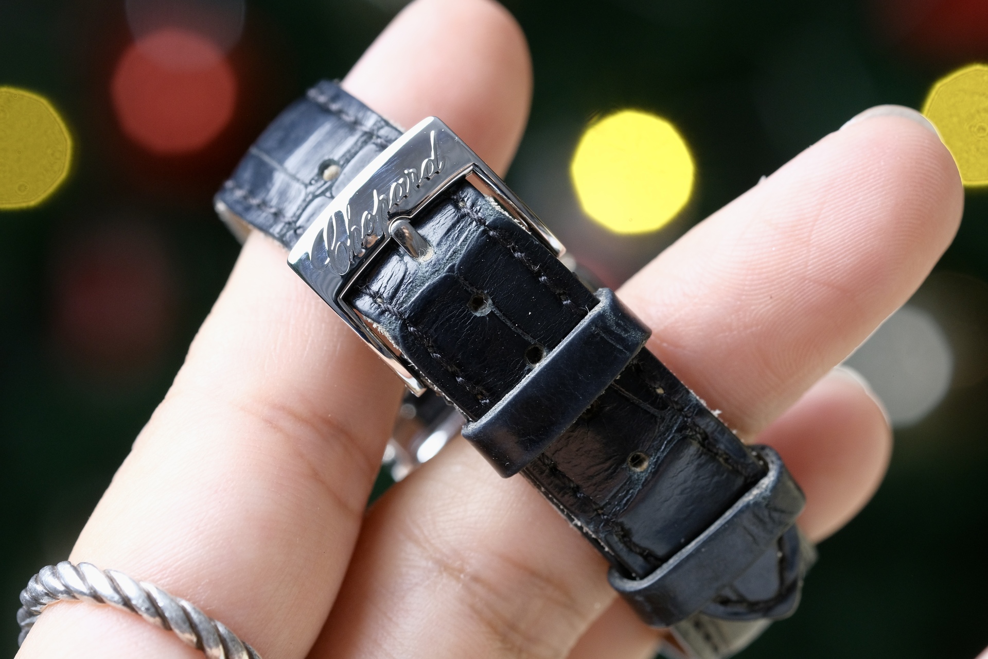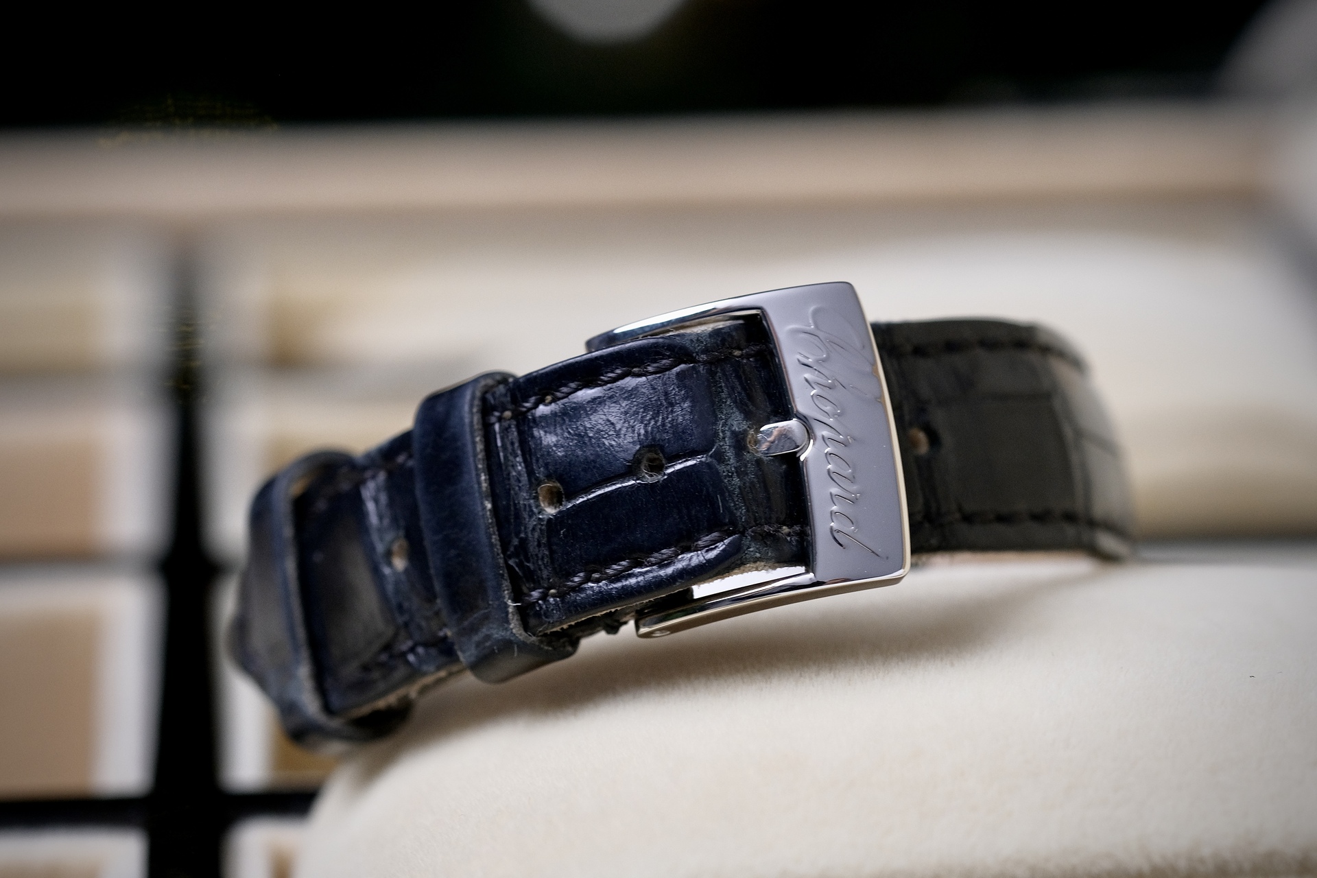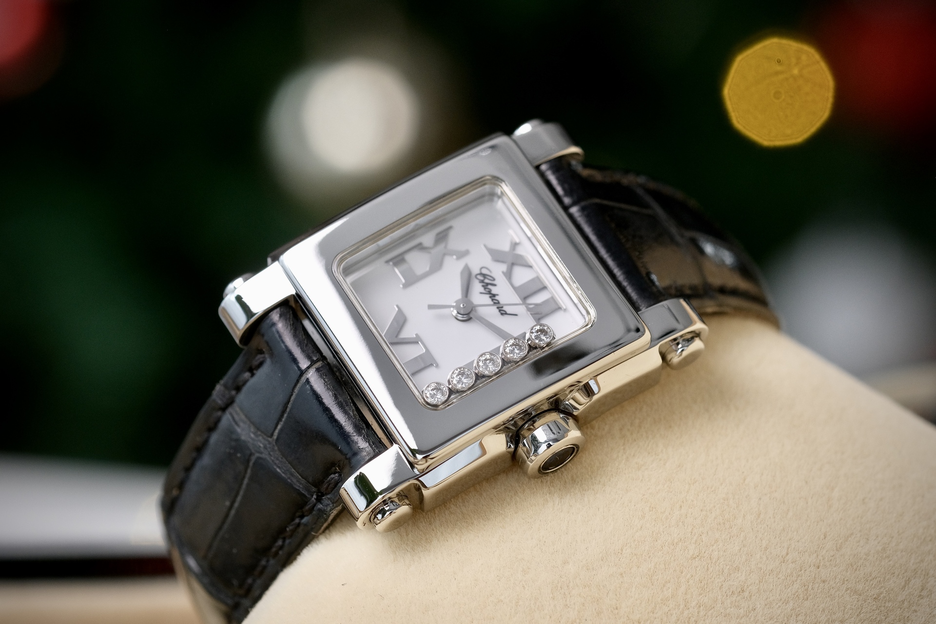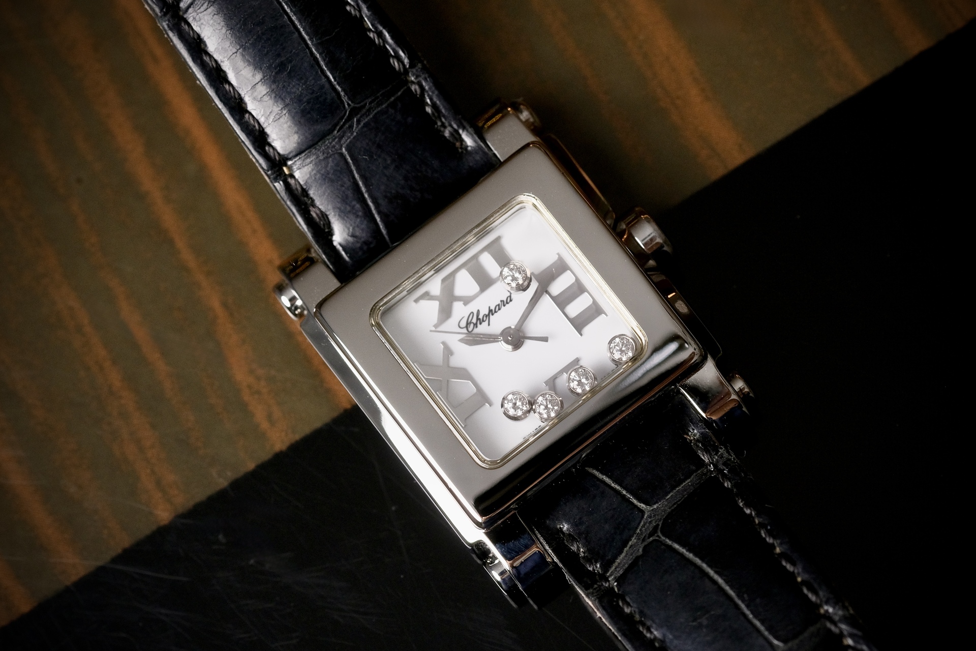Used Like New สภาพนางฟ้า สวยเดิมทั้งตัว เจ้าของมือเดียว ไม่เคยปัดขัด กระจกสวยใสไร้รอย สายหนัง Chopard Original สภาพพร้อมใช้งานอุปกรณ์ Full set ครบยันใบเสร็จ ใบไทย Y-2012 ประดับเพชรแท้ 5 เม็ด พร้อมใบ certificate
