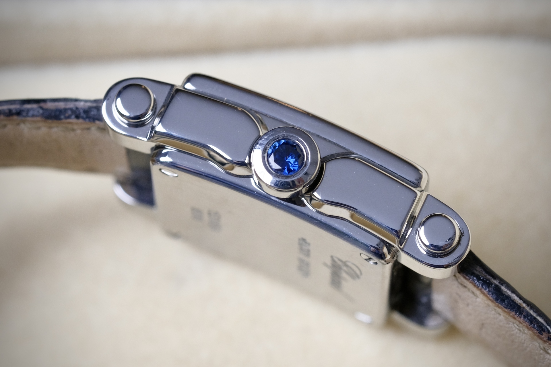 ขนาด 25*25 mm วัสดุ stainless steel ดีไซน์สี่เหลี่ยม ที่มีความคลาสสิกและสง่างามเหนือกาลเวลา หัวใจของ เรือนนี้ คือเพชร Floating Diamonds ที่กลิ้งไปมาบนหน้าปัด เพชร 0.15CT จำนวน 5เม็ด มะยมประดับ Blue sapphire สร้างความระยิบระยับและมีชีวิตชีวาผสานหน้าปัดสีขาว ตัวเลขโรมัน ตอกย้ำความ Luxury กลไกออกแบบมาสำหรับสุภาพสตรี เป็นระบบ Quartz ไม่ต้องค่อยตั้ง พร้อมใช้งานได้ในทุกวัน