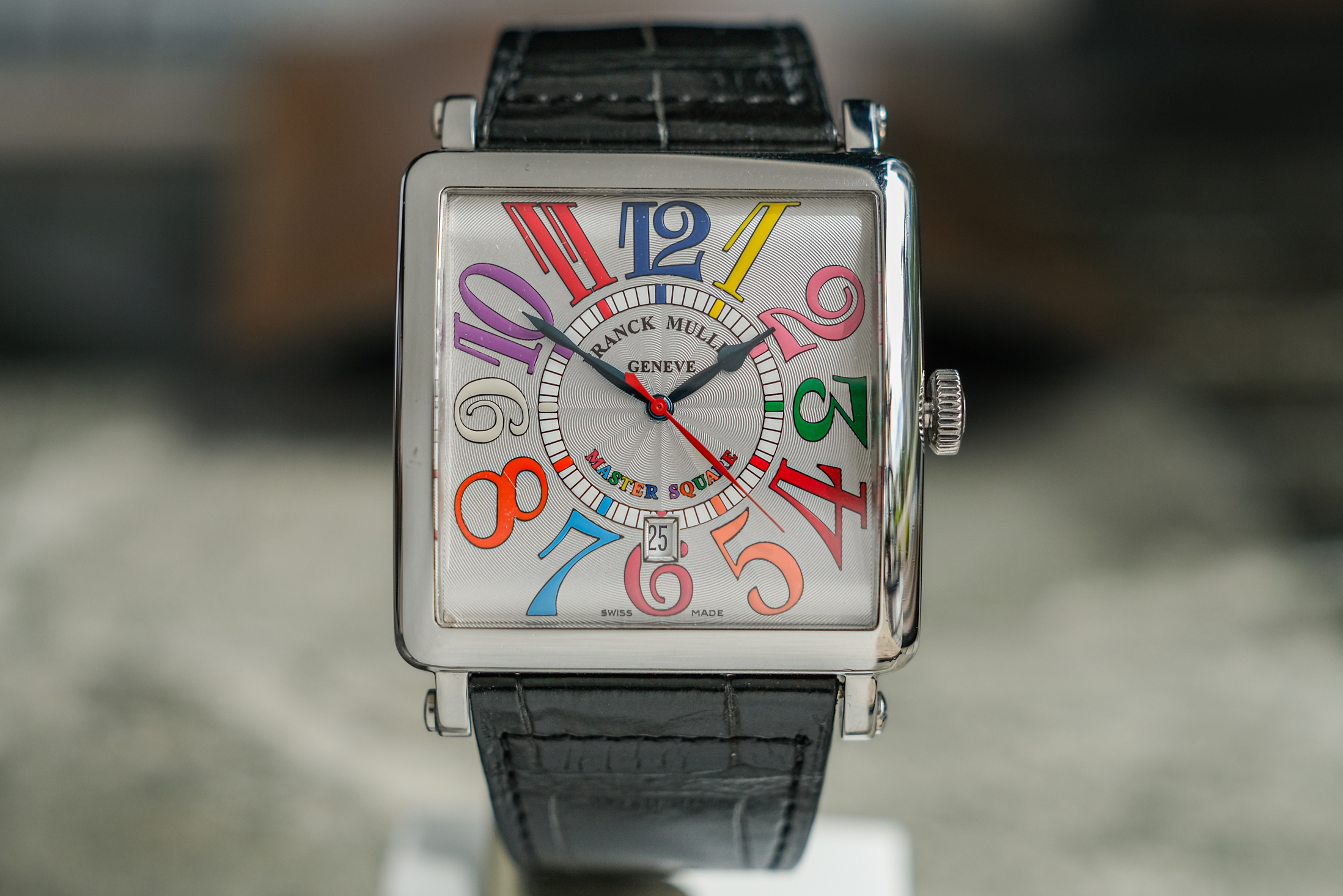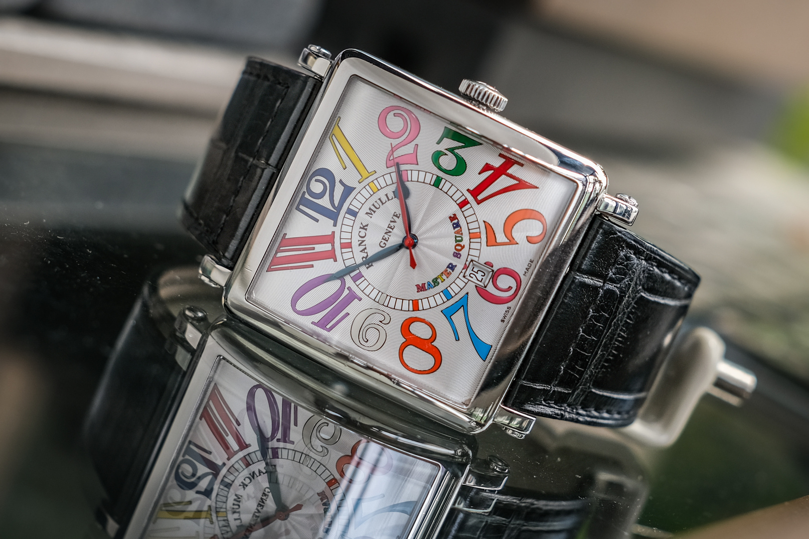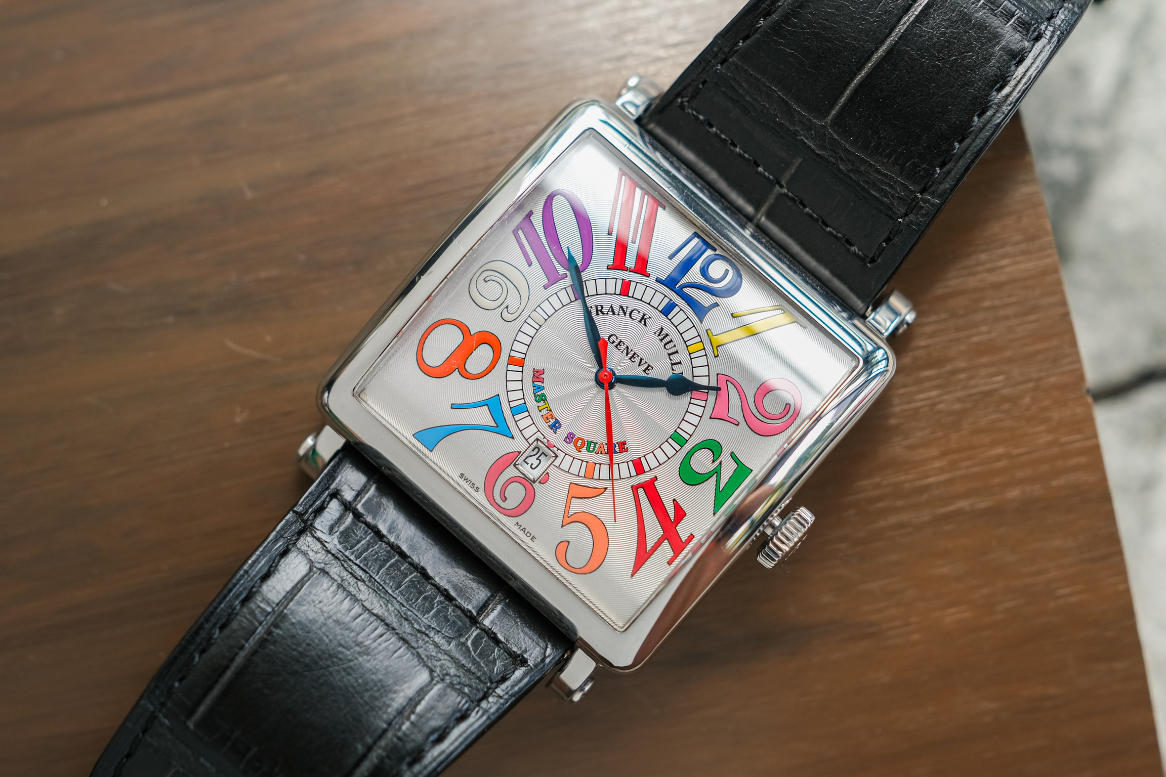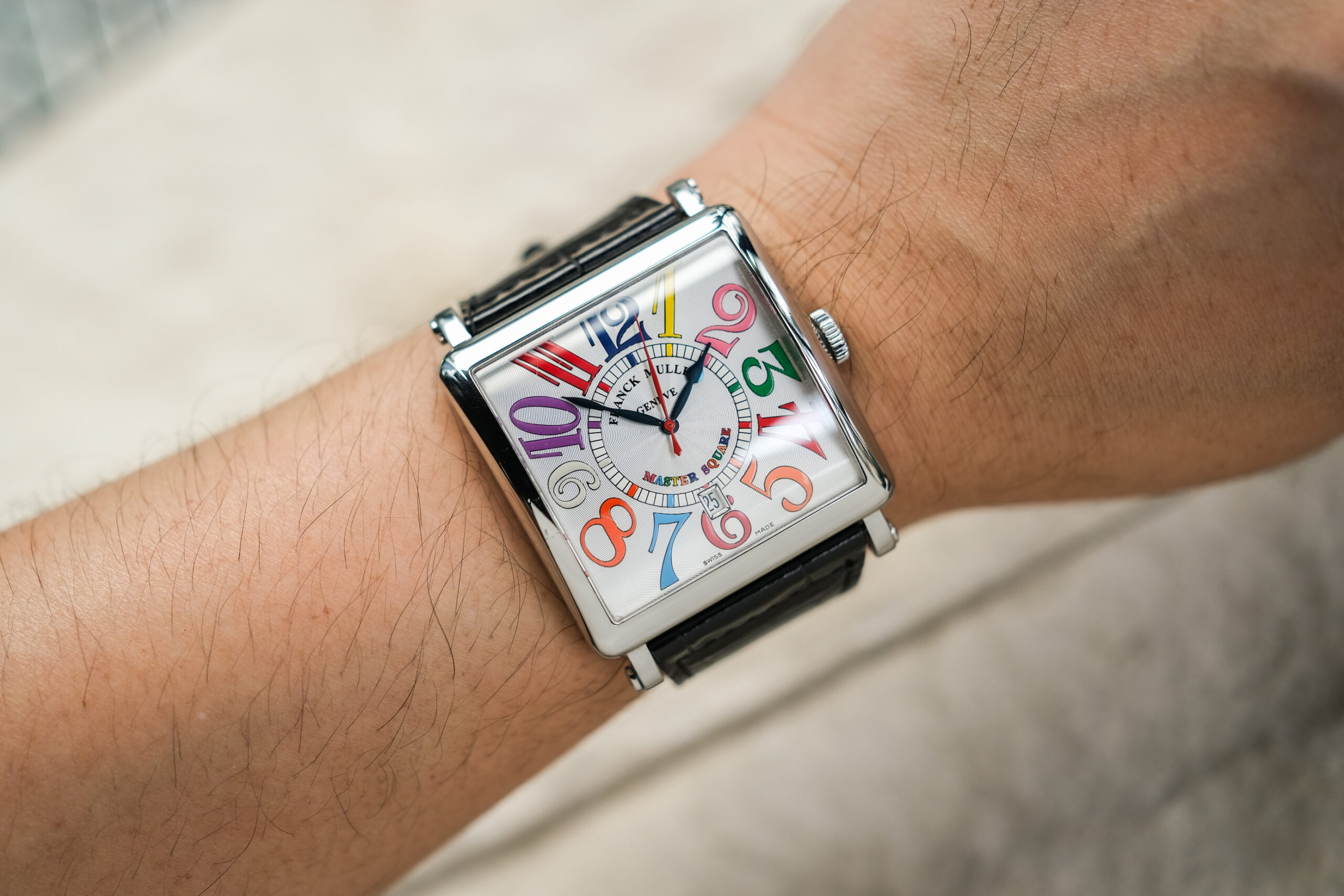 ✨ ขนาด 42 x 42 mm. ไซส์ใหญ่เต็มข้อ หน้าปัดพิเศษ Color Dreams หลักอารบิคหลากสีสัน เข็มทรง Spade วัสดุ Blue Steel ตัดเข็มวินาทีสีแดง ตัวเรือนสี่เหลี่ยมสมชื่อ Master Square วัสดุ Steel เงางาม เครื่อง Automatic