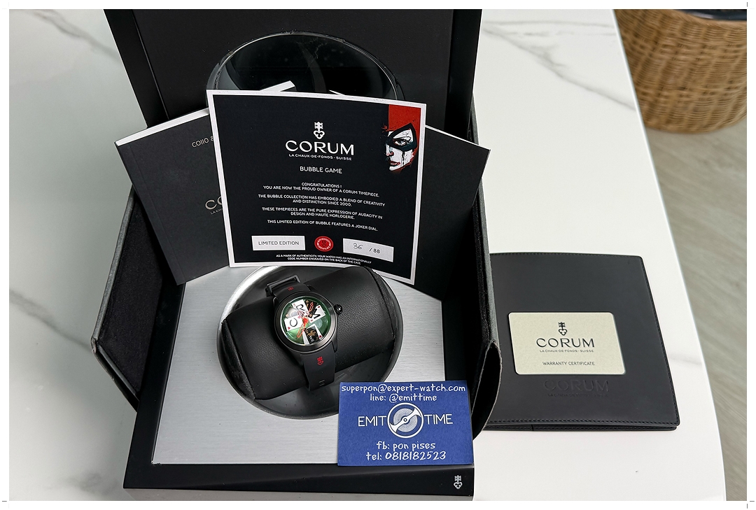 **Ultra-Rare!! Like New!! ลดจากป้ายเกิน 60%** Corum Bubble Game 42mm Black PVD Limited Edition 88 เรือนทั่วโลก (No 36/88) หลังเปลือย ref.08241098-0371 สภาพสวยมากๆ นอนเซฟแทบไร้ตำหนิ ไร้รอยหนัก กระจกไร้ริ้วรอย ไม่เคยปัดขัด สาย Rubber ของ Corum Original เดิมๆตรงรุ่นสภาพสมบูรณ์แบบ Y-2018 อุปกรณ์ Full-Set ครบยัน Limited Certificate (ราคา Price List สูงถึง 230,000 บาท) -88,000 บาท-