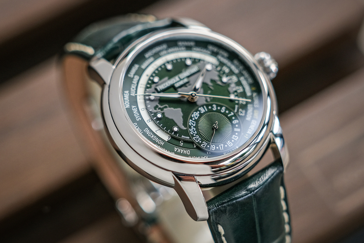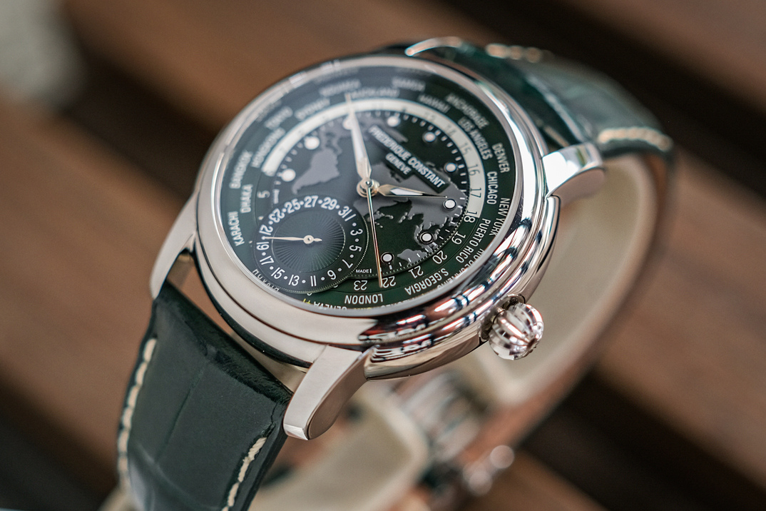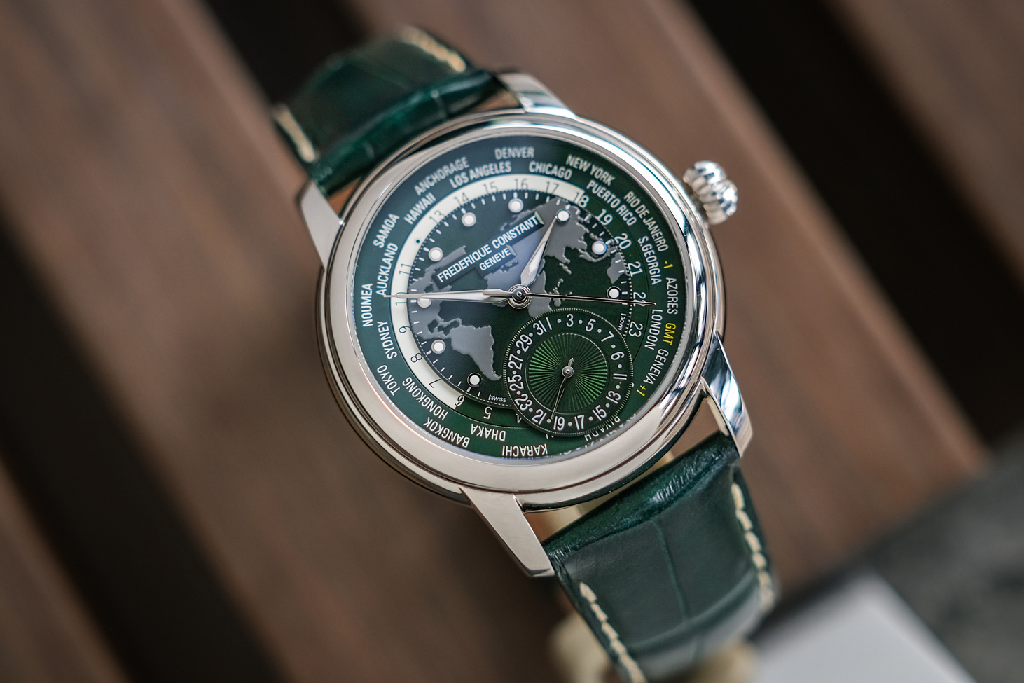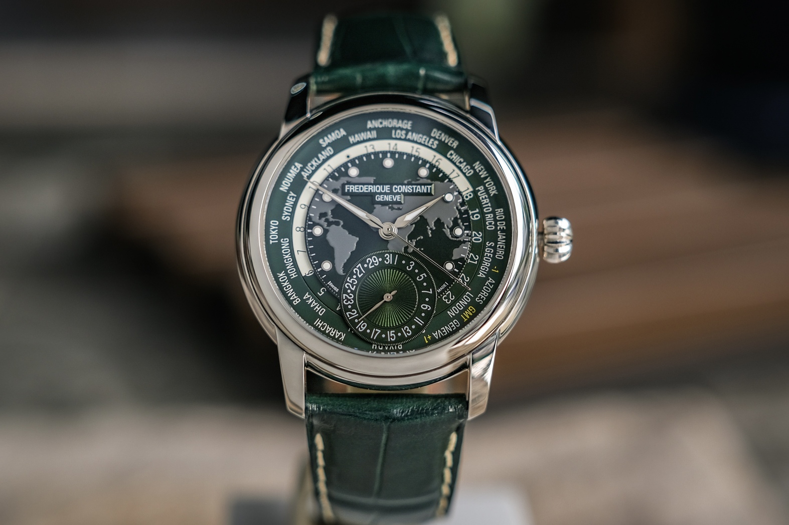 ✨ ขนาด 42mm. หน้าปัด Green Dial แกะลายรูปโลกปั๊มนูน เล่นแสงมีมิติ พร้อมฟังก์ชั่นระดับเทพ World Time บอกเวลาหัวเมืองใหญ่ทั่วโลกแบบ 24 ชั่วโมง Day & Night ตัวเรือนขัดเงาอ้วนกลม หลังเปลือยเห็นกลไก Automatic ขัดลายสวยงาม ยิ่งใส่กับสายหนังจระเข้สีเขียวเดินด้ายขาวยิ่งให้ลุคคลาสสิคสุดๆ