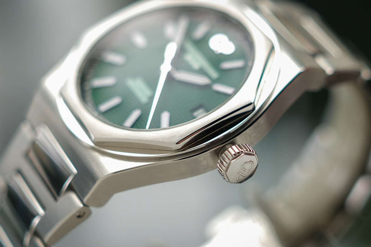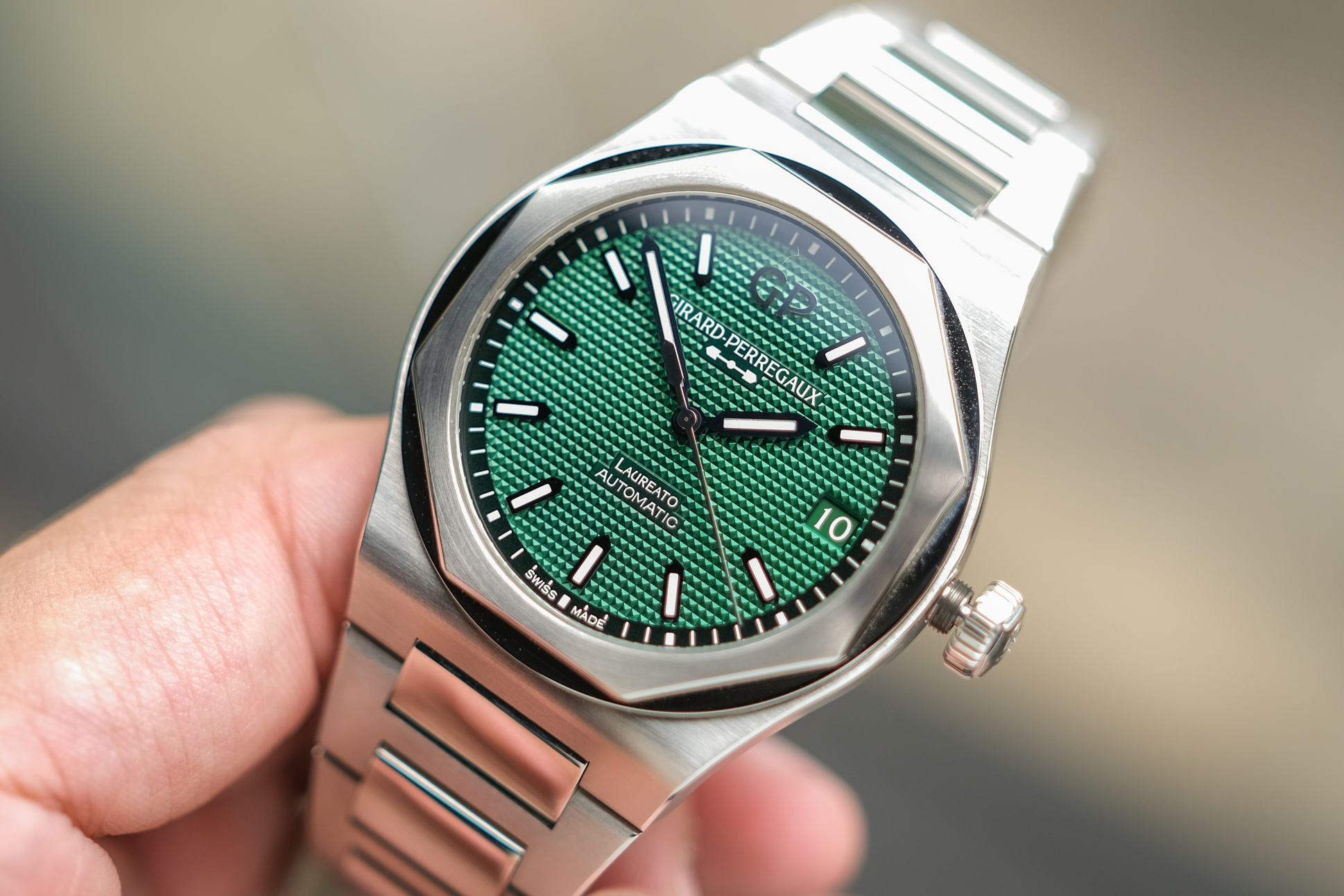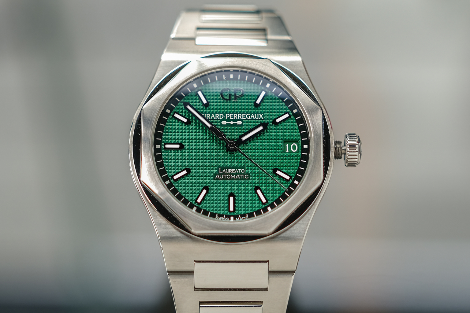 ✨ ขนาด 42mm หน้าปัด Green Dial แกะลาย Clous de Paris หรูหรา ตัวเรือน Steel ข้อเงาสลับด้าน เคส Octagonal 8 เหลี่ยมเอกลักษณ์จากดีไซน์เนอร์ที่ดังที่สุดอย่าง Gerald Genta หลังเปลือยเห็นกลไก Automatic น่ามอง ใส่โคตรสวย Sport Luxury สุดๆ