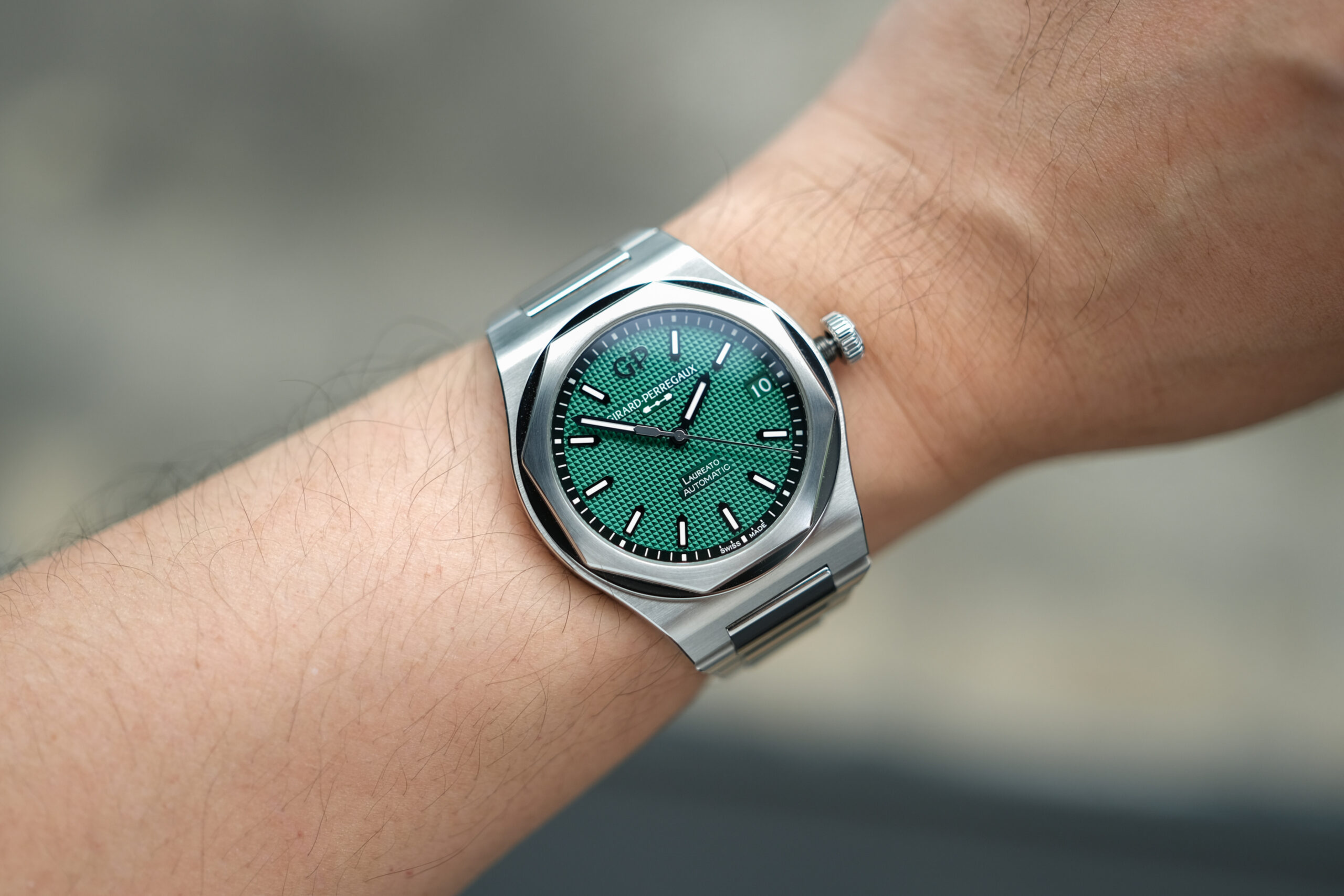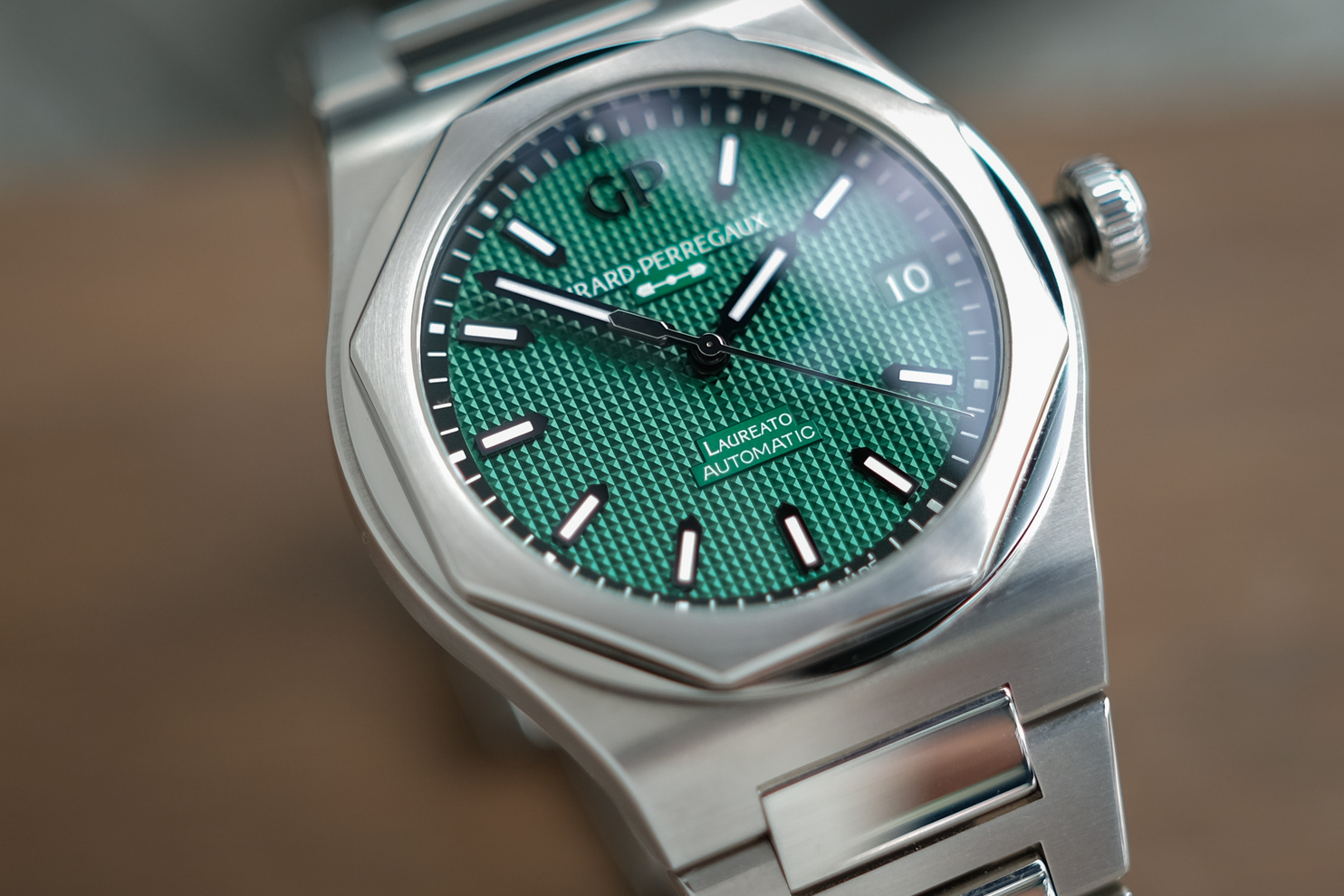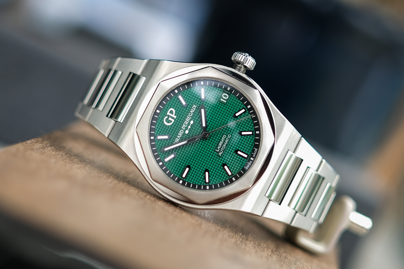 ✨ ขนาด 42mm หน้าปัด Green Dial แกะลาย Clous de Paris หรูหรา ตัวเรือน Steel ข้อเงาสลับด้าน เคส Octagonal 8 เหลี่ยมเอกลักษณ์จากดีไซน์เนอร์ที่ดังที่สุดอย่าง Gerald Genta หลังเปลือยเห็นกลไก Automatic น่ามอง ใส่โคตรสวย Sport Luxury สุดๆ