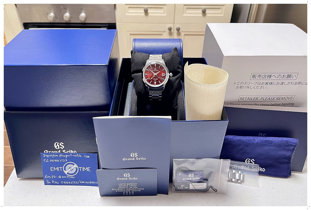 อุปกรณ์ Full-Set สุดขีด กล่อง 3 ชั้น ข้อครบถ้วน เล่มคู่มือ x 2 Warranty Card ใบไทยลง Y-2024 ซองหนัง Certificate ป้ายแทกราคา ป้ายแทกตัวเรือนตรงรุ่นตรงเรือน ผ้าเช็ด Grand Seiko ครบยันกระดาษสารองกล่อง