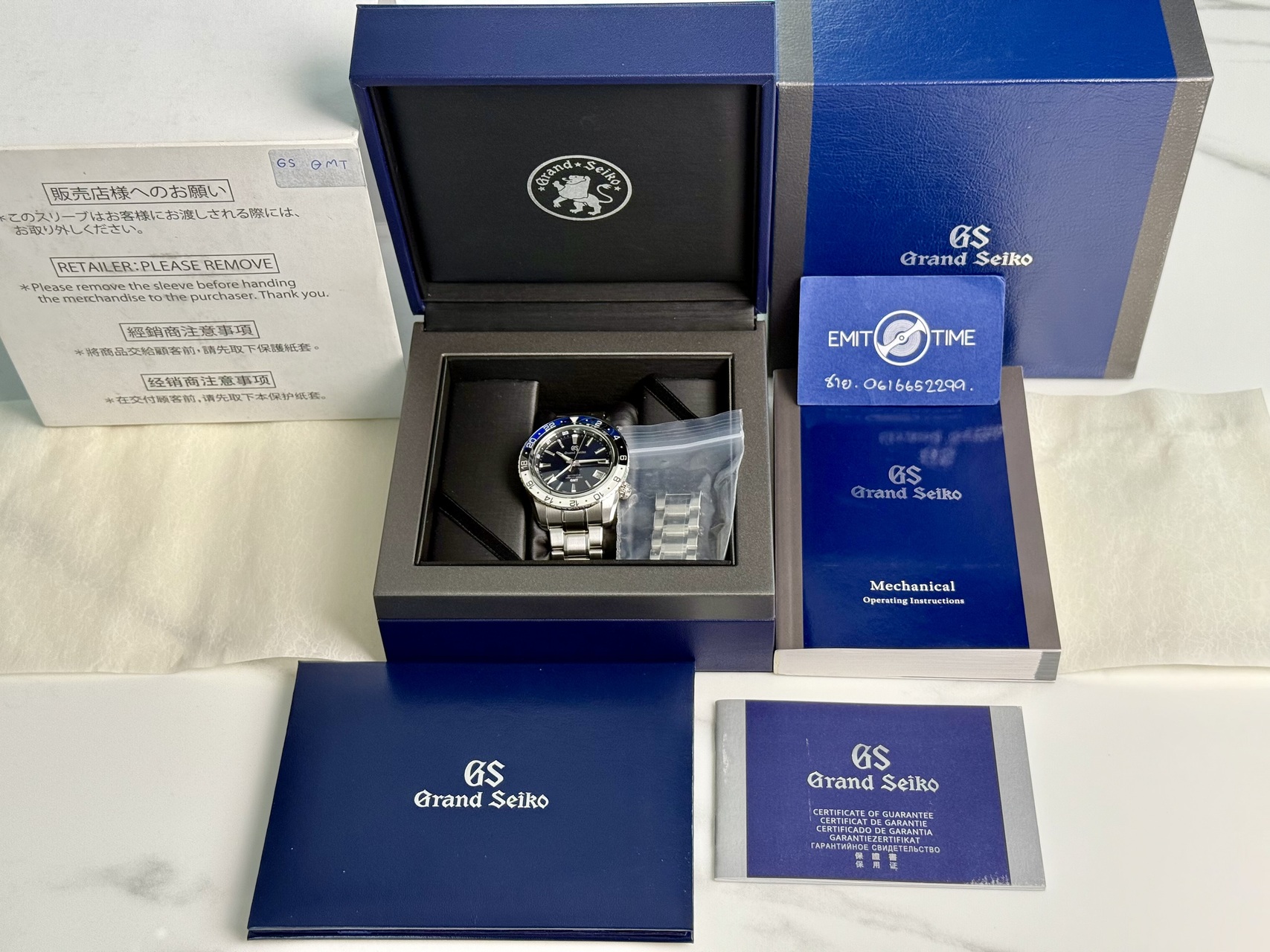 ทีมงานทุกคนมีความมุ่งมั่นและตั่งใจอย่างยิ่งในการคัดสรร และตรวจสอบนาฬิกาทุกเรือน ที่เราได้รับเข้ามาอย่างละเอียดและแม่นยำที่สุดอย่างเต็มความสามารถ แต่เนื่องด้วยปัยจัยที่มากมากที่มีผลต่อการทำงานของนาฬิกาอาจทำให้ ทางเราก็ไม่สามารถตรวจสอบได้ทุกปัจจัย ทางเราจึงไม่สามารถการันตีได้100% ว่านาฬิกาจากทางร้านจะสามารถทำงานได้อย่างสมบูรณ์เท่ากับของใหม่ที่ออกจากทาง Boutique ทำให้ทาง Emit Time ของเรายินดีเป็นอย่างยิ่งที่จะรับประกันช่องว่างของสภาพนาฬิกาที่เราตรวจสอบได้ไม่หมด ด้วยการ รับประกันการทำงานของตัวกลไกของนาฬิกาที่ซื้อหรือเทรดจากทางร้าน เป็นระยะเวลา 1 ปีเต็ม นับตั่งแต่วันที่ซื้อหรือเทรด เพื่อความสบายใจแก่ลูกค้าและนักสะสมทุกท่าน หากมีว่ามีการทำงานที่ผิดปกติหรือเดินช้า-เร็ว จากมาตรฐาน โดยไม่ได้เกิดจากการใช้งานที่ผิดจากทางลูกค้าแล้ว เรายินดีซ่อมบำรุงให้โดยไม่คิดค่าใช้จ่ายใดๆภายในระยะเวลาประกัน