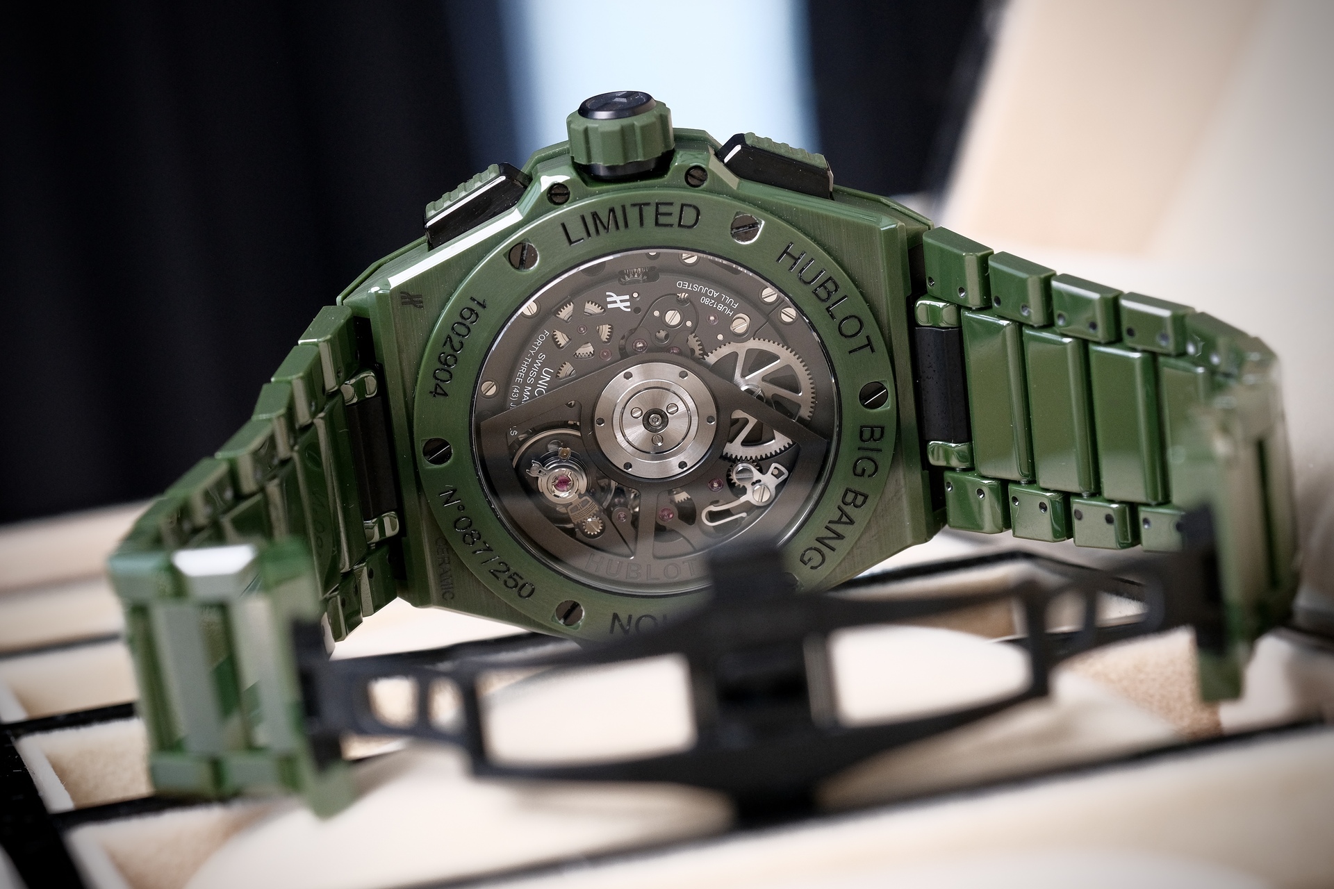 āļāļāļēāļ 42mm āļ§āļąāļŠāļāļļGreen Ceramic āđāļāđāļāđāļĢāļ āļāđāļāļāļāļąāļāļĢāļāļĒāļāļĩāļāļāđāļ§āļ āļĄāļēāļāļāļ§āđāļēSteelāđāļĨāļ°āđāļāļēāļāļ§āđāļē āļāļķāļ 30% āļāļļāļāđāļāđāļāļāļĩāđāļŠāļļāļāļāļ·āļ Integrated Bracelet āļŠāļēāļĒāļāļĩāđāđāļāļ·āđāļāļĄāļāđāļāđāļāđāļāđāļāļ·āđāļāđāļāļĩāļĒāļ§āļāļąāļāļāļąāļ§āđāļĢāļ·āļāļ āļŦāļāđāļēāļāļąāļāđāļāļ Skeleton āđāļāļ§āđāļāļēāļĢāļāļģāļāļēāļāļāļāļāļāļĨāđāļUnico 2 Chronograph Fly Back Automatic āļĢāļŦāļąāļŠ1280 āļŠāļģāļĢāļāļāļāļĨāļąāļāļāļēāļ 72 āļāļĄ āļāļ·āļāļ§āđāļēāđāļāđāļ “Art of Fusion” āļāļāļāļ§āļąāļŠāļāļļāļāļĩāđāđāļāļāđāļāđāļ āļāļēāļĢāļāļāļāđāļāļāļāļĩāđāđāļŦāļāļ·āļāļĢāļ°āļāļąāļ āđāļĨāļ°āļāļĨāđāļāļāļĩāđāđāļāđāļāļ§āļīāļĻāļ§āļāļĢāļĢāļĄāļĢāļ°āļāļąāļ flagship āļāļāļāļāđāļēāļĒ Hublot