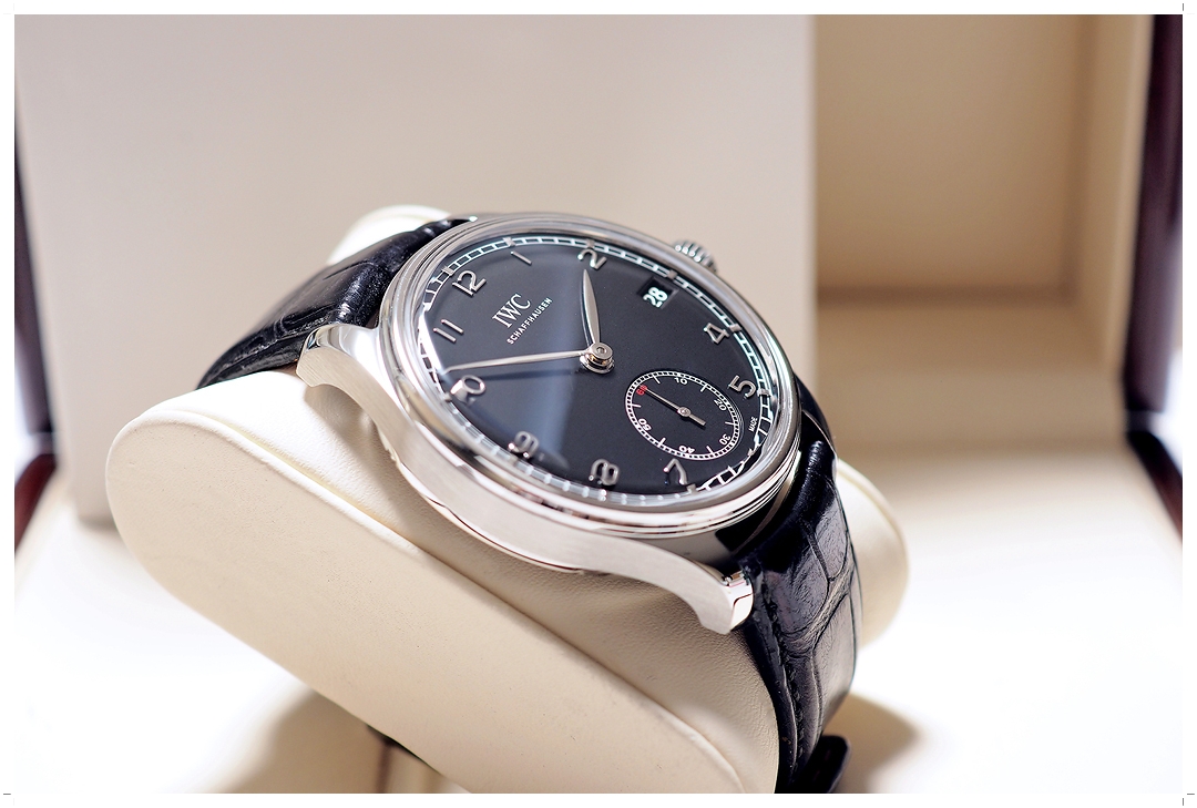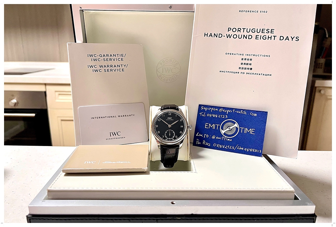IWC Portugieser 8 Days Hand-Wound 43mm หน้าปัดดำ ref.IW510202 ได้ฟีล Dress ที่สุดใน Collection! ตัวเรือนสวยมากๆ ขนแมวน้อย ไร้รอยหนัก กระจก Sapphire สวยใสไร้ริ้วรอย เดิมๆไม่เคยปัดขัด สายหนัง Alligator IWC Santoni Original ซับหลังส้ม สภาพดี ใช้งานได้อีกยาวนาน เครื่องไขลาน In-House IWC Caliber 59215 อยู่ได้ยาวๆ 8 วัน! Y-2022 Full-Set (Price List สุดท้ายก่อน Discon 4 แสนบาท) -153,000 บาท-