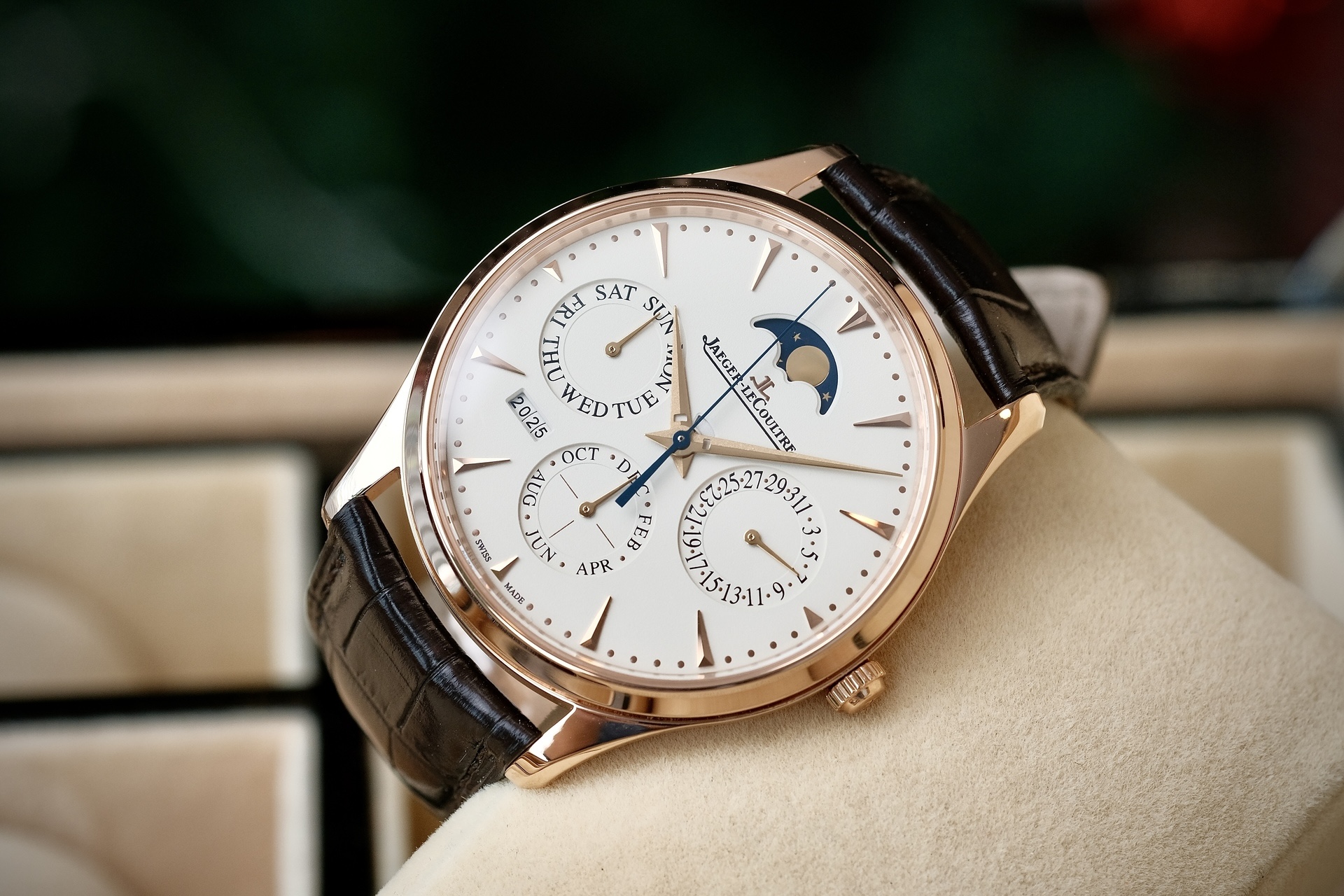 ตำนานของJLC ที่ไม่มีใครไม่รู้จัก Dr.Strange ขนาด 39mm วัสดุตัวเรือน Pink gold 18K มาในสไตล์เดส บางเฉียบ หน้าปัดสี Beige เข้ากับตัวเรือนได้เป็นอย่างดี อัดแน่นด้วยระบบ Perpetual Calendar ปฏิทิน 100 ปี มากับสายหนัง Alligator สีDark Brown แทบไม่มีร่องรอยใช้งาน กลไกin-house Automatic Caliber 868/1 ทำงานได้สมบูรณ์แบบครับ