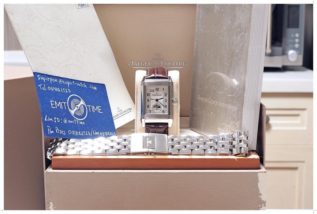 **ตัวจบ Reverso สำหรับคนข้อไม่ใหญ่** Jaeger-LeCoultre JLC Reverso Grande Big Date Sun/Moon GMT Automatic Monoface Anniversary 70 ปี Reverso สาย 2 เส้น สายเหล็ก JLC Original + สาย Alligator พร้อมบัคเคิ่ล (After-Market) 47mm x 29mm สภาพสวยมาก ไร้รอยหนัก เครื่อง Automatic JLC In-House Caliber 970 หน้าต่าง Big Date เข็ม Blue Steel พร้อมเข็ม GMT และหน้าต่าง Paint Sun/Moon Y-2008 Full-Set -258,000 บาท-