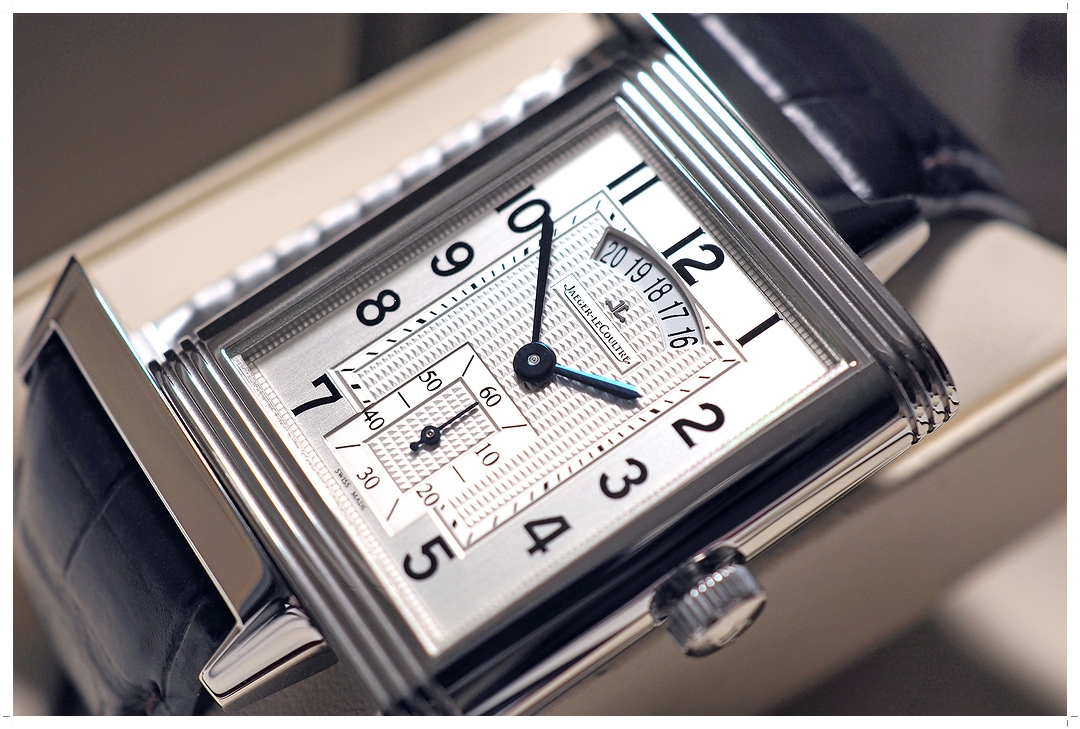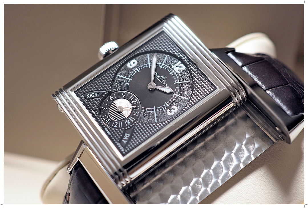 Reverso เรือนนี้ถือว่าเป็นหนึ่งใน Classical Timepiece ที่เป็นเอกลักษณ์ที่สุดเรือนนึงของ Collection ครับ ขนาด Grande (48.5mm x 30mm) ไซส์ใส่เต็มข้อสวยที่สุด ข้อมือ 6 นิ้วขึ้นไปใส่สวยมากๆ เข็ม Blue Steel โดดเด่นมากบนหน้าปัดสีขาว พร้อมหน้าต่างแสดงวันที่ ส่วนฝั่งด้าน Dress แสดงเวลาอีกหนึ่ง Time-Zone ที่สามารถแยกตั้งเวลาได้ พร้อมหน้าต่าง Day/Night สวยหรูหราลงตัวทุกมุมมอง สาย Alligator สี Dark Brown ของ JLC Original ตัดกับหน้าปัดทั้งสองฝั่งได้อย่างลงตัว ขึ้นข้อสวยทุกการแต่งตัวไม่ว่าจะลำลองหรือ Dress ออกงาน