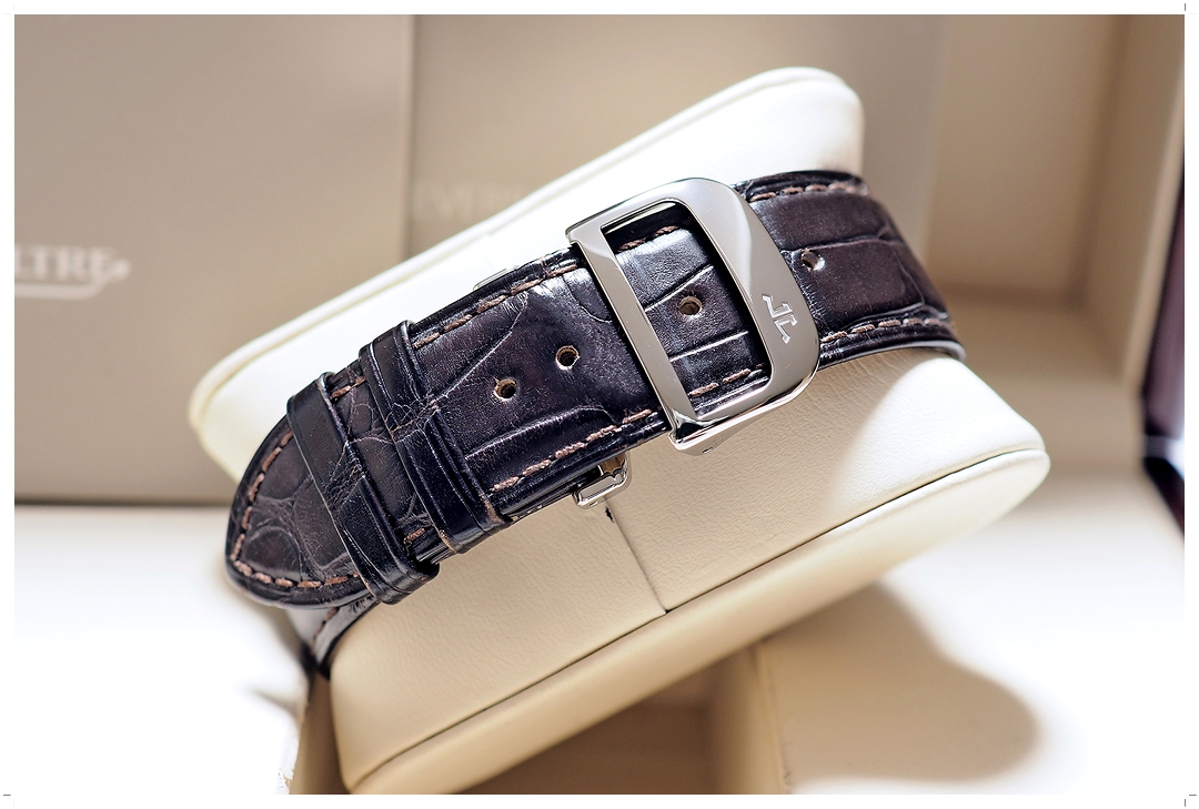 นาฬิกาเจ้าของซื้อป้ายแดงจากศูนย์ไทย ใช้งานน้อยมากๆ สภาพสาย Alligator JLC Original ยอดเยี่ยมมาก ใช้งานได้อีกยาวนาน ขนแมวจากการใช้งานน้อยมาก ไร้รอยหนักใดๆทั้งสิ้น ไม่เคยผ่านการปัดขัด กระจกสวยใสไร้ริ้วรอยทั้งสองฝั่ง กลไกไขลาน JLC In-House Caliber 986 Date + GMT Day/Night ทำงานได้อย่างสมบูรณ์แบบ