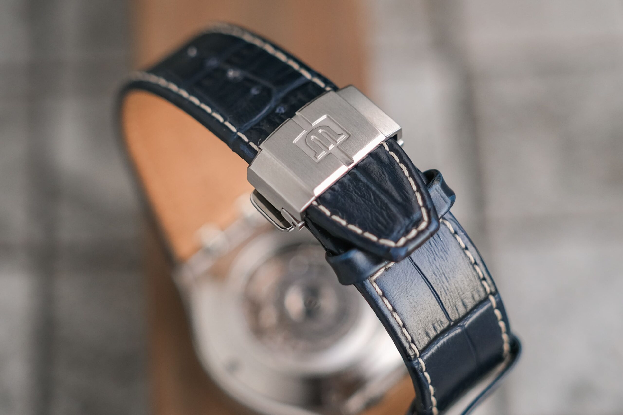 ✨ ขนาด 44 mm หน้าปัดสีเงินแกะลาย “Clous de Paris” ตัดกับ sub-dial สีน้ำเงิน Navy Blue ให้คอนทราสต์ที่ลงตัวสุดๆ พร้อมฟังก์ชัน Chronograph + Day Date ที่ตำแหน่ง 3 นาฬิกา กระจก Sapphire Crystal กันรอยทุกมุม เครื่อง Automatic ML112 เดินนิ่งเที่ยงตรง ใส่กับสายหนังจระเข้สี Navy พร้อมระบบเปลี่ยนสายแบบ Quick Change