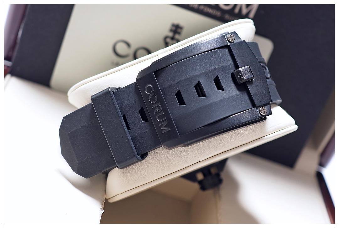 นาฬิกาเป็นของใหม่ ไม่เคยผ่านการใช้งาน ตัวเรือน Titanium เคลือบผิวด้วย Black PVD Coating ไร้ตำหนิ ไม่เคยปัดขัด กระจกตัดแสง Double Anti-Reflection Coating ไร้ริ้วรอย กลไก Corum Caliber CO-947 ระบบ Automatic 2 เข็มครึ่ง มาตรฐาน Chronometer พร้อม Helium Escape Valve ทำงานได้อย่างสมบูรณ์แบบ สายไม่มีร่องรอยการใช้งาน กลัดรูรัดหมอนนอนเซฟตลอดชีวิต