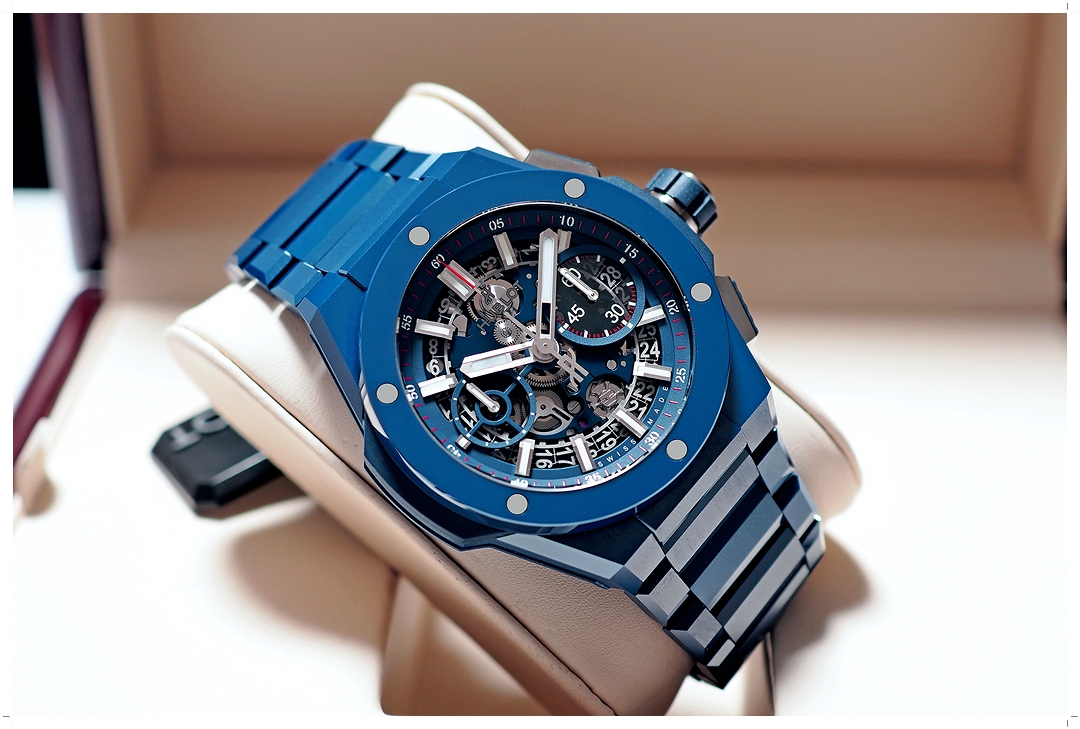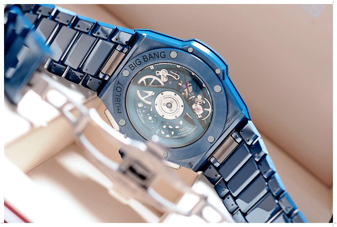 ตัวเรือนและสายทั้งเส้นของเรือนนี้ทำจากวัสดุ Blue Ceramic ขัดเงาแทรกด้วยงานขัดซาตินอย่างประณีต มีความทนทานสูงมากๆ หน้าปัดโชว์กลไก UNICO HUB1280 Chronograph Flyback อย่างสวยงาม ขนาดตัวเรือน 42mm ใส่สวยทุกคน ดูมีมิติมากๆ สวยเก๋ไม่ซ้ำใคร และดูมีเอกลักษณ์เฉพาะตัว หลังเครื่องเปลือยโชว์กลไกระดับโลก ราคาป้ายช็อปวันนี้สูงถึง 859,000 บาท เทียบสิ่งที่ได้กับราคาที่จ่าย ถือว่าคุ้มค่าทุกบาททุกสตางค์ครับ