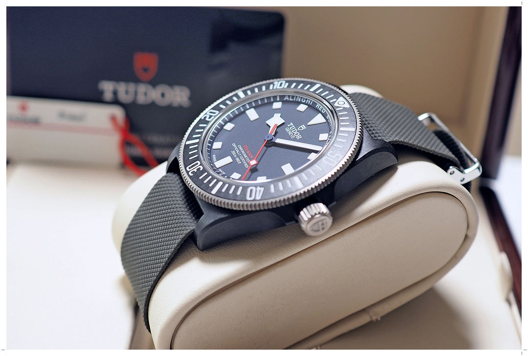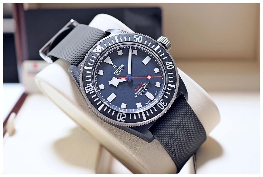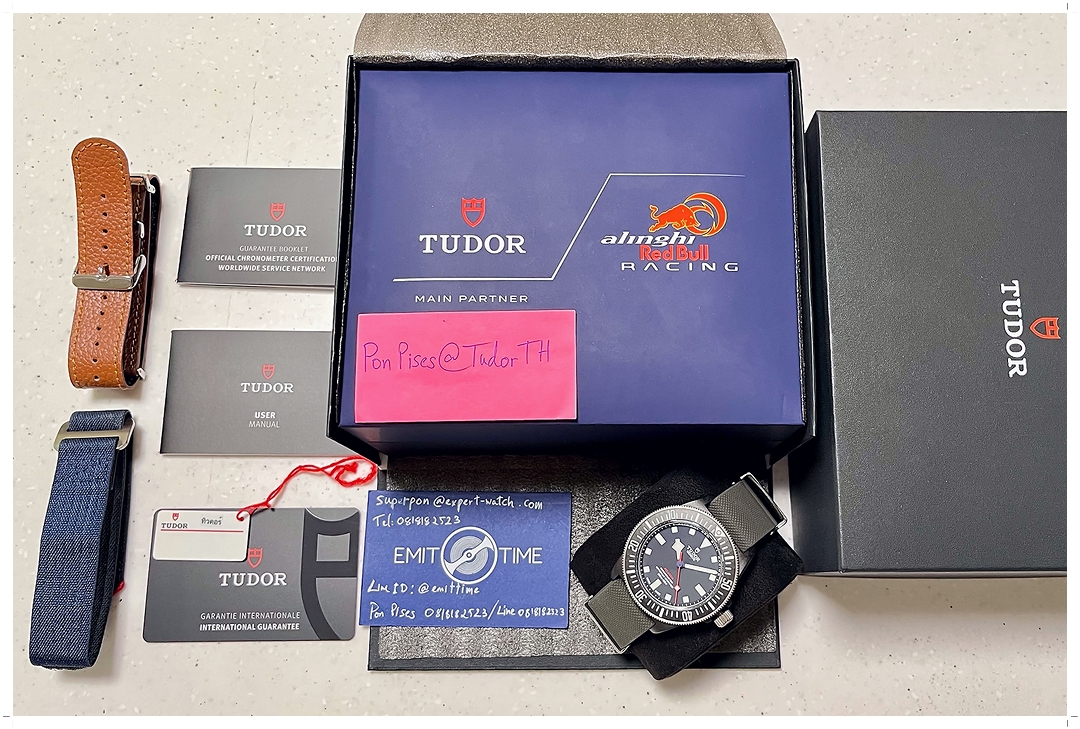 Pelagos FXD โฉมนี้เป็น Edition ที่ทำเพื่อ Celebrate Long-Term Partnership ระหว่าง Tudor กับ Alinghi Red Bull Racing ที่มีมาอย่างยาวนาน ฝาหลังแกะสลัก Red Bull Racing อย่างเป็นเอกลักษณ์ สติ๊กเกอร์ฝาหลังยังอยู่ ขนาดตัวเรือน 42mm ทำจาก Carbon Composite ใส่สบายและเต็มข้อพอดีมากๆ หน้าปัดสี Matte Blue ตัดกับเข็มวินาทีสีแดง เข้ากับขอบเบเซลและตัวเรือนสีดำเป็นอย่างดี ใส่เข้าได้กับสายทุกชุด พรายน้ำสว่างสดใสสุดๆ กระจก Sapphire ไร้รอยขีดข่วน แต่งตัวง่าย เข้าได้กับทุกชุด ราคา Price List สูงถึง 147,700 บาท EMITTIME เสนอราคาของใหม่เรือนนี้ถูกกว่าป้ายเกือบครึ่งราคาครับ