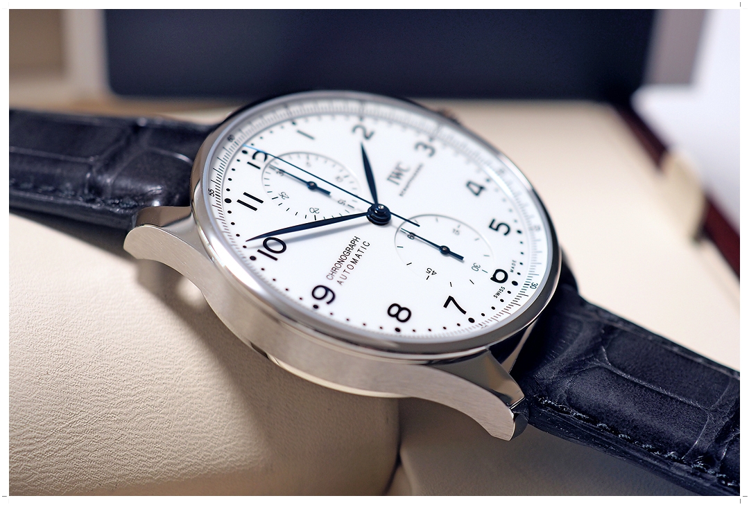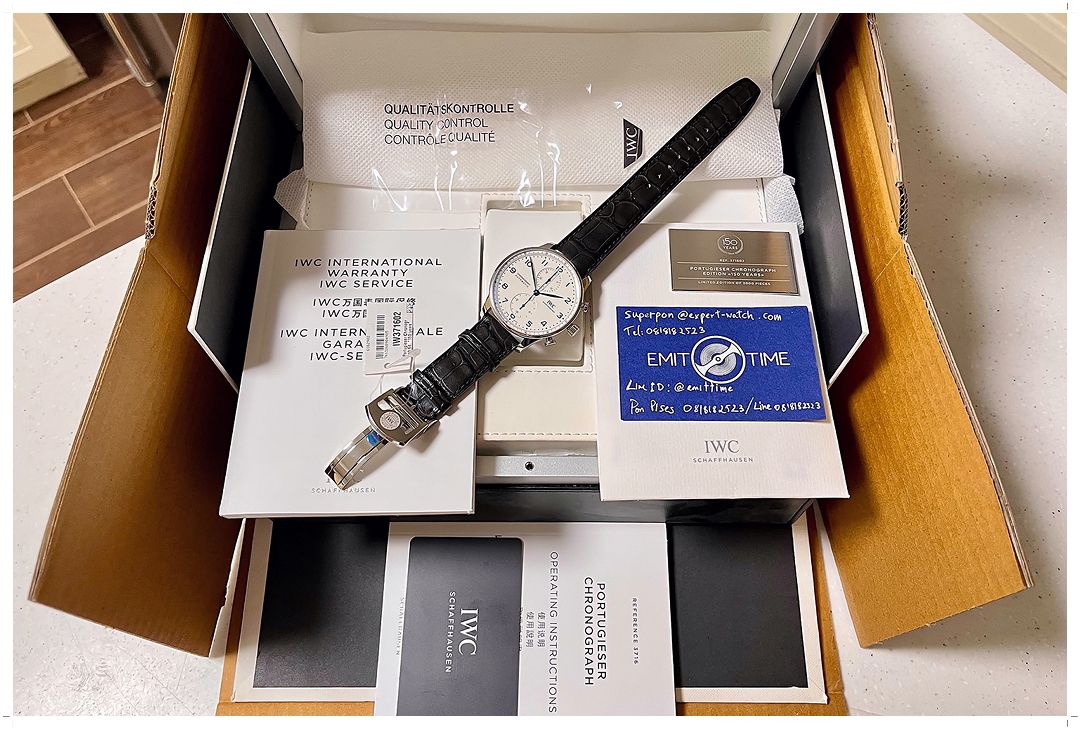 IWC Portugieser โมเดลนี้ เป็น Model ที่ Celebrate ครบรอบ 150 ปีให้กับ IWC Portugieser Collection ด้วยการออกแบบที่ทำให้ดูโดดเด่นด้วยหน้าปัดขาวกระเบื้องเงา เข็ม Blue Steel หลักนูน หลังเปลือย สาย Alligator สีดำตัดกับสีหน้าปัดอย่างสมบูรณ์แบบ หน้ากระเบื้องขาวเงาสวยเด่นขั้นสุด ดูหรูหราและ Sporty ในเรือนเดียวกัน ขนาดตัวเรือน 41mm เข้าได้ทุกการแต่งตัว ไม่ล้นเกิน ไม่เล็กไป วาง Layout วง Chronograph ได้ลงตัว ใส่แล้วหล่ออย่างโดดเด่น ผลิตเพียง 2000 เรือนทั่วโลก และจำหน่ายเฉพาะใน IWC Boutique เท่านั้น แทบจะหาไม่ได้ในท้องตลาด เรือนนี้มาด้วย Condition 100% New Old Stock (NOS) ที่อุปกรณ์ครบทุกอย่าง ราคา Price List สุดท้ายสูงถึง 294,000 บาท EMITTIME เสนอราคาต่ำป้ายเกือบ 50% ครับ!