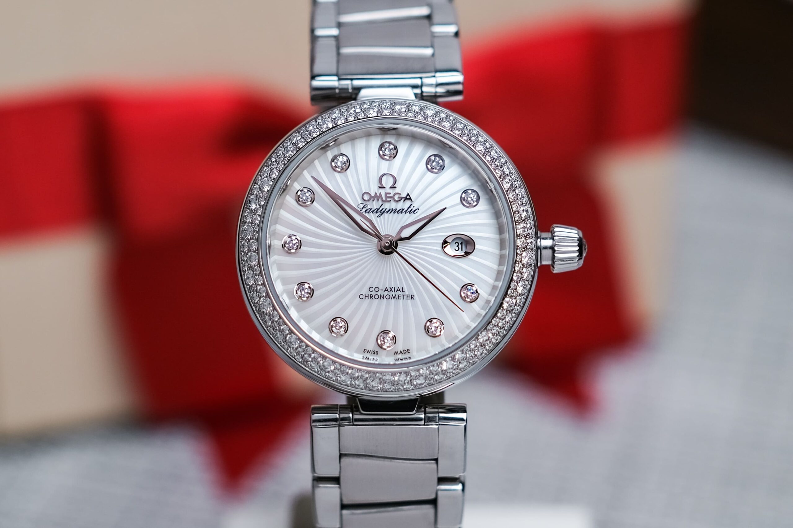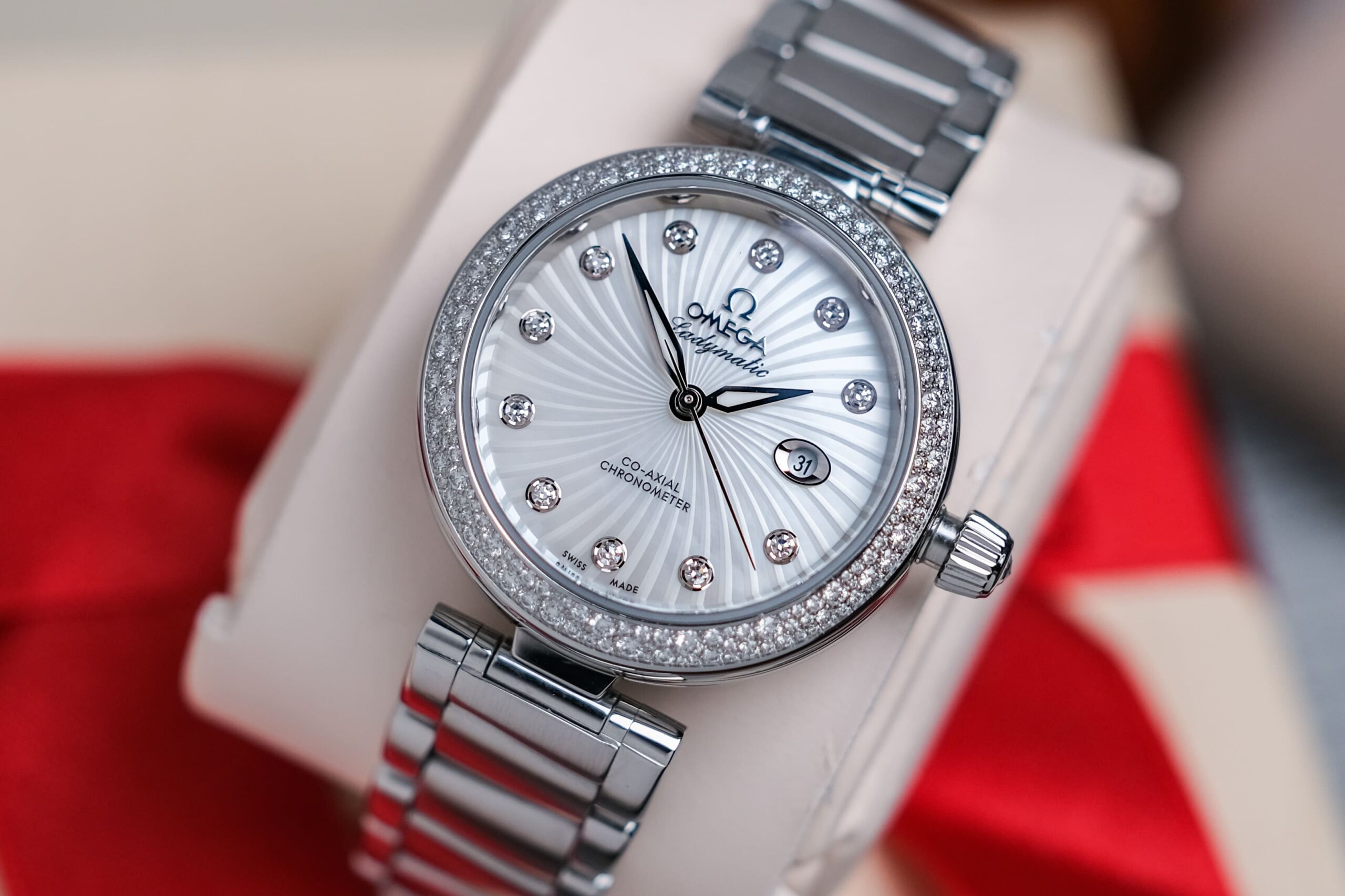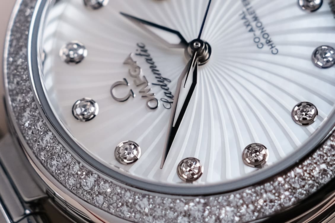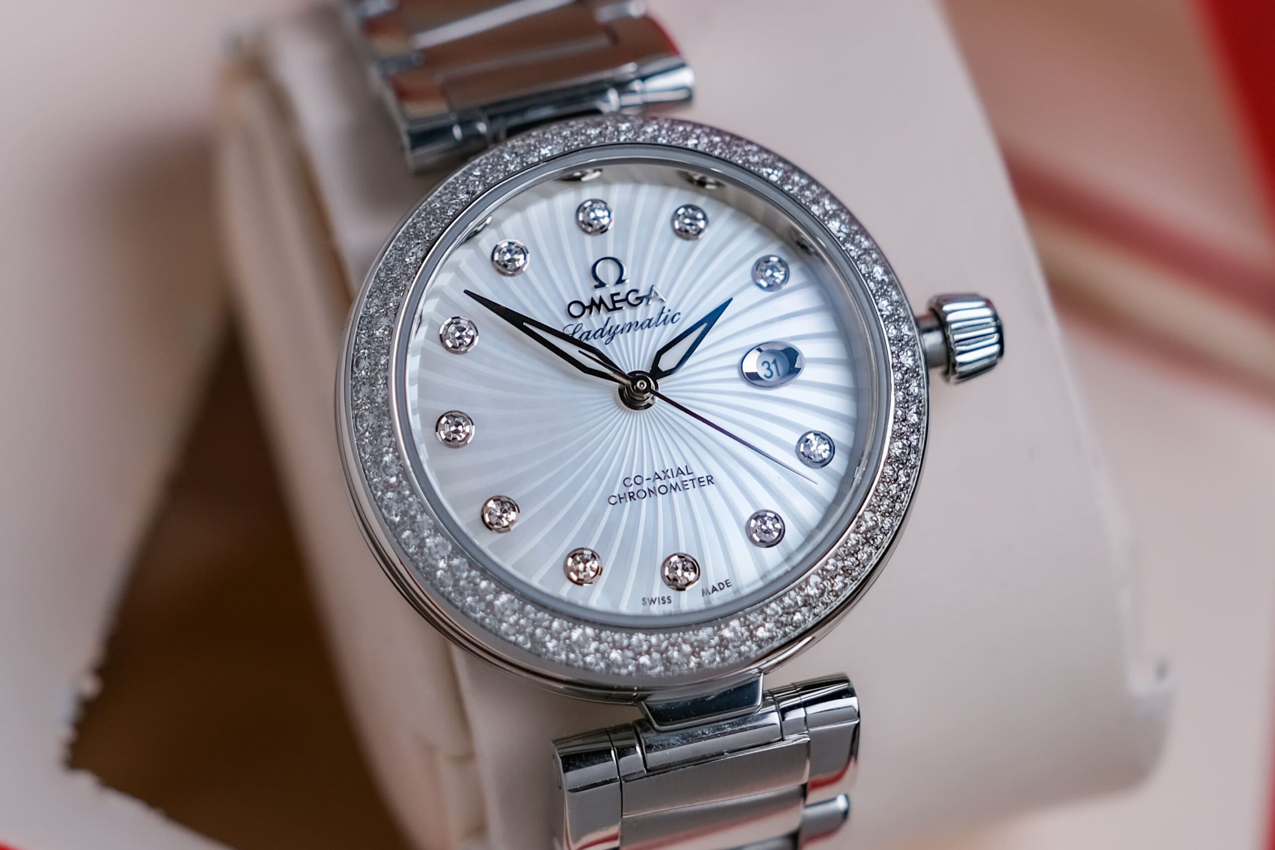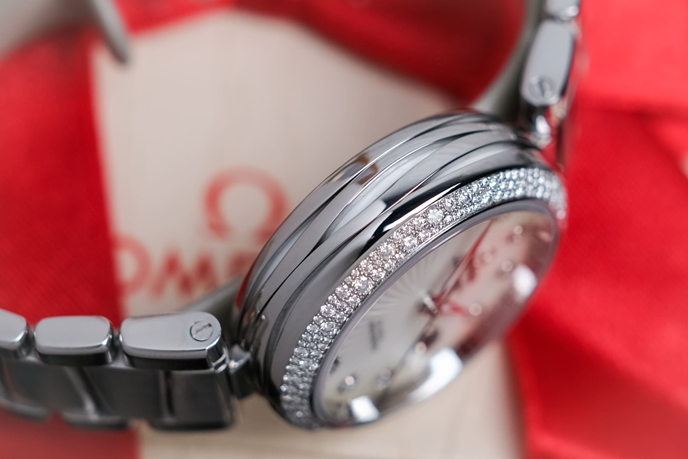 ✨ เรือนนี้คือตัวแทนของเสน่ห์ผู้หญิงที่ทันสมัยแต่ยังคงความอ่อนโยนไว้ในดีไซน์คลาสสิก Ladymatic เป็นไลน์ที่ Omega รังสรรค์เพื่อ “หญิงสาวผู้หลงใหลความเที่ยงตรงพอ ๆ กับความงาม” ความเงางามของเปลือกหอยมุกตัดกับประกายเพชรบนขอบตัวเรือนสะท้อนความหรูหราเหนือกาลเวลา ทุกองค์ประกอบตั้งแต่ลายคลื่นบนข้างเคสจนถึงเครื่องที่มองเห็นผ่านฝาหลัง ล้วนสื่อถึงความพิถีพิถันระดับงานศิลป์