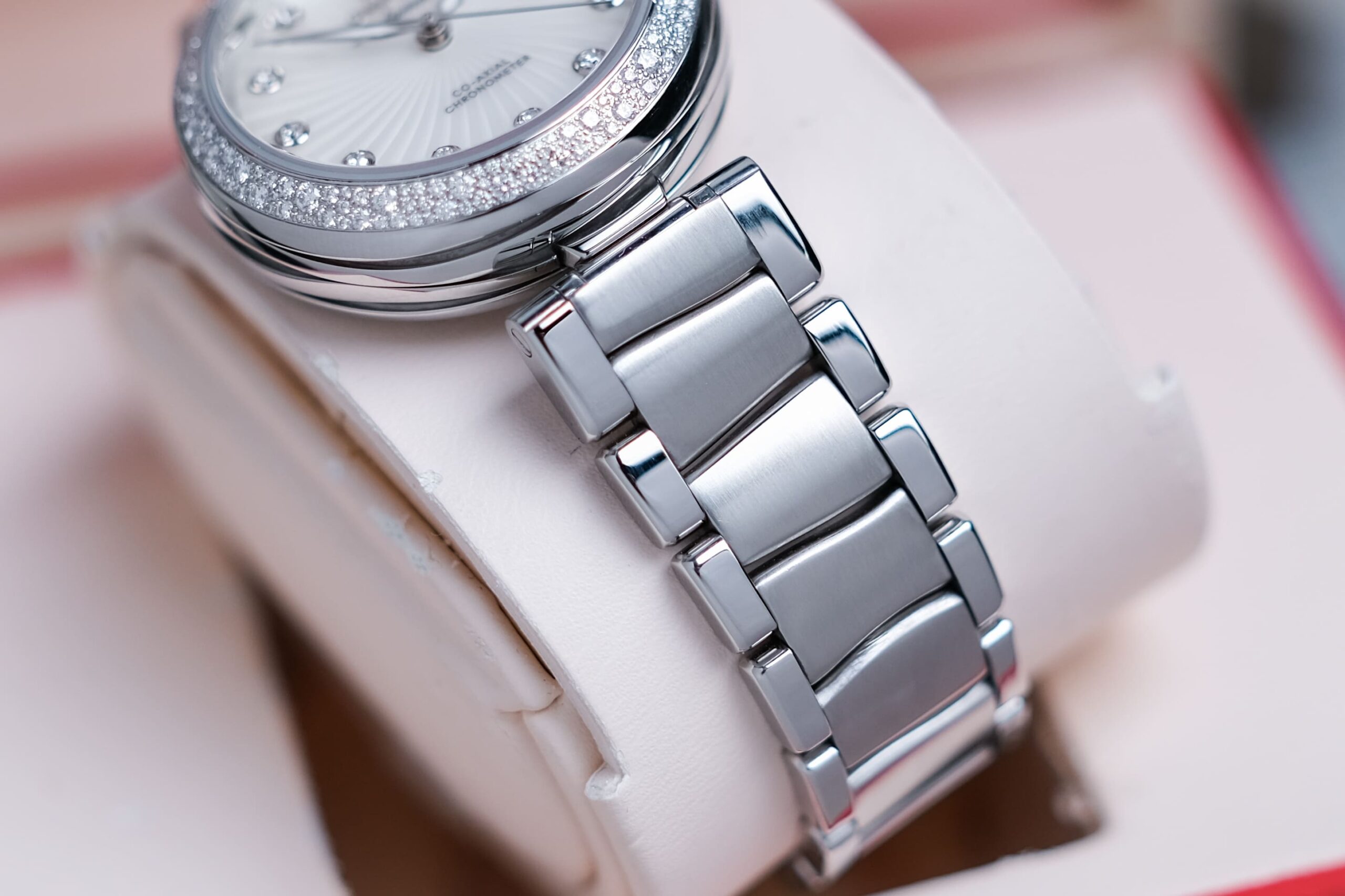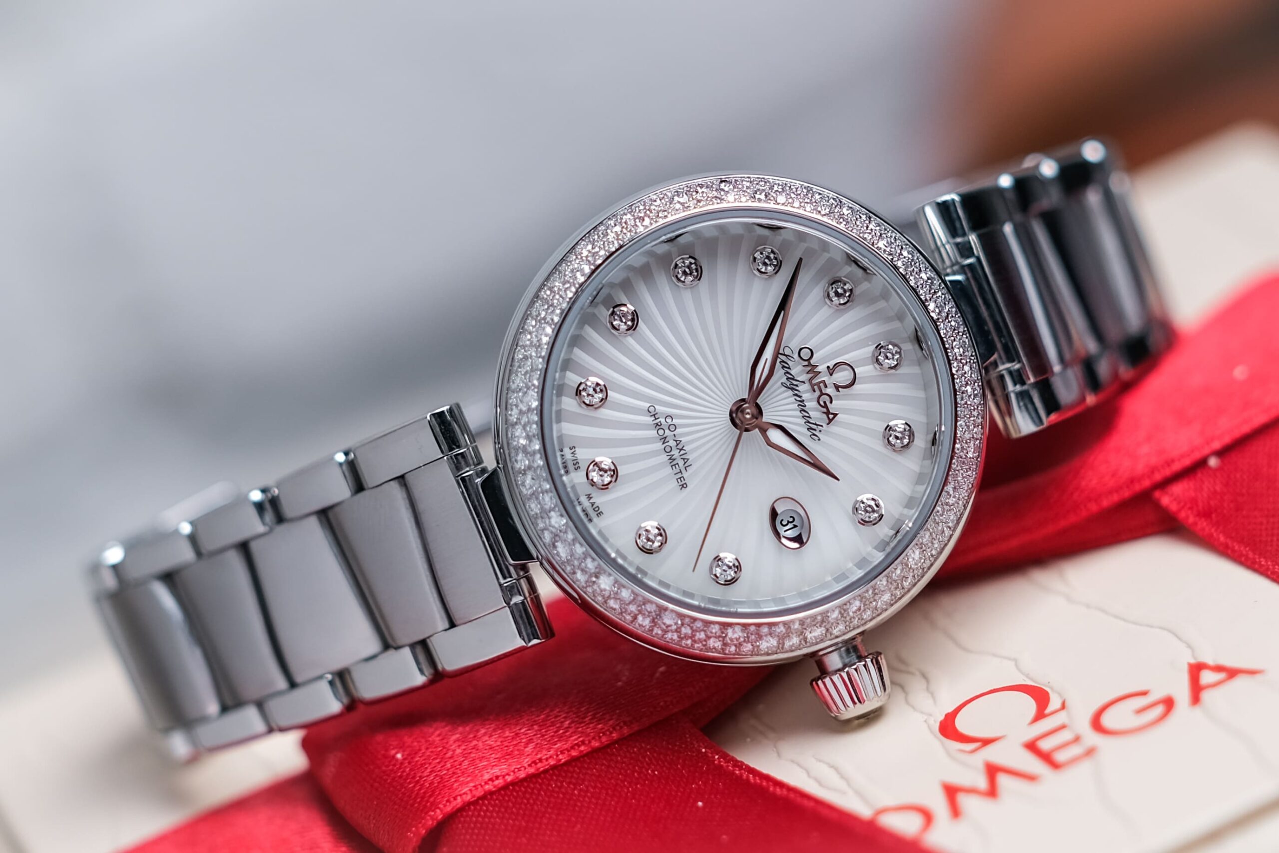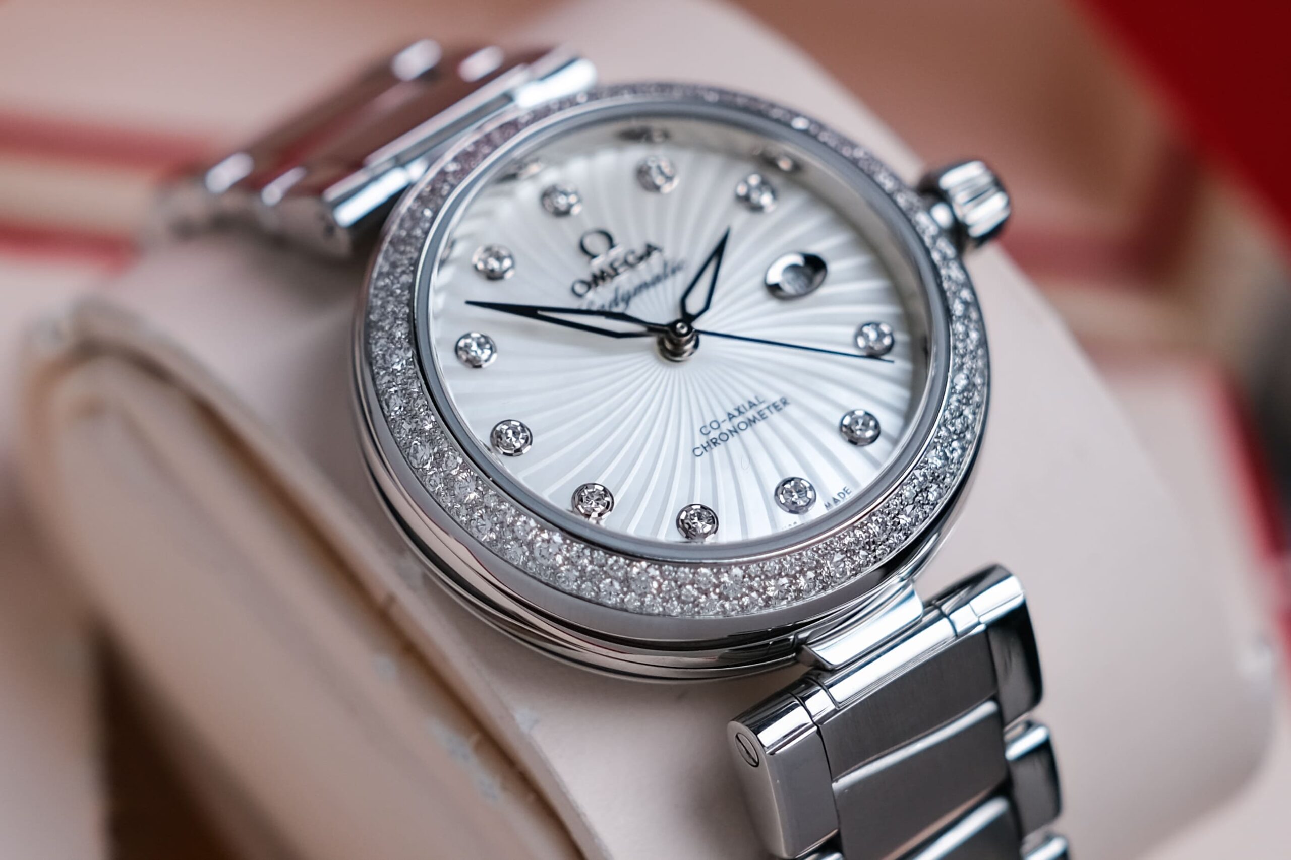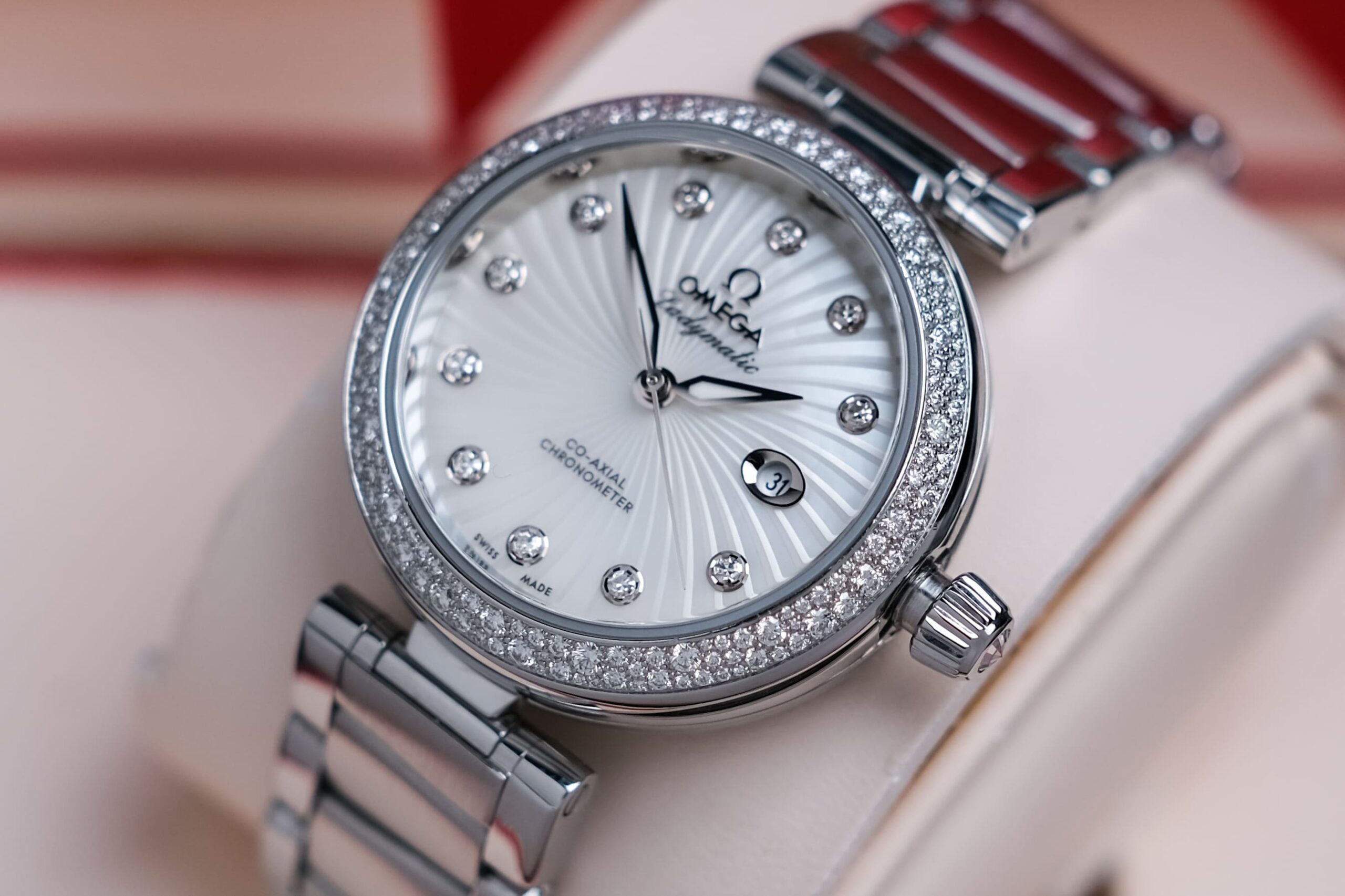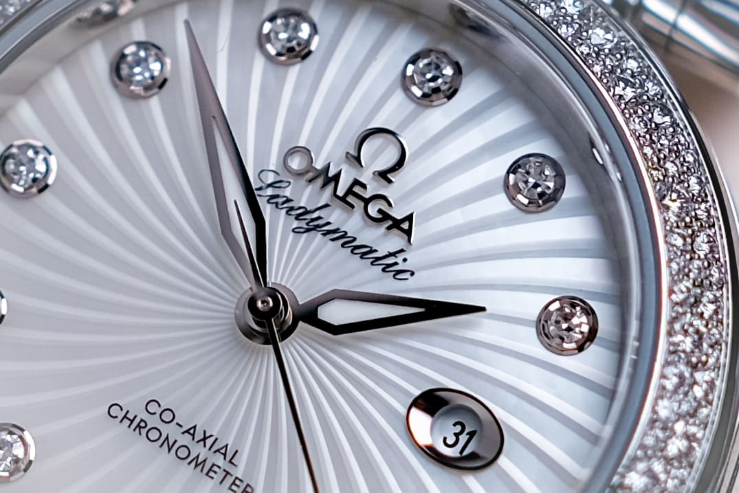 ✨ เรือนนี้คือตัวแทนของเสน่ห์ผู้หญิงที่ทันสมัยแต่ยังคงความอ่อนโยนไว้ในดีไซน์คลาสสิก Ladymatic เป็นไลน์ที่ Omega รังสรรค์เพื่อ “หญิงสาวผู้หลงใหลความเที่ยงตรงพอ ๆ กับความงาม” ความเงางามของเปลือกหอยมุกตัดกับประกายเพชรบนขอบตัวเรือนสะท้อนความหรูหราเหนือกาลเวลา ทุกองค์ประกอบตั้งแต่ลายคลื่นบนข้างเคสจนถึงเครื่องที่มองเห็นผ่านฝาหลัง ล้วนสื่อถึงความพิถีพิถันระดับงานศิลป์