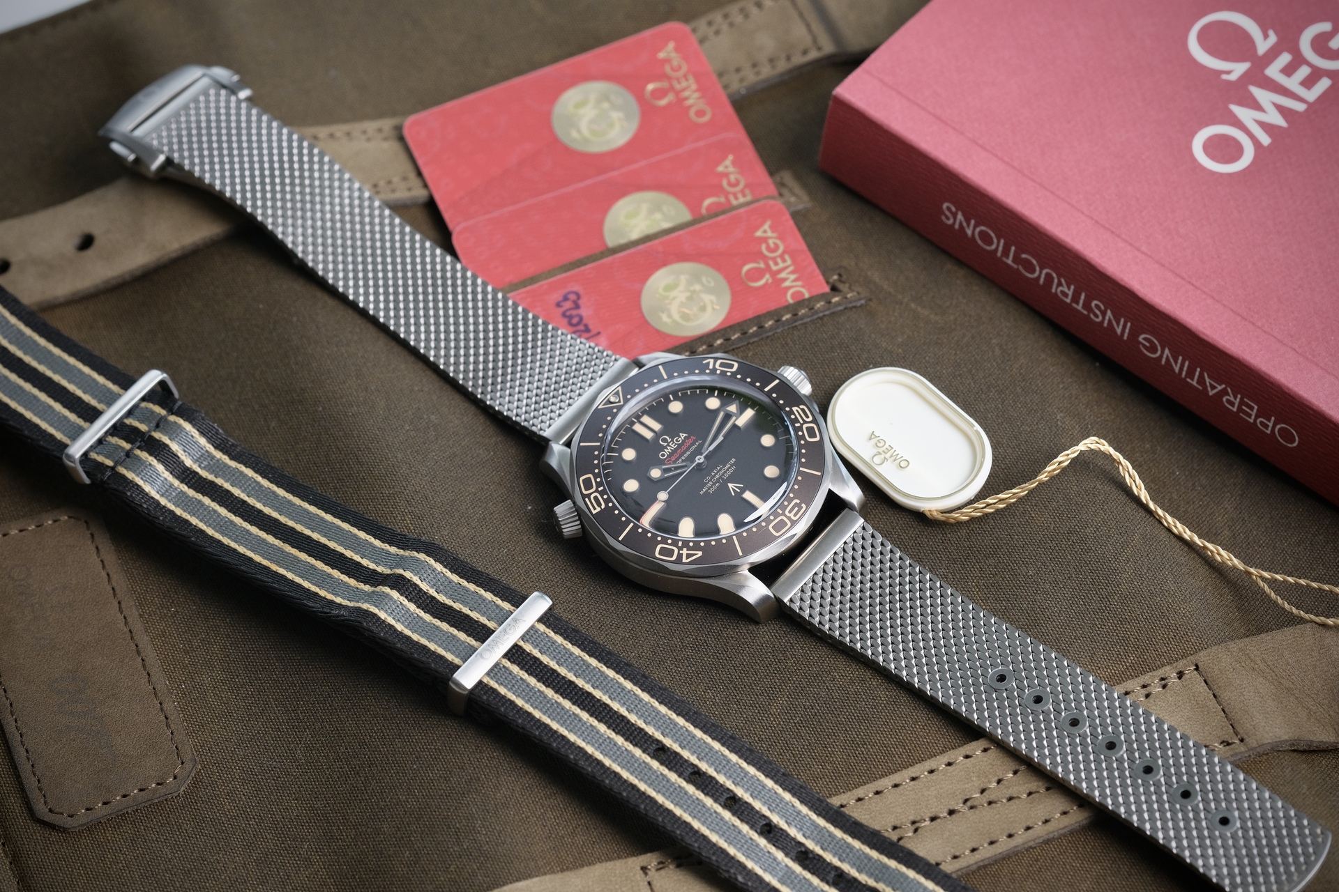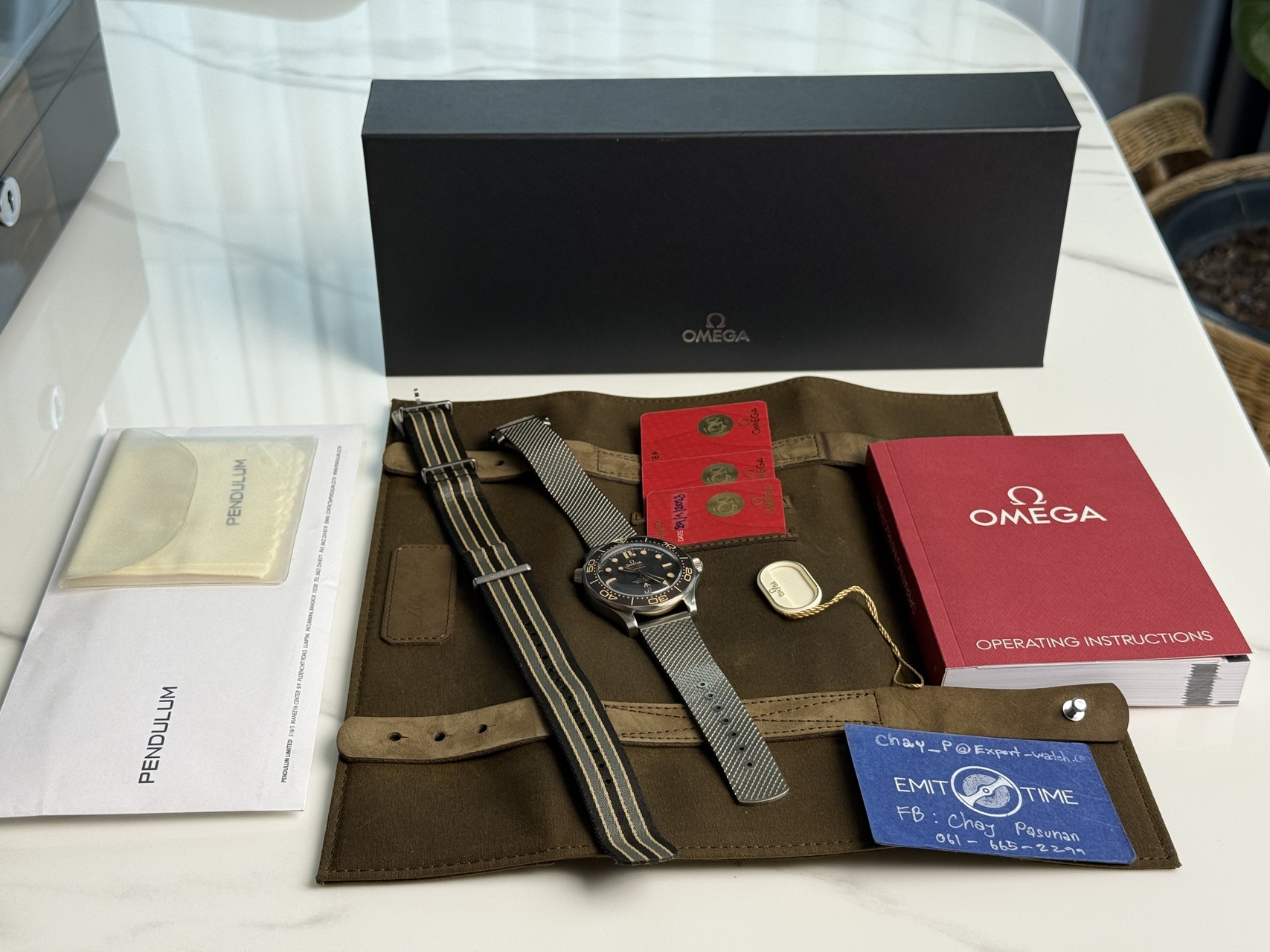 99.99% Very like new 2023 ไม่เคยปัด-ขัด สภาพใกล้เคียงของใหม่ ไร้ริ้วรอย อุปกรณ์Full set ครบยันใบเสร็จไทย🇹🇭 พร้อมกับสาย Nato Omega เบิกแท้อีก 1 ชุด set นี้ประหยัดไป 40% จากป้าย (380,000)