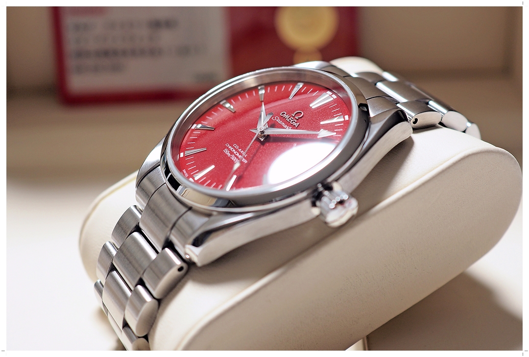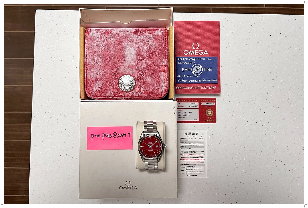 Omega Aqua Terra โมเดลนี้หาได้ยากมากๆในท้องตลาดครับ ผลิตเพียงปีเดียว และ Exclusive เฉพาะตัวแทนจำหน่าย Marui ในประเทศญี่ปุ่นเท่านั้น สภาพตัวเรือนสวยมาก ขนแมวน้อยมากๆ ไร้รอยหนักใดๆทั้งสิ้น ตัวเรือนขนาด 39.5mm สวยพอดีข้อกับทุกคน หน้าปัดสีแดงสดกว่าโฉมปกติ แสดงถึงความเป็นเอกลักษณ์ของประเทศญี่ปุ่น กระจก Sapphire Double Anti-Reflection Coating ตัดแสงโชว์สีหน้าปัดอย่างสวยงาม หลังเปลือยโชว์กลไก Omega In-House Coaxial Caliber 503 ระบบ Automatic ที่แกะลวดลายได้ระดับ Top-Class ทำงานได้อย่างสมบูรณ์แบบ เข็มนาที Broad Arrow โชว์เอกลักษณ์เฉพาะรุ่น พร้อมหน้าต่างวันที่ที่ตำแหน่ง 3 นาฬิกา ใส่สวยทุกการแต่งตัว ไม่มีซ้ำใครในตลาดอย่างแน่นอนครับ