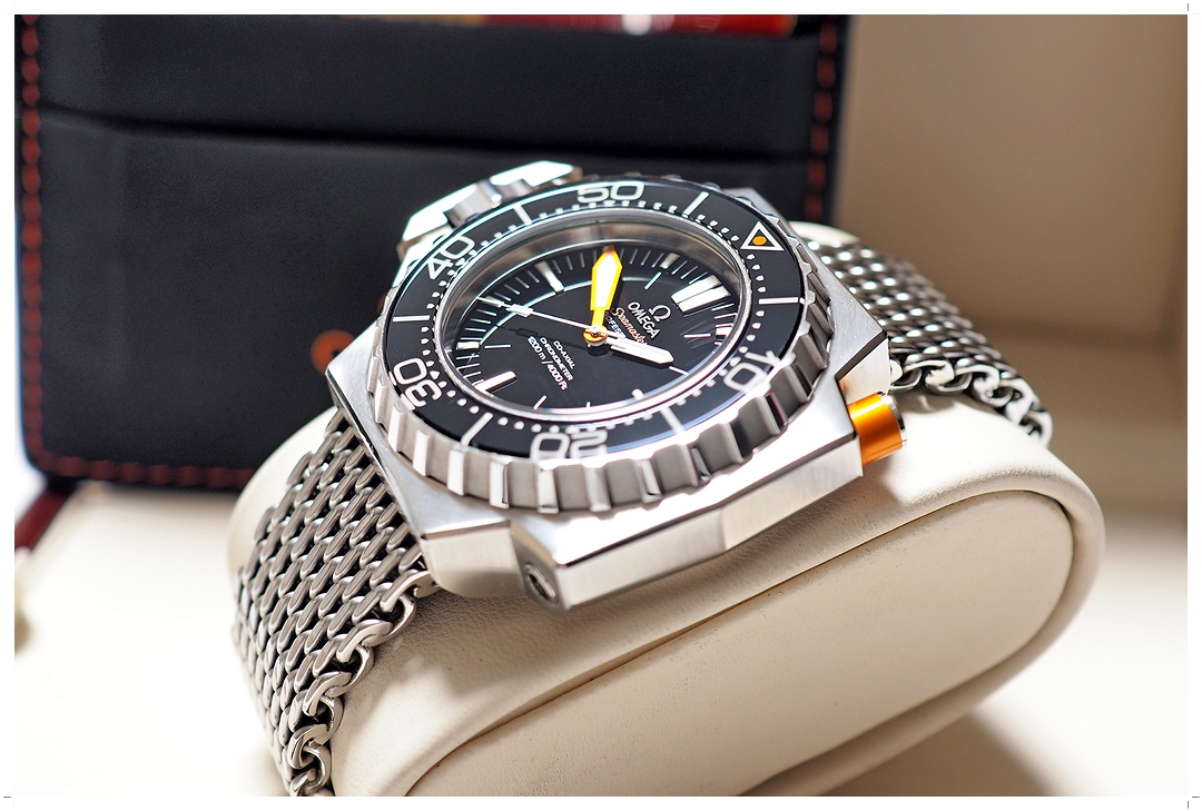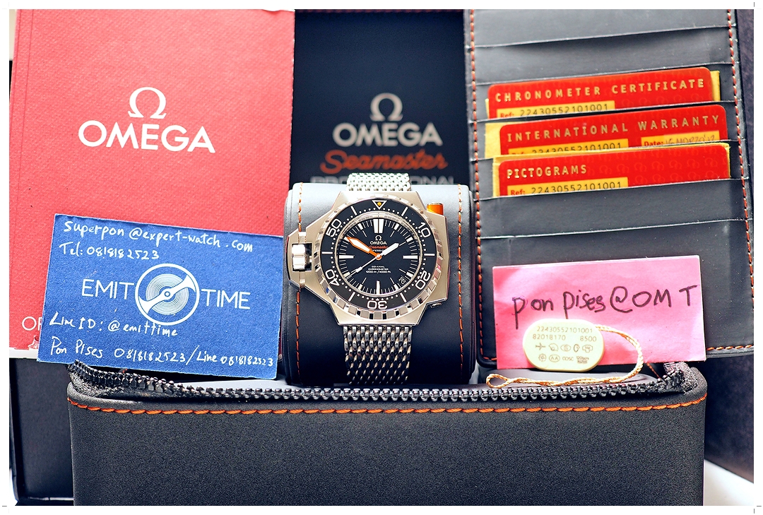Omega Seamaster Ploprof 1200m 55mm x 48mm (Lug-to-Lug) ref.22430552101001 ขับซ้าย สวยเดิมไม่เคยขัดแต่ง รอยขนแมวจากการใช้งานเล็กน้อย ไร้รอยหนัก ขอบ Bezel ทำจากวัสดุ Black Sapphire กระจกไร้รอยขีดข่วน สายถัก Integrated Sharkproof ข้อครบถ้วน Price List สุดท้ายสูงถึง 389,000 บาท Y-2012 Full-Set -168,000 บาท-