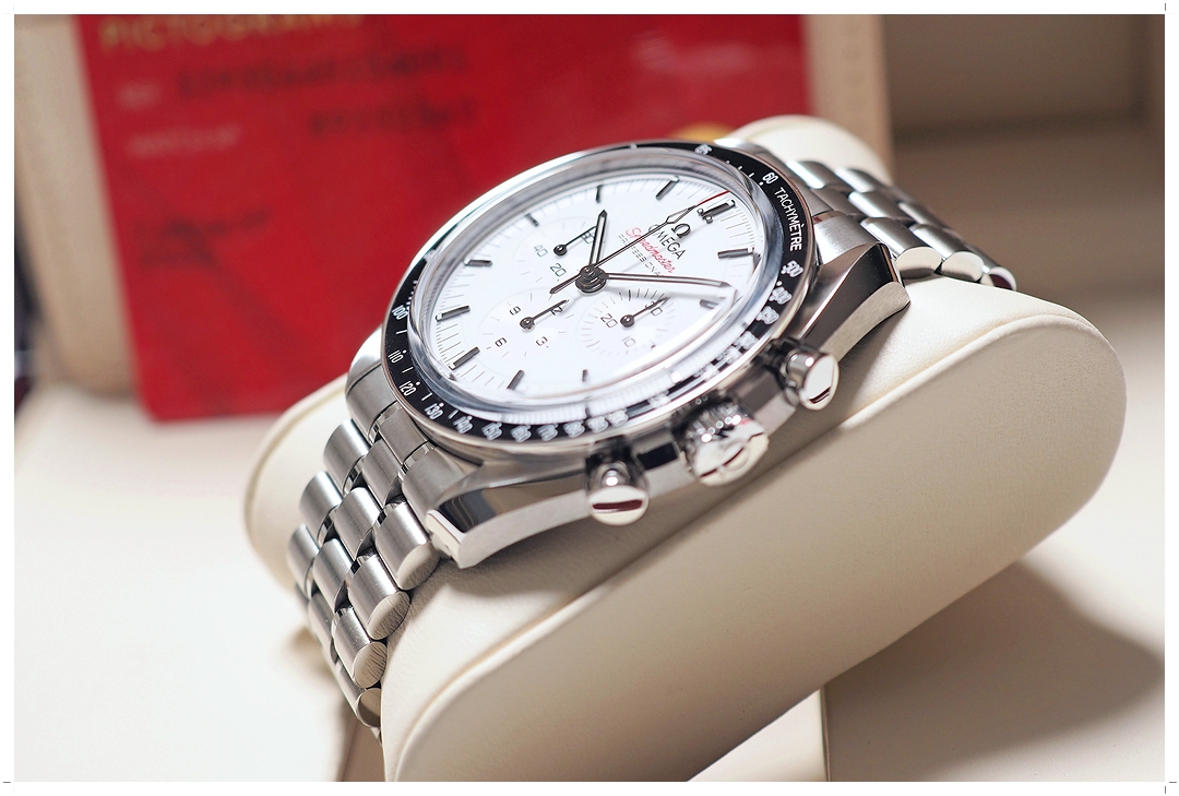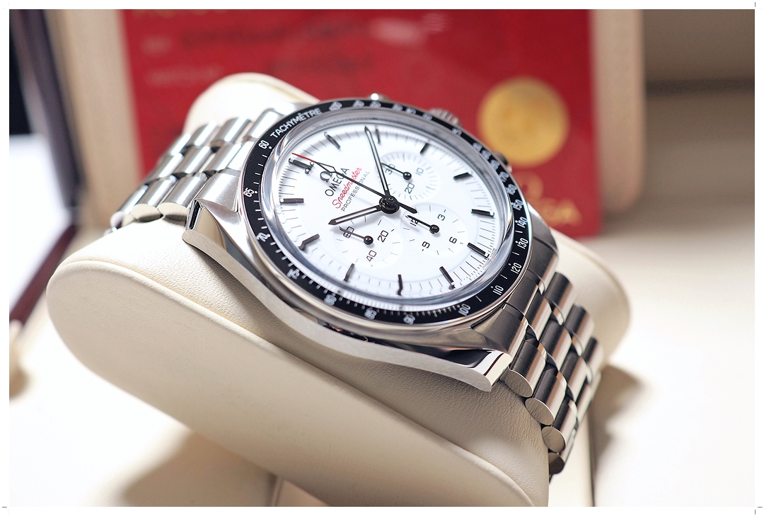 Speedmaster Moonwatch Professional ถือเป็น Iconic Timepiece ของ Omega มายาวนานกว่าหลายทศวรรษ เรือนนี้มาด้วยโฉมล่าสุด หน้าปัดขาวแลคเกอร์สว่างสดใส ตัวเรือนบางเพียง 13.18mm ดูหรูหรามากๆ กระจกหน้าหลังเป็น Sapphire โชว์กลไกเครื่องไขลาน 3861 อย่างสวยงาม ขนาดตัวเรือน 42mm ใส่สวยทุกขนาดข้อมือ หน้าปัดและวง Chronograph ดูมีมิติงดงามมาก สายเหล็กเข้ากันกับตัวเรือนได้อย่างสมบูรณ์แบบ แต่งตัวเข้าได้กับทุกชุด จัดว่าเป็นนาฬิกาที่คลาสสิค อมตะที่สุดตลอดกาลเรือนนึงของวงการนาฬิกาทั่วโลก ราคา Price List วันนี้สูงถึง 300,000 บาทครับ