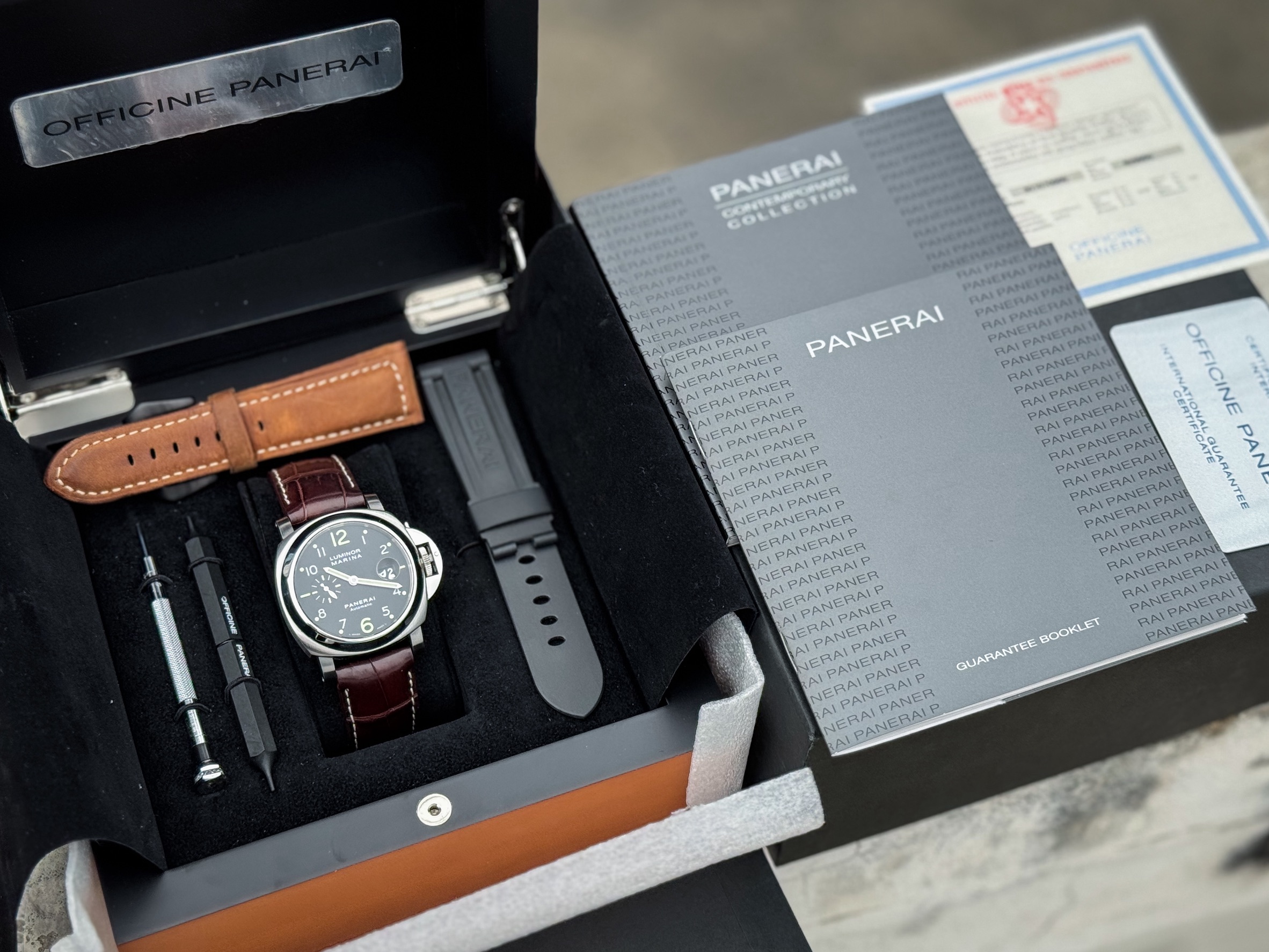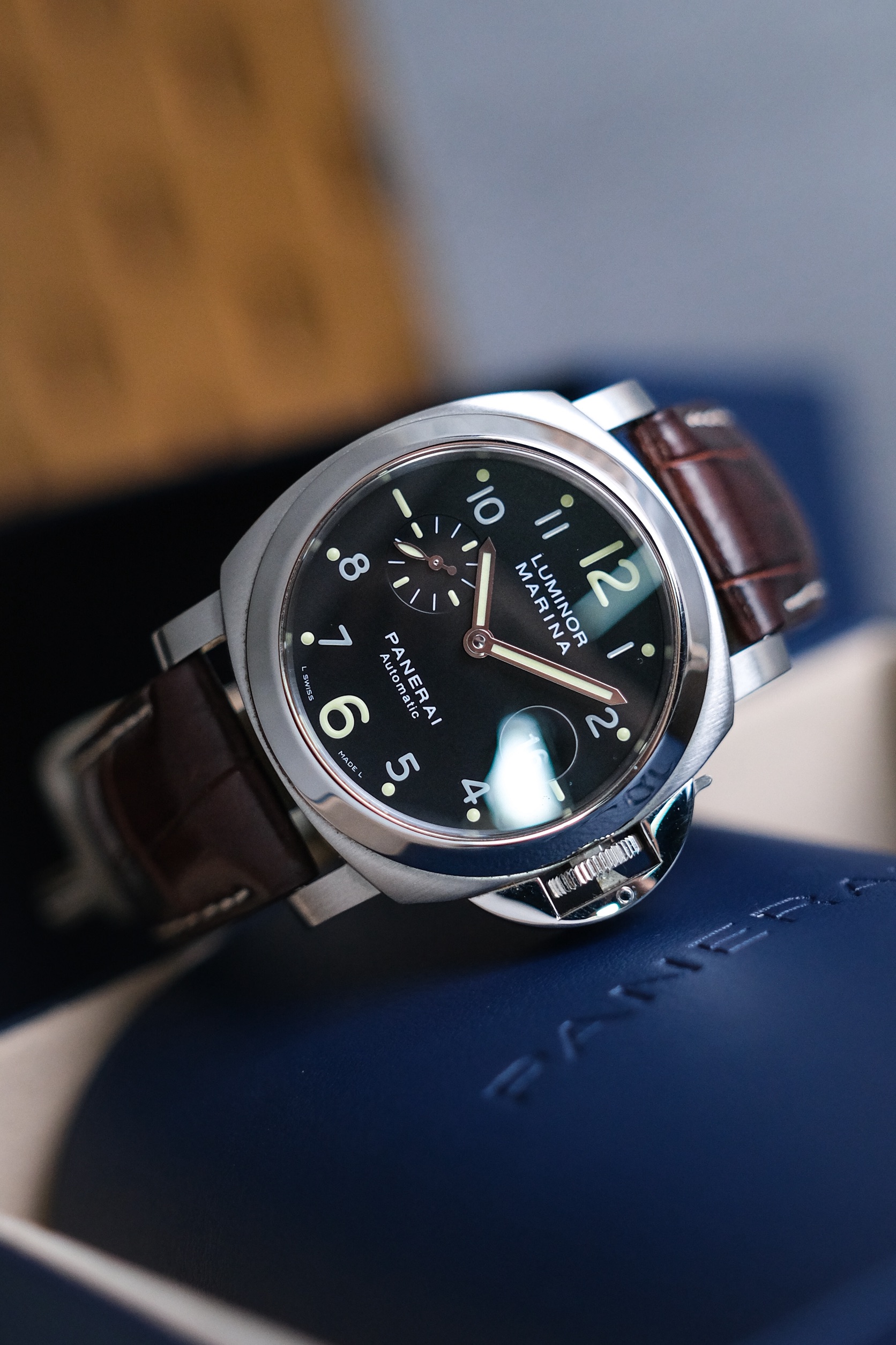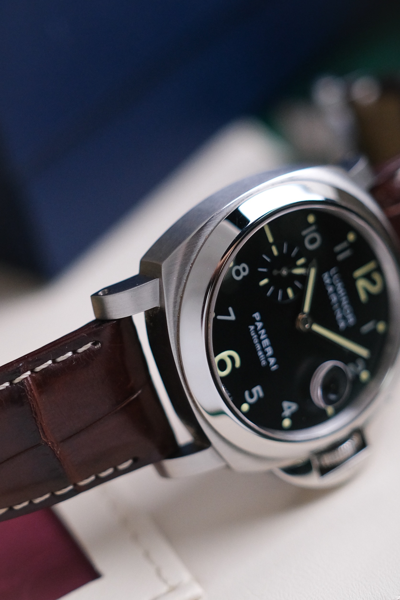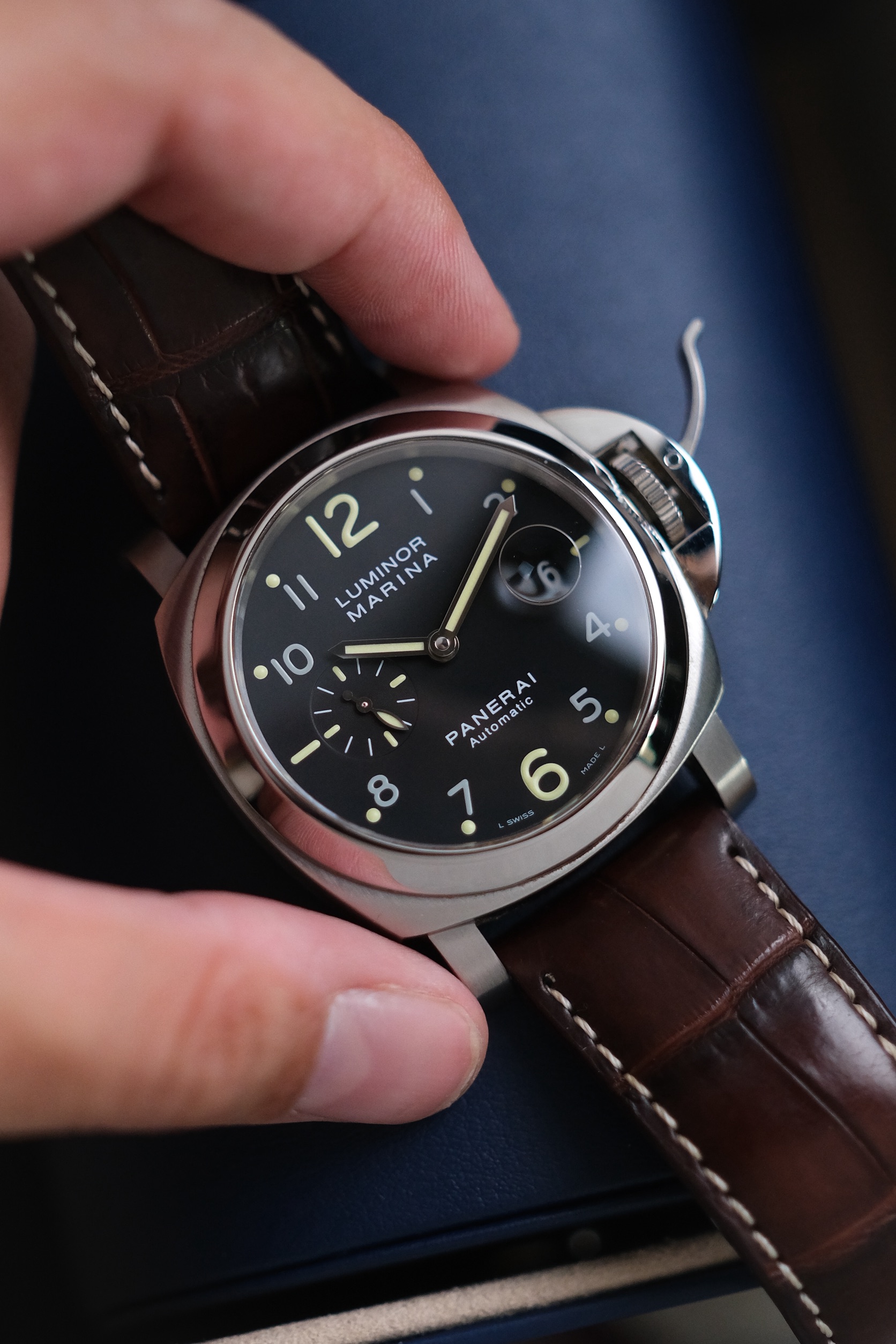 ✨ ขนาด 44mm. ไซส์เต็มข้อ หน้าปัดเพนต์ หลักอารบิคพิมพ์นิยม ได้ช่องวันที่เลนส์ขยายและวงเข็มวินาที กระจก Sapphire สวยใส ตัวเรือนอ้วนกลมคลาสสิคสไตล์ Luminor ได้กลไก Automatic OPIII ใส่กับสายหนังจระเข้ After Market หบ่อครบเครื่อง