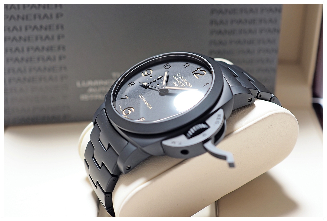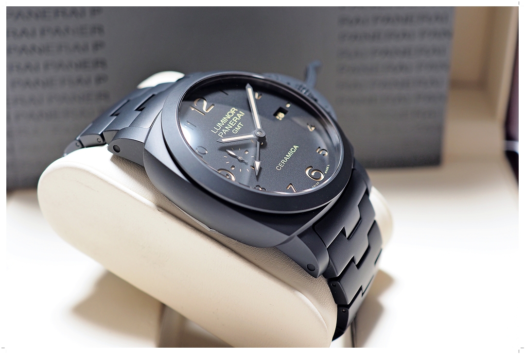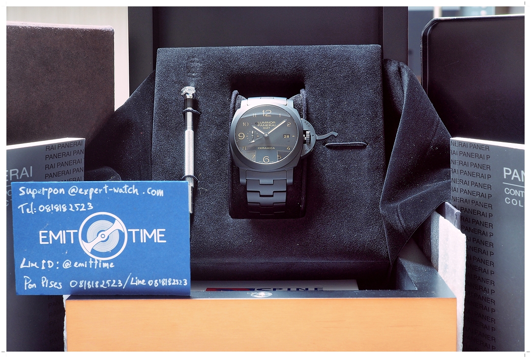 **ลดจากป้ายเกิน 60%** Panerai Luminor 1950 3 Days GMT Tuttonero Ceramica PAM438 (PAM00438) 44mm สวยนางฟ้า ไร้รอยหนัก กระจกไร้รอยขีดข่วน ไม่เคยปัดขัด กลไก In-House ตัวเทพสุด P.9001/B ระบบ Automatic GMT 2 เข็มครึ่ง Zero-Sec-Reset หน้าแซนวิช พรายไข่ไก่ Full Ceramic ทั้งตัวเรือน สาย เข็ม และ Rotor หล่อดุดันขั้นสุด (ราคา Price List สุดท้าย 568,000 บาท) Y-2015 Full-Set -209,000 บาท-