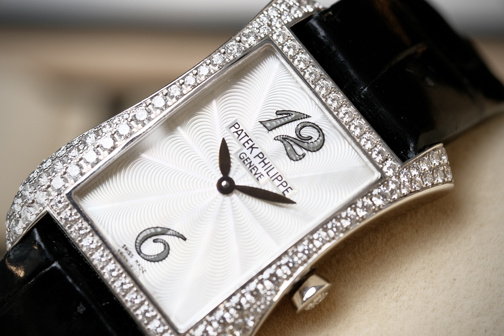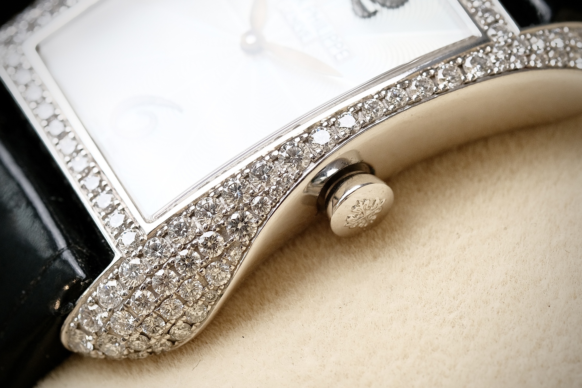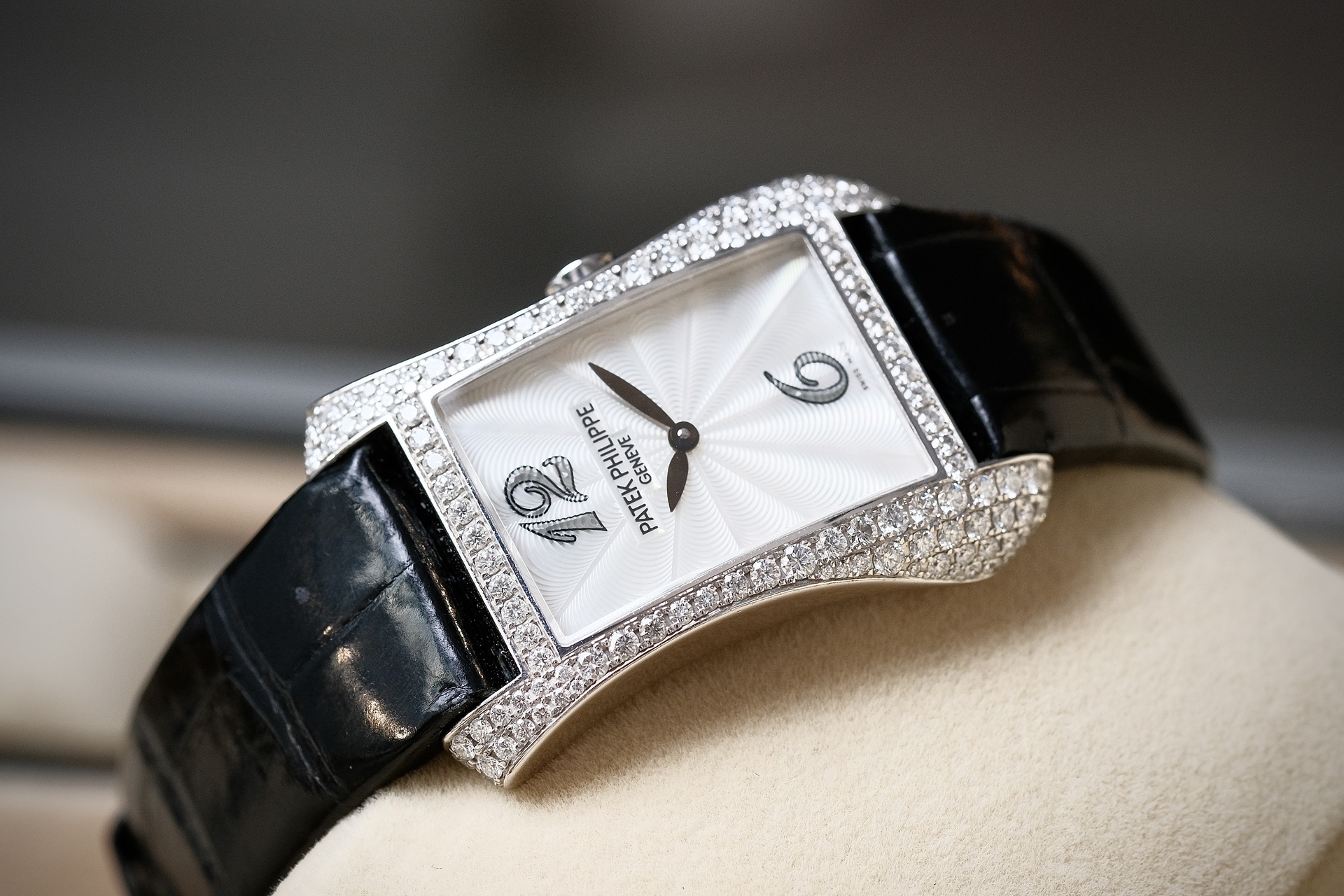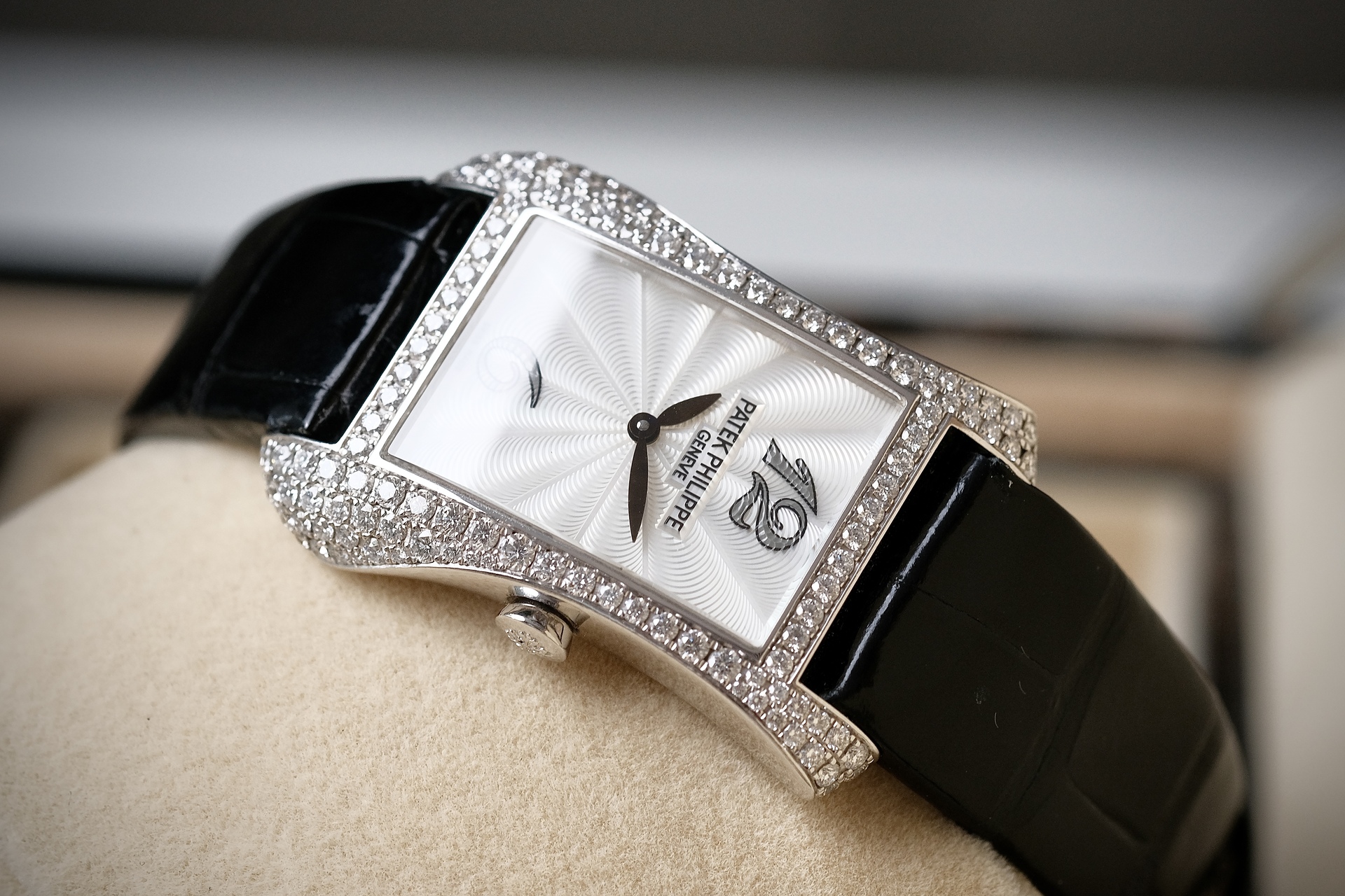 ต้อนรับ Valentine ด้วยสิ่งที่มากกว่านาฬิกา แต่เป็น High Jewelry จากPatek ฝังเพชร Original 130 เม็ด ระดับ Top Wesselton ขนาดตัวเรือน 28*40mm วัสดุ White gold งานออกแบบสไตล์ Art Deco มีเส้นสายที่นุ่มนวลแต่ทรงพลัง หน้าปัด MOP แกะลาย Guilloché ด้วยมือ มากับกลไก Quartz E15 ที่แม่นยำ ออกแบบสำหรับสุภาพสตรีโดยเฉพาะ ไม่ต้องกังวลเรื่องตั้งเวลาให้เล็บเสีย 4972g เรือนนี้ คือ”งานศิลปะที่สวมใส่ได้” ซึ่งให้ลุคดูเลอค่าและมีรสนิยมในทุกโอกาสสำคัญ