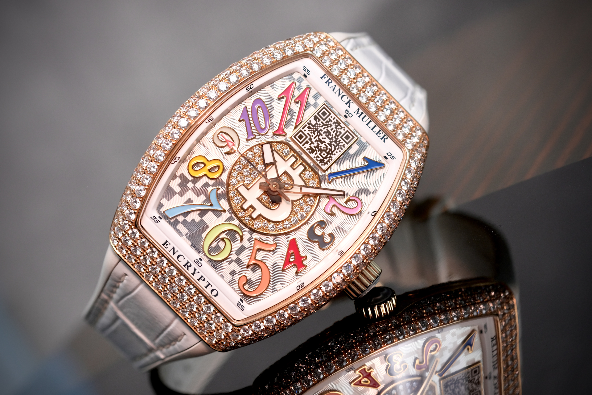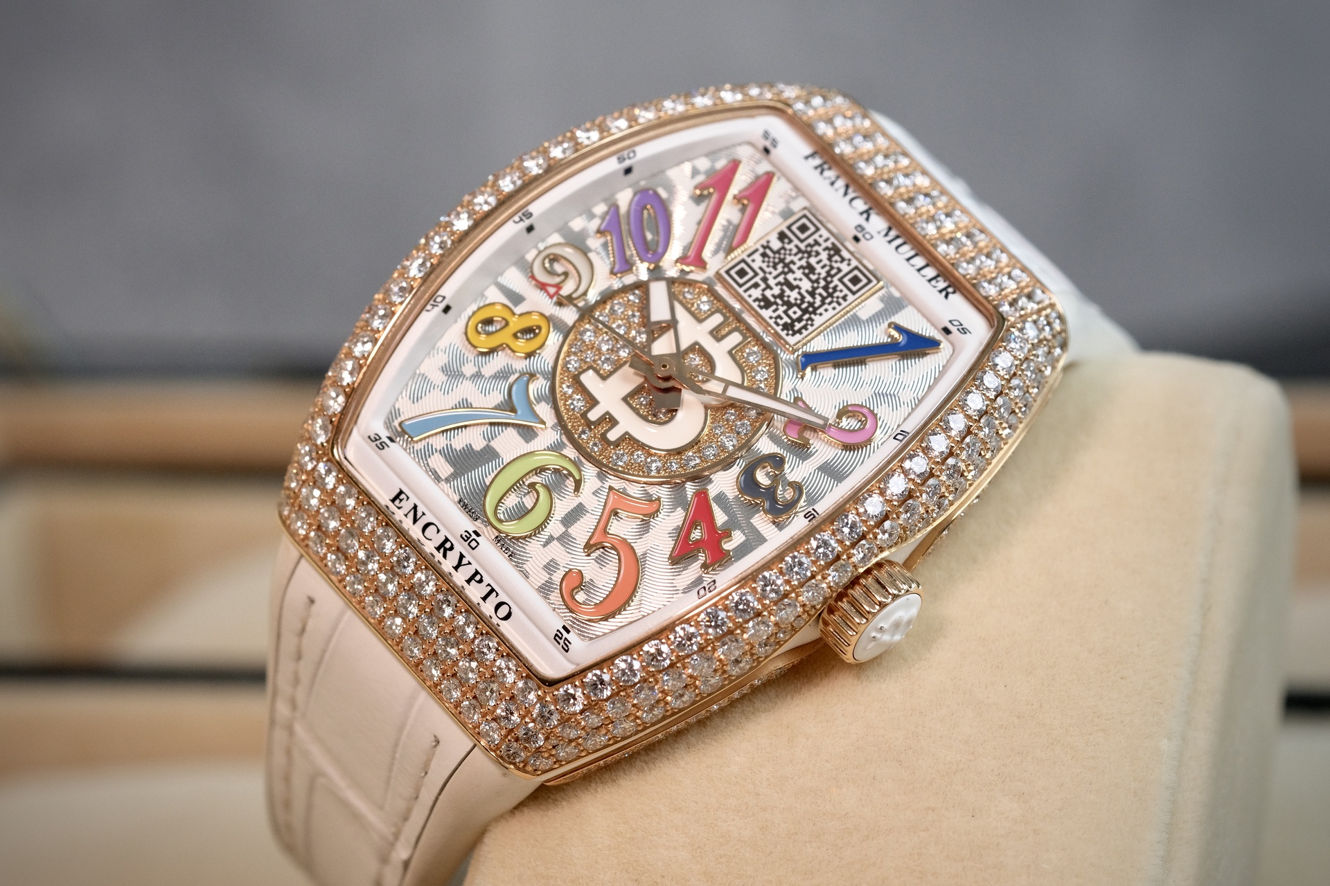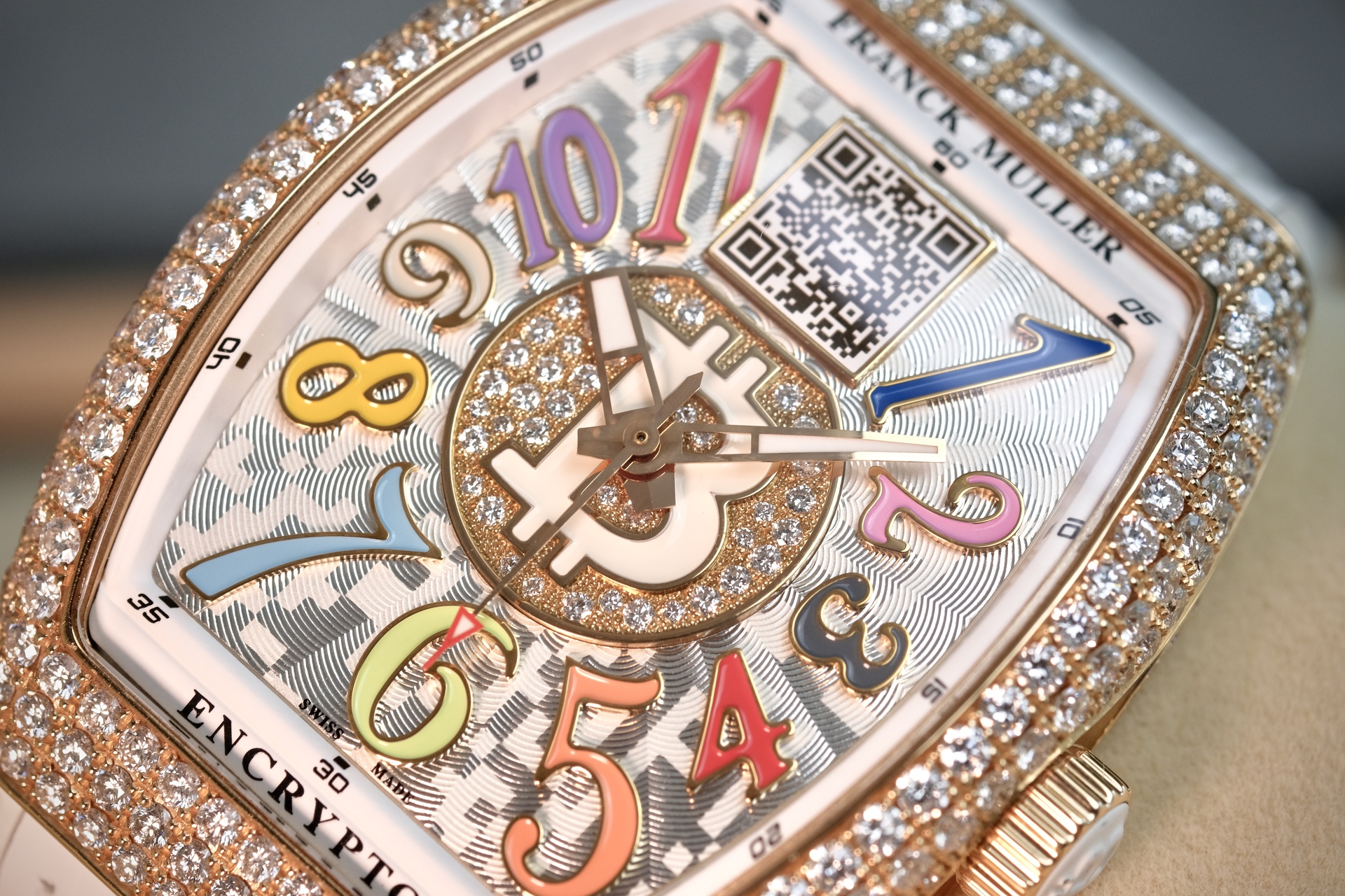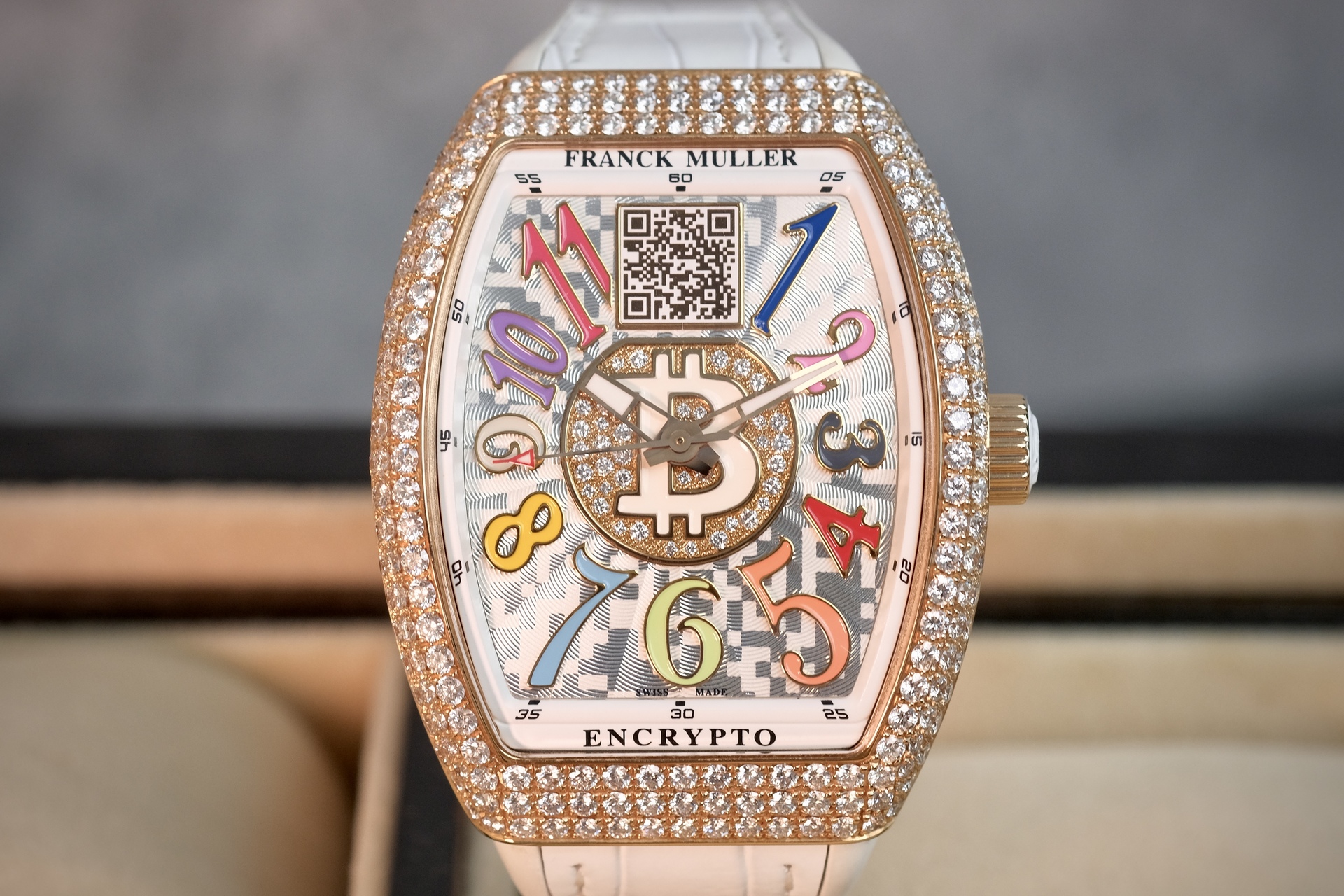นาฬิกา Unisex ขนาด 33*42mm เหมาะกับข้อมือผู้ชายเอเชีย(ข้อมือไม่เกิน 6.5นิ้ว) และพี่ๆผู้หญิง เป็นรุ่นพิเศษที่ผลิตออกมาน้อยมากเพียง 50 เรือนเท่านั้น ความพิเศษคือจะมี Private Key (ยังไม่ได้แกะใช้งาน) สำหรับพี่ๆที่ครอบครองสกุลเงิน Digital เช่น BTC ที่หน้าปัดมีเลเซอร์ QR Code สามารถเช็คยอดเงิน real time ได้ ในส่วนของเพชร จัดเต็มด้วยงานฝังOriginal setting แบบPAVE 340เม็ด น้ำหนักรวม 6.21CT ตัวเรือนทรงถังเบียร์iconicของFM มาในหน้าปัดสีสันสดใส Color Dreams มากับกลไกระบบ Automatic ถือว่าเป็นเรือนที่คุ้มมากๆ ประหยัดจากป้ายไป 2 ล้าน ช่วงนี้ BTC ทำ ATH รัวๆ พี่ๆนักล่าวาฬไม่ควรพลาดครับ