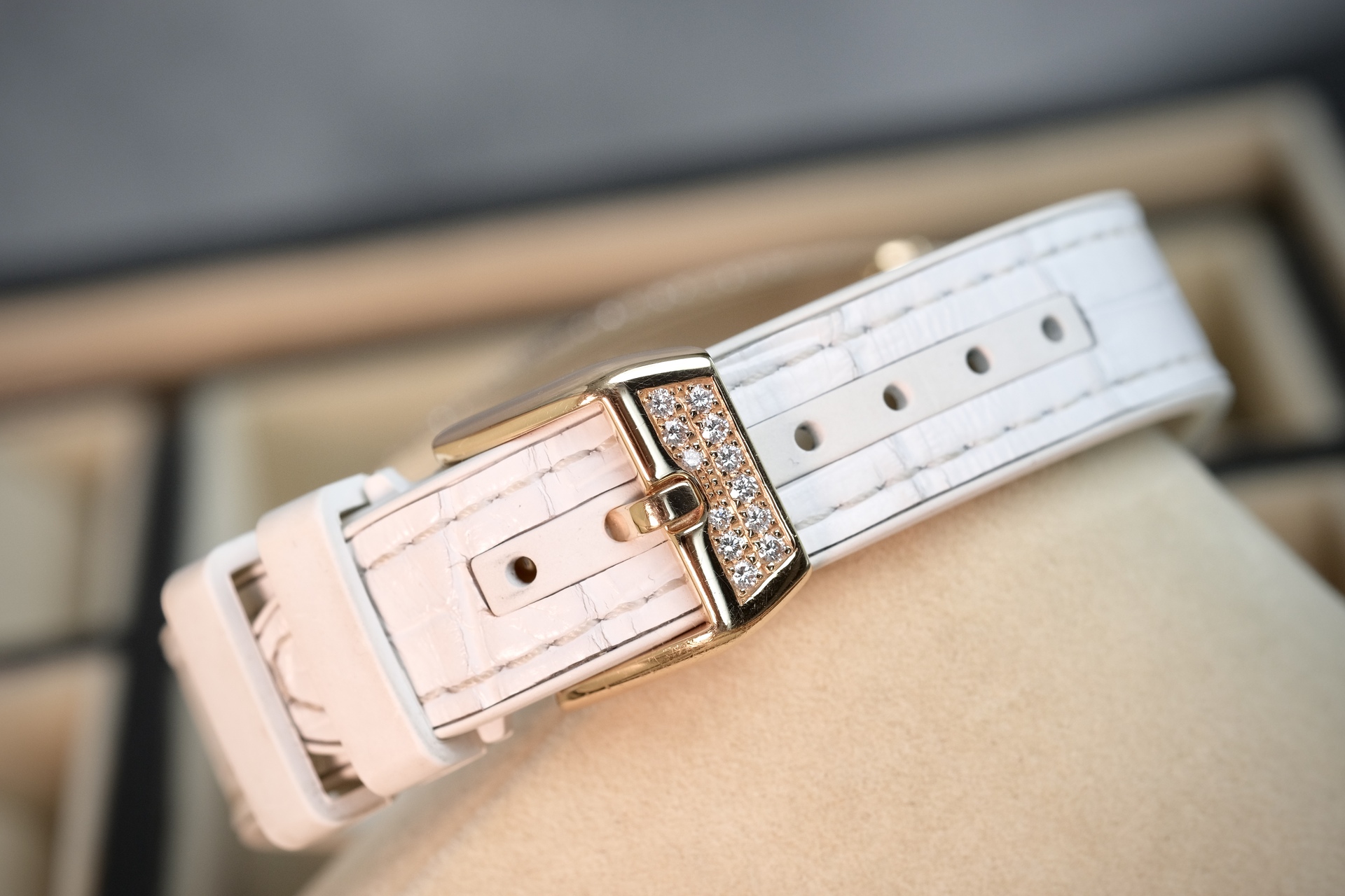 Very Like New อุปกรณ์ครบๆ กล่อง ใบ ปี2021 นาฬิกาสภาพสวยเดิม ไม่เคยปัด-ขัด ไร้ตำหนิหนัก กระจกสวยใสไร้ริ้วรอย กลไกทำงานสมบูรณ์แบบ สายแท้เดิม ตัวเรือน 18K Rose gold ฝังเพชร Original จากทาง Franck muller แต่ประหยัดไป 84% จากป้าย (List Price 2.5M ฿)