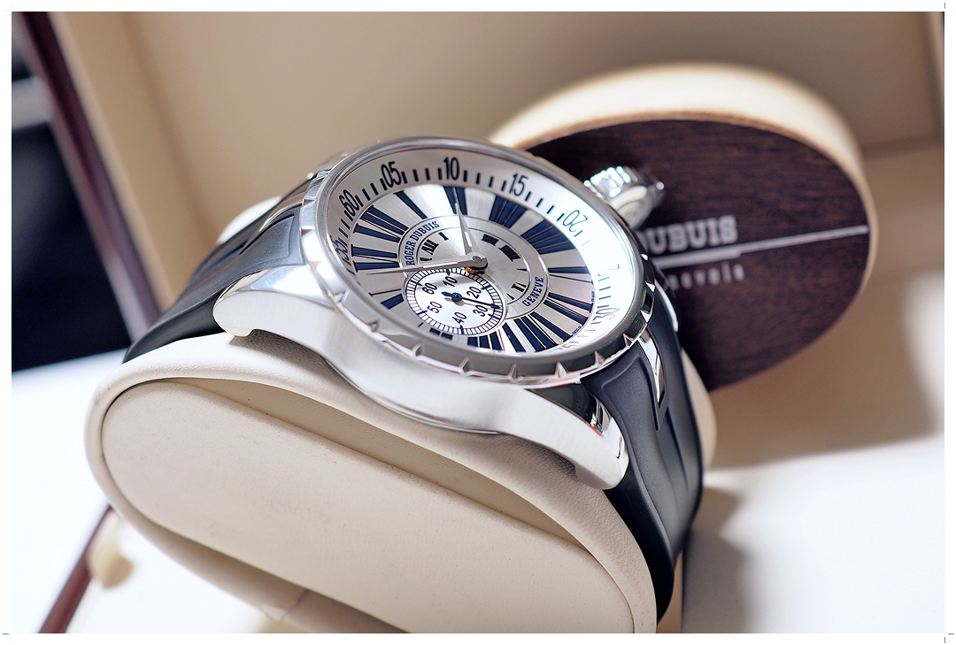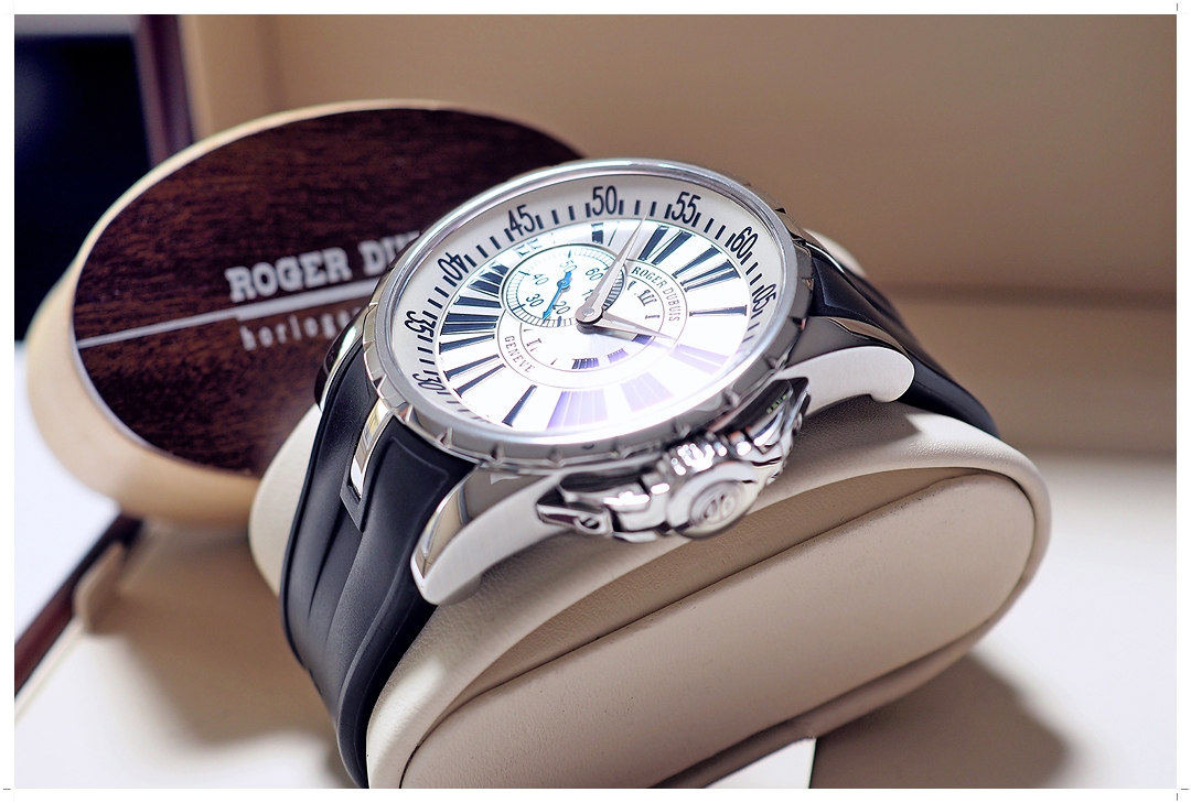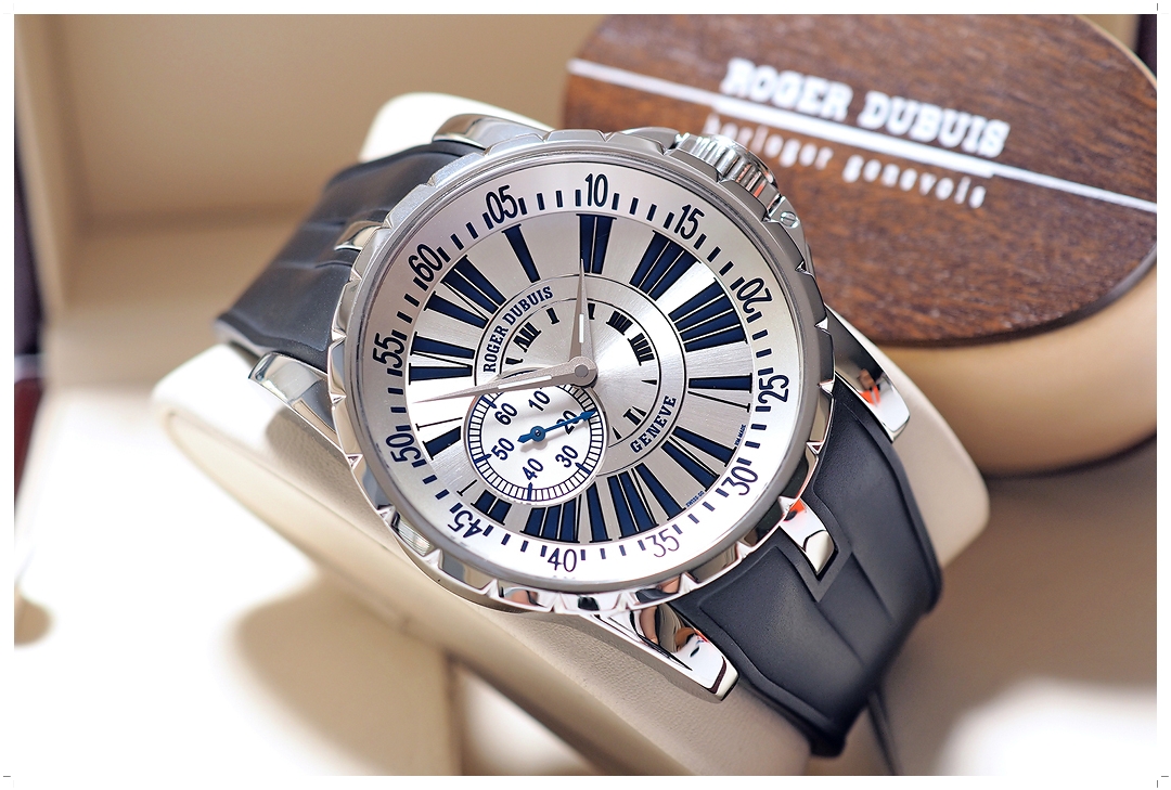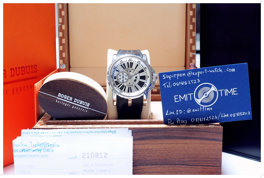 Roger Dubuis เรือนนี้เป็น Special Limited Edition ผลิตเพียง 888 เรือนทั่วโลก ผลิตปีเดียว (Y-2008) หน้าปัดขาว หลัก Dark Blue Roman เข้ากันอย่างลงตัว เข็มวินาที Blue Steel ระบบ 2 เข็มครึ่ง สวยเด่นมาก ขนาดตัวเรือน 47.5mm คนข้อใหญ่ใส่เต็มข้อสวยขั้นสุด กันน้ำลึก 50 เมตร ใส่แล้วขับผิวดูสวยอลังการไม่ซ้ำใคร ฝาครอบปิดเม็ดมะยมสามารถเปิดปิดได้อิสระ บัคเคิ่ลบานพับใช้งานง่ายด้าย ราคา Price List 755,000 บาท EMITTIME เสนอราคาต่ำกว่าป้าย 80% ครับ!!