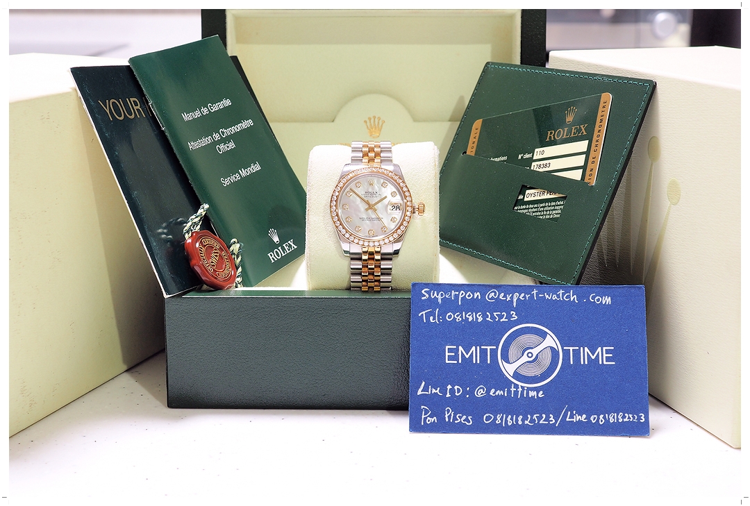 **Top-Class สุดของ DJ31 ราคา Price List วันนี้ 872,300 บาท** Rolex Datejust 31mm ref.178383RBR-0008 2-Tone Yellow Gold ขอบเพชร Rolex Factory Settings หลักเพชรเบ้าใหญ่ หน้าปัด Mother of Pearl (MoP) สาย Jubilee เจ้าของมือเดียว ใช้งานหลักชั่วโมง นอนเซฟตลอดชีวิต!! ไม่เคยปัดขัดใดๆทั้งสิ้น สติ๊กเกอร์ฝาหลังยังอยู่ Y-2013 Full-Set -524,000 บาท-