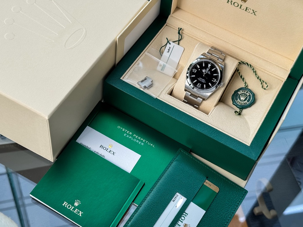 ✨ ขนาด 39 มม. หน้าปัดสีดำสนิทเอกลักษณ์ของตระกูล Explorer ตกแต่งด้วยเลขอารบิก 3-6-9 และเข็ม Mercedes อันเป็น DNA ดั้งเดิมของรุ่นตำนาน ตัวเรือนและสาย Oystersteel ขัดด้านสลับเงาให้ความรู้สึกแข็งแรงแต่เรียบหรู ภายในขับเคลื่อนด้วยเครื่อง Automatic Cal. 3132 ความเที่ยงตรงสูง กันน้ำได้ 100 เมตร กระจกแซฟไฟร์กันรอย ให้ฟีล Tool Watch ที่สมบูรณ์แบบในลุคสุดคลาสสิก