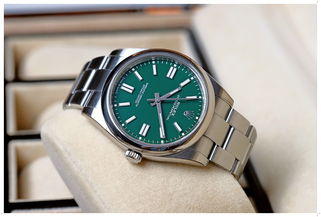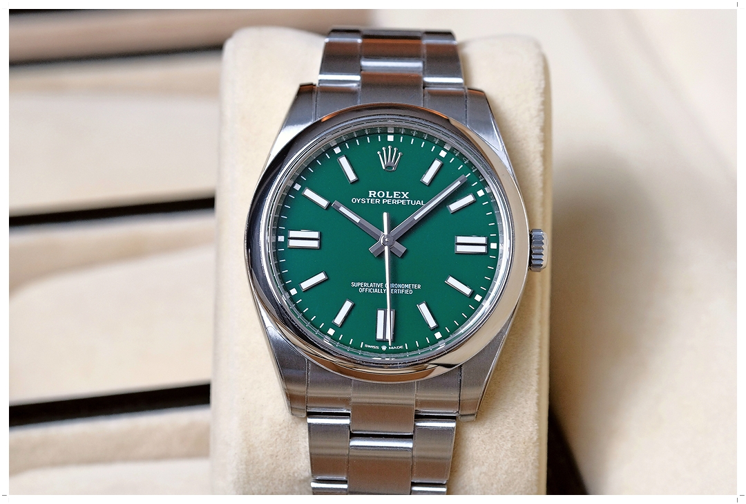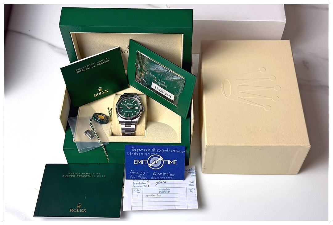 นาฬิกาเจ้าของมือเดียว ติดฟิล์มกันรอยรอบตัวจาก Expert-Watch ไม่เคยผ่านการปัดขัด ไร้ตำหนิหนักใดๆทั้งสิ้น กระจกไร้ริ้วรอย เครื่องรุ่นใหม่ Rolex Caliber 3230 สะสมพลังงาน 70 ชั่วโมงเต็ม ทำงานได้สมบูรณ์แบบ ขนาดตัวเรือน 41mm ใส่เต็มข้อสวยมากๆ หน้าปัดสีเขียวเป็นเอกลักษณ์ประจำตัวของ Rolex ใส่แล้วดู Casual พร้อมกับ Minimal ในเรือนเดียว ไปได้กับทุกการแต่งตัวครับ