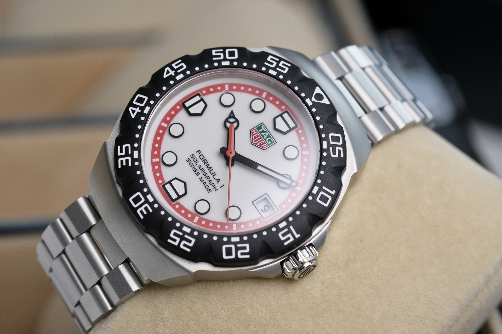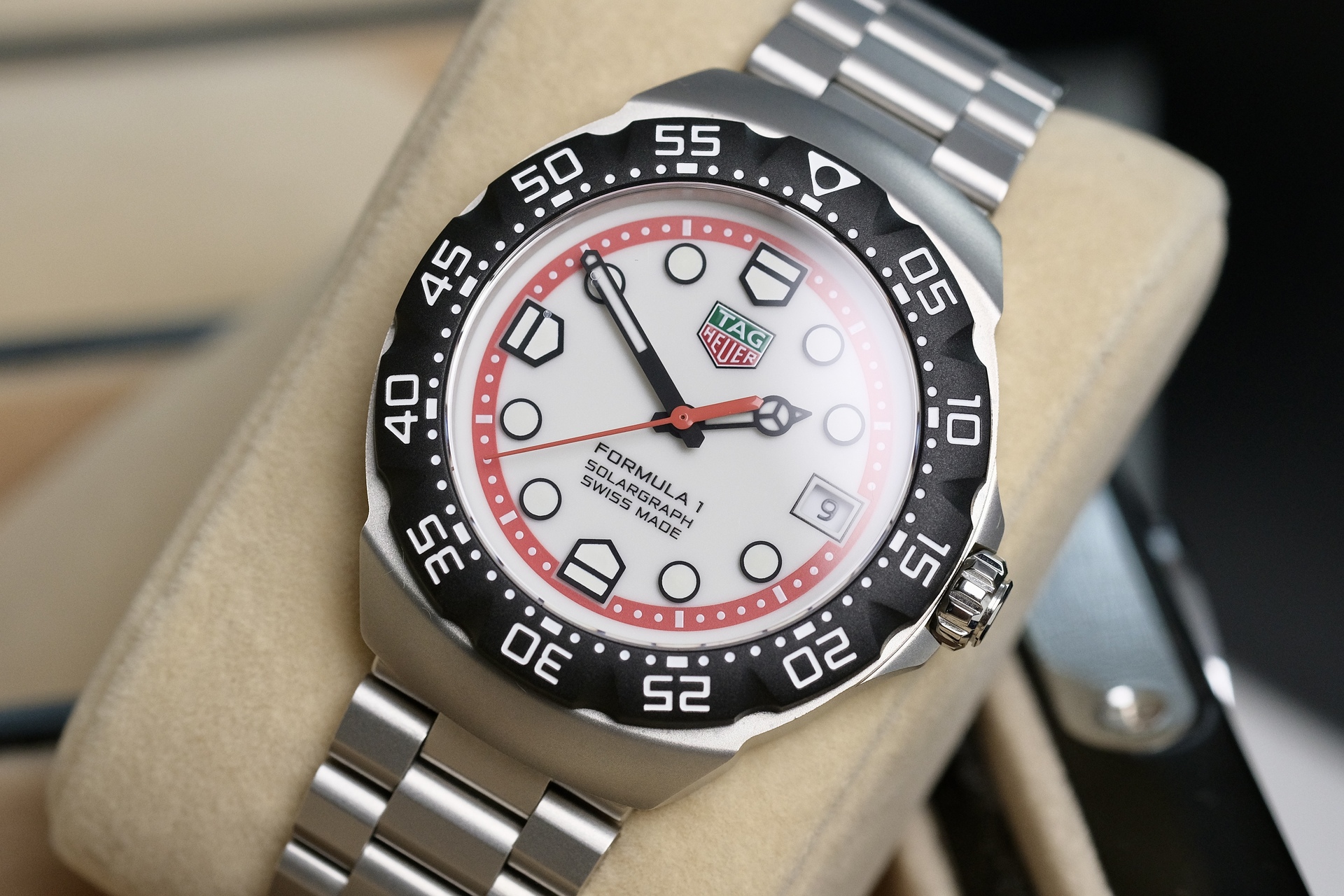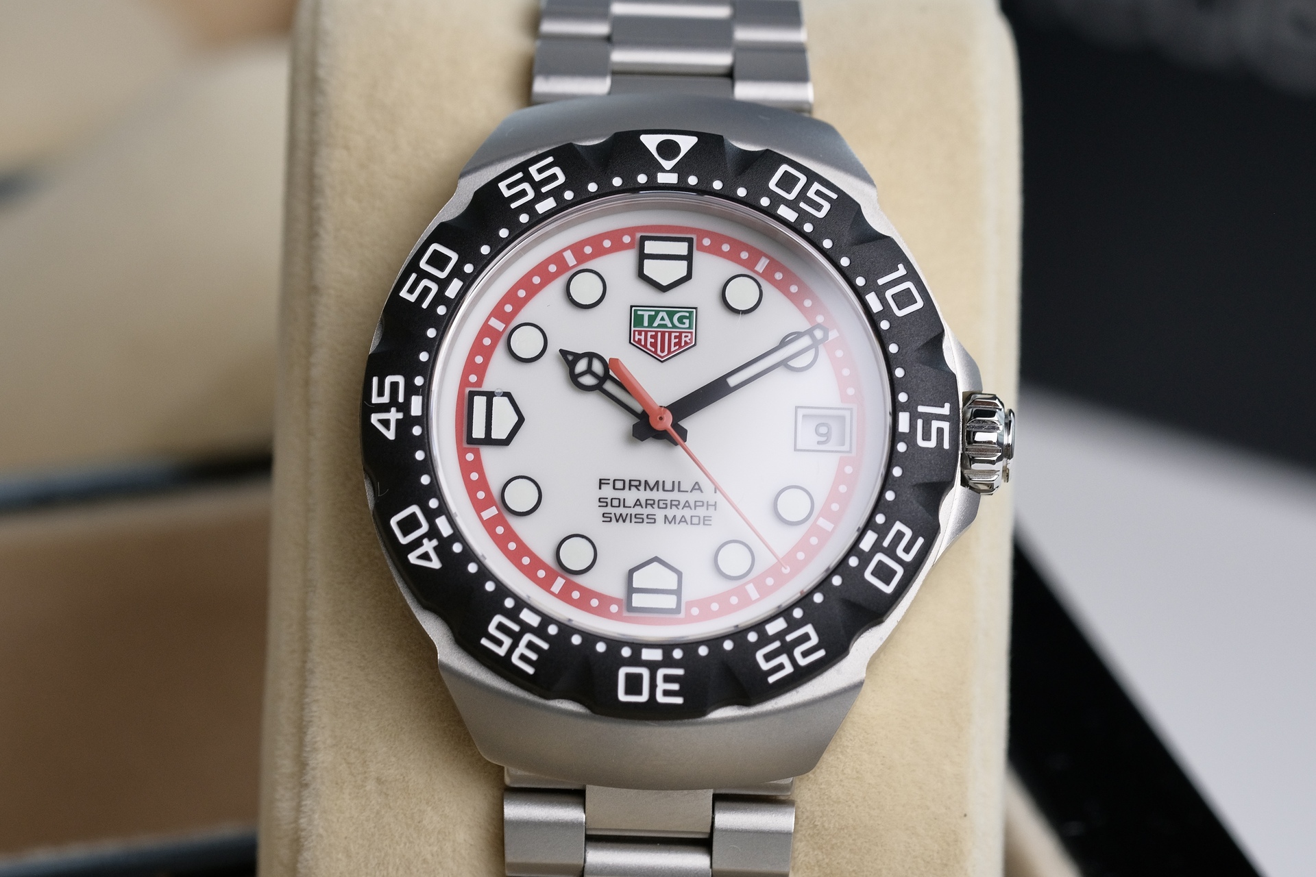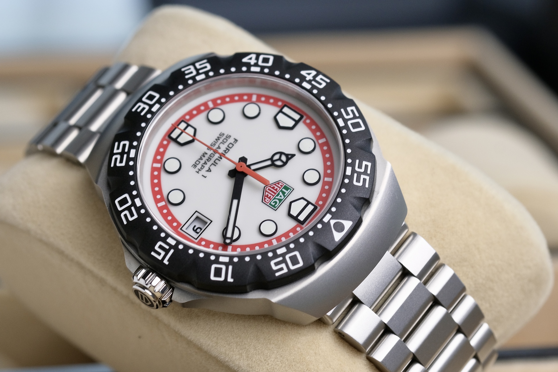 ตัวเรือน 38mm เป็นการ Re-Edition จากTag ยุคเก่าอัพเกรดจาก 35mm มาเป็น 38mm แต่ยังคง DNA จากF1 ในยุค80s เข็มสุดคลาสสิกแบบ “Mercedes” และมากับกลไก Solar ที่ไม่ต้องเปลี่ยนถ่านตลอดอายุการใช้งาน โดนแสงแดด 2 นาที ทำงานได้ 1 วัน และอยู่ได้นาน 6 เดือนเมื่อชาร์จเต็ม TAG ใช้ Power Save Mode ถ้านาฬิกาไม่ได้ใช้ เข็มจะหยุดหมุนเพื่อประหยัดพลังงานและกลับมาเดินเองเมื่อหยิบมาใช้งาน โดยไม่ต้องตั้งเวลาใหม่ พร้อมขอบหมุนนับเวลา กันน้ำ100 เมตร ตัวเรือนและสายเป็นสตีลพ่นทราย ทนต่อรอยขีดข่วน เหมาะกับเป็นนาฬิกาคู่ใจ ไม่ต้องดูแลเยอะ ไม่จุกจิกเรื่องต้องคอยตั้งเวลา