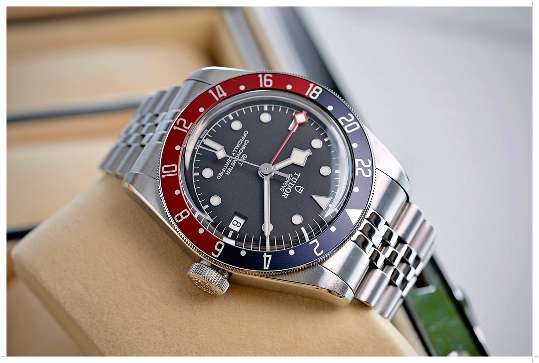 Black Bay เรือนนี้ถือว่าเป็นหนึ่งใน Iconic Timepiece ของ Collection มาพร้อมฟังค์ชั่น GMT พร้อมขอบ Bezel สีแดงตัดน้ำเงินสวยหรู ขนาดตัวเรือน 41mm ใส่เต็มข้อสวยพอดีมากๆ ไม่ล้นข้อ ไม่เล็กเกินไป สาย Forstner Jubilee ใส่กับตัวเรือนแล้วทำให้นาฬิกาดูหรูหราสวยงามมาก หรือจะเปลี่ยนใส่สายหนังจับคู่กับบัคเคิ่ล Tudor Original เดิมๆ ก็เข้ากันได้อย่างลงตัว เข็ม GMT สีแดงตัดกับหน้าปัดอย่างเป็นเอกลักษณ์ กระจก Sapphire ทรงโดมดูหรูหรามาก แต่งตัวง่าย เข้าได้กับทุกชุด ราคาป้ายวันนี้ 155,700 บาท EMITTIME เสนอราคาต่ำ Price List เกือบครึ่งราคา คุ้มค่าคุ้มราคาทุกบาททุกสตางค์แน่นอนครับ