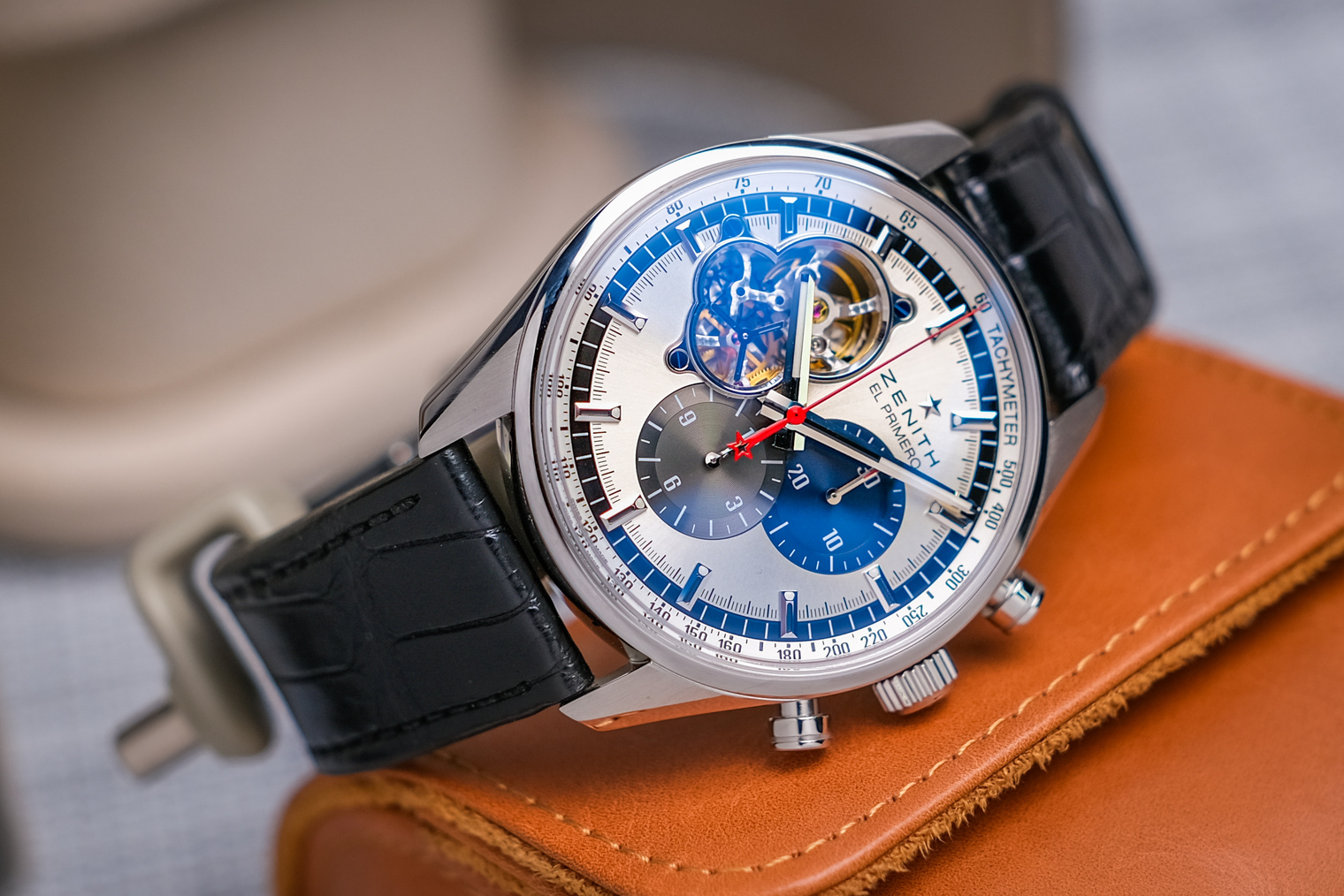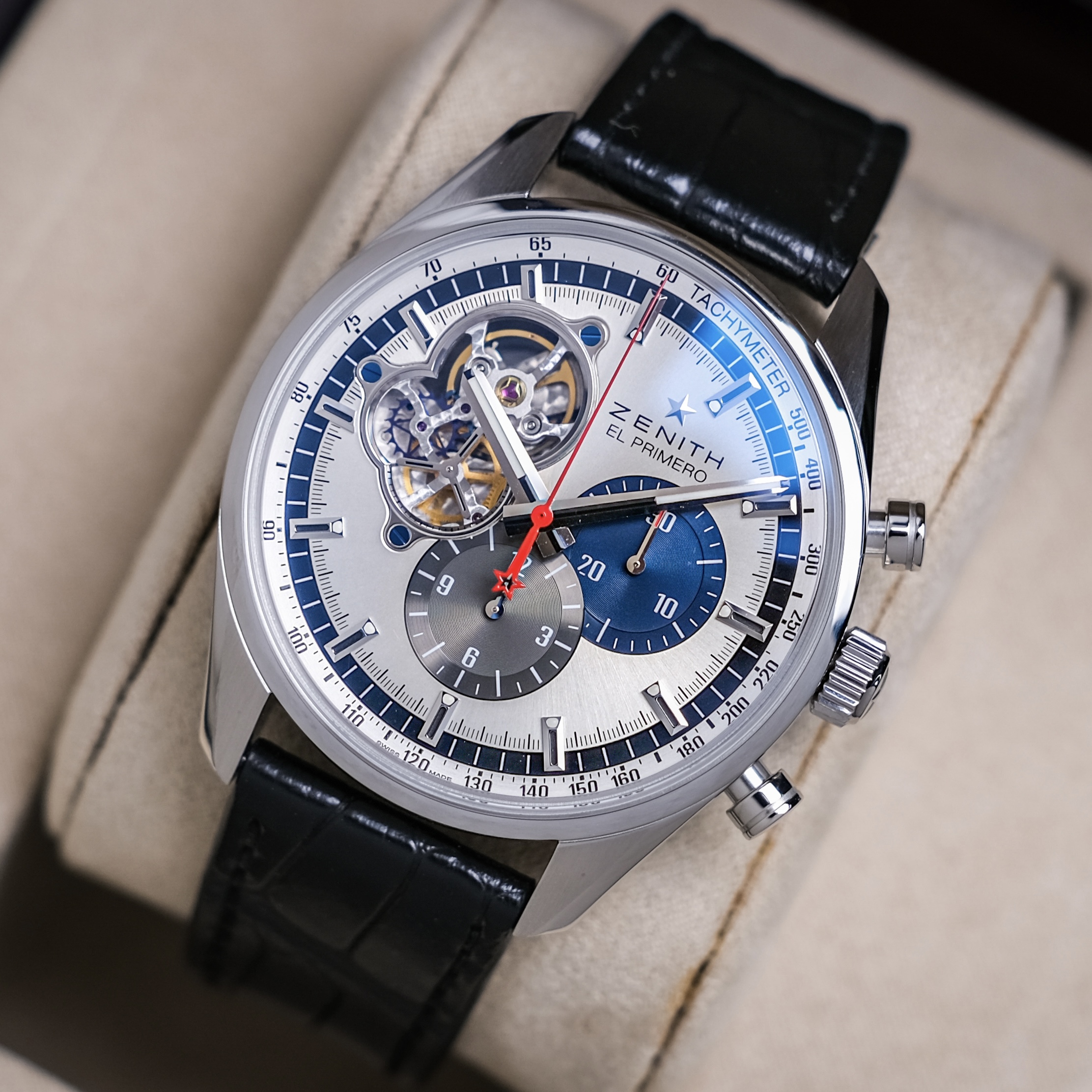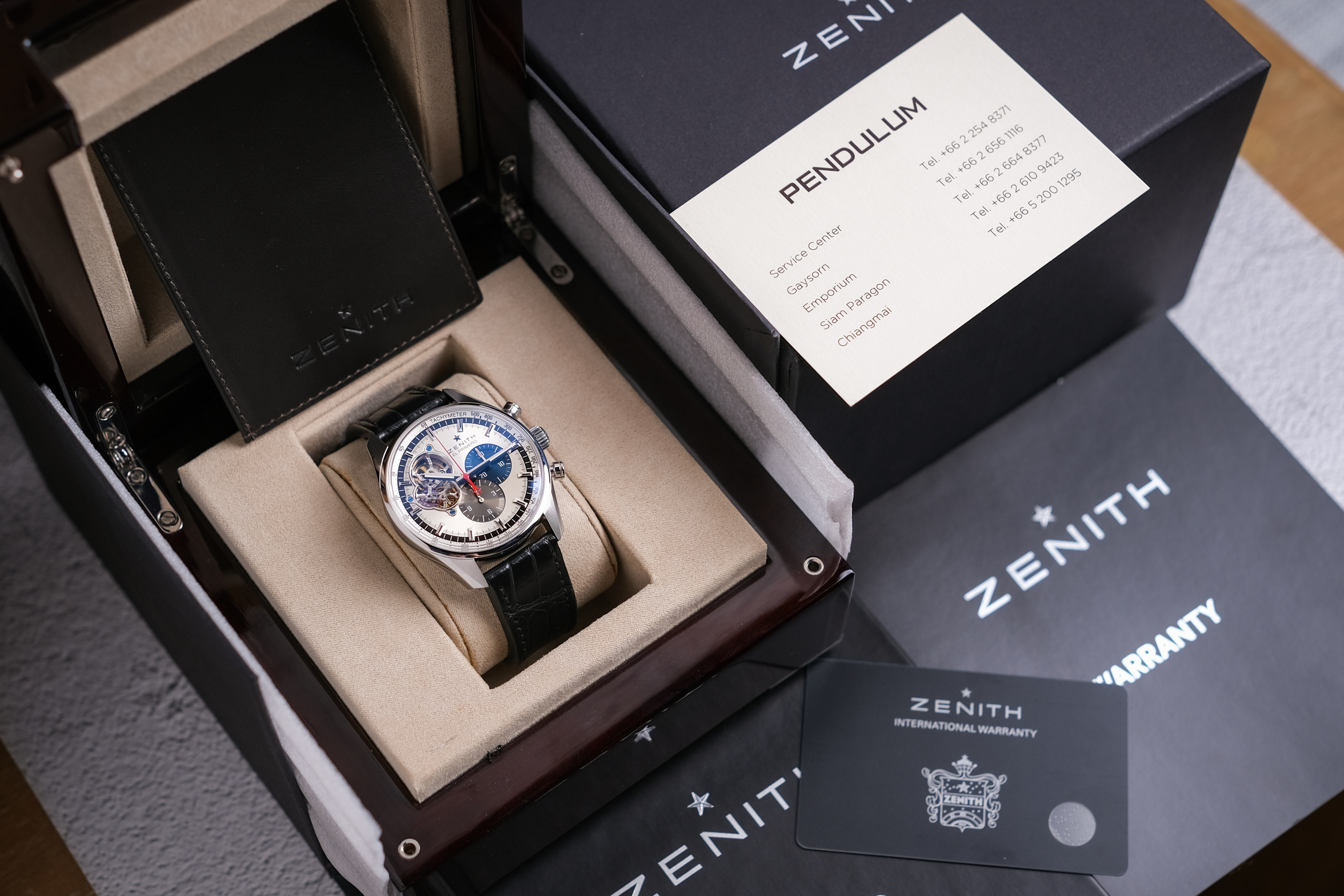 ✨ กว่า 50 ปีที่ Zenith ได้คิดค้น “El Primero“ กลไก Automatic Chronograph แรกของโลก จนเกิดเป็นรากฐานให้กลไกจับเวลาทั้งหลายได้ถือกำเนิด สิ่งนี้ได้แสดงออกอย่างภาคภูมิผ่านหน้าปัดที่เปิดให้เห็นชิ้นส่วนกลไก เราจะได้เห็นกลไกนี้ทำงานดั่งหัวใจที่เต้นอยู่ แสดงถึงขุมพลังระดับสูงที่ตอกย้ำถึงต้นกำเนิดและจะยังคงทำงานอย่างดีเยี่ยมต่อไปครับ