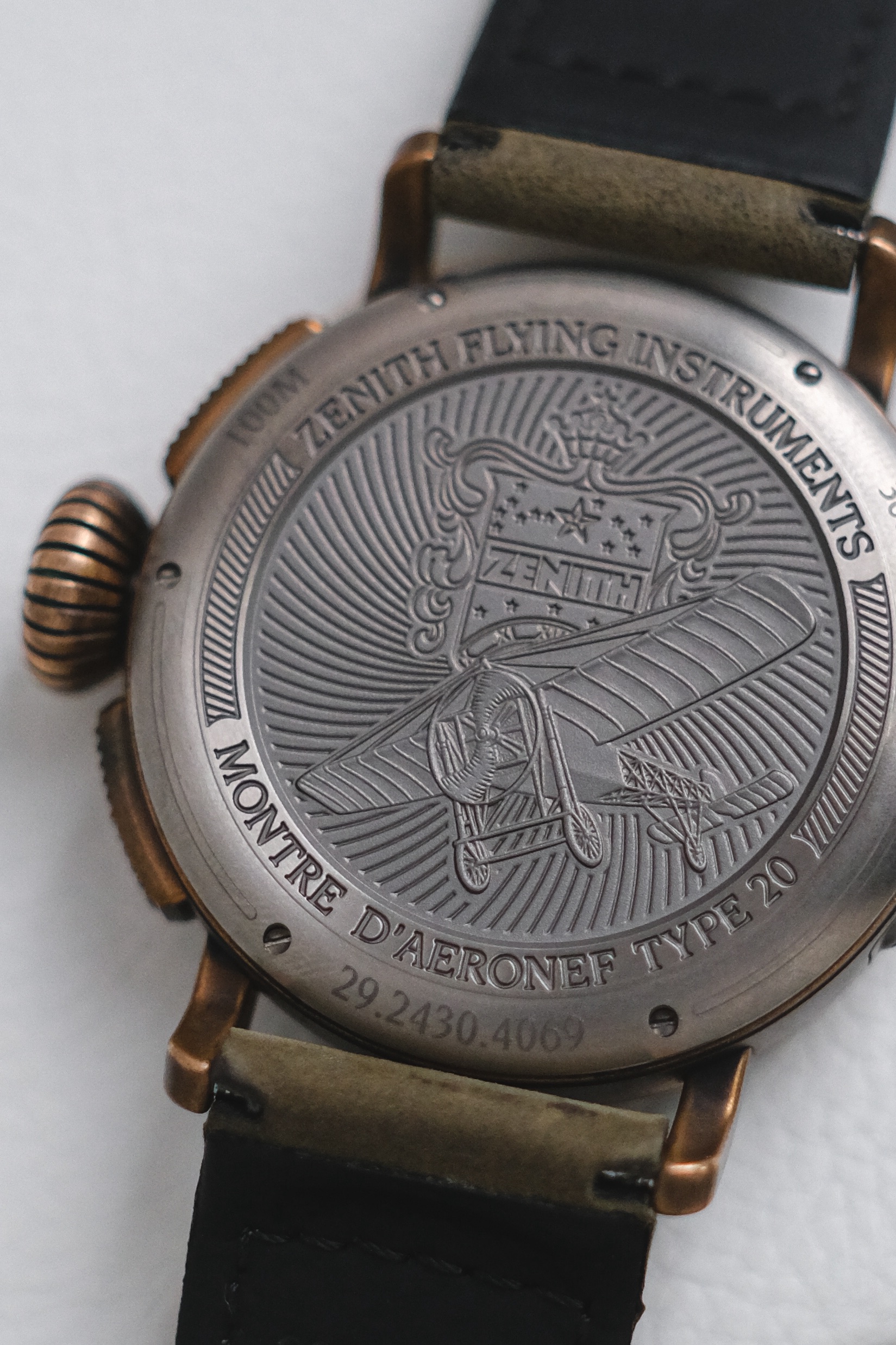 ตัวเรือน Bronze จะเปลี่ยนสีและเกิดเอกลักษณ์เฉพาะตัวตามการใช้งาน ให้ฟีลเหมือนเครื่องมือของนักบินที่ผ่านกาลเวลา ผสานกับ DNA การบินของ Zenith ที่ย้อนกลับไปถึงยุคแรกของ aviation watch ตั้งแต่ต้นศตวรรษที่ 20 ครับ